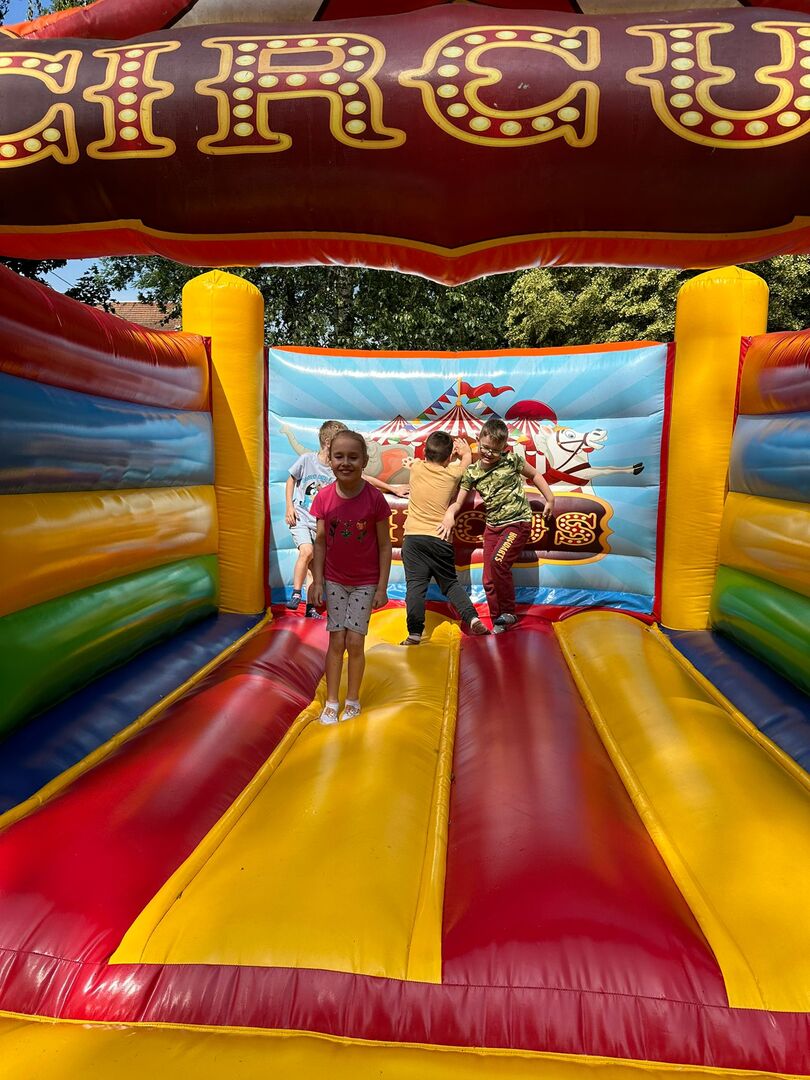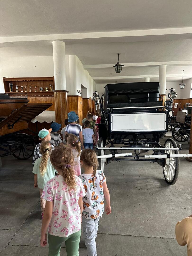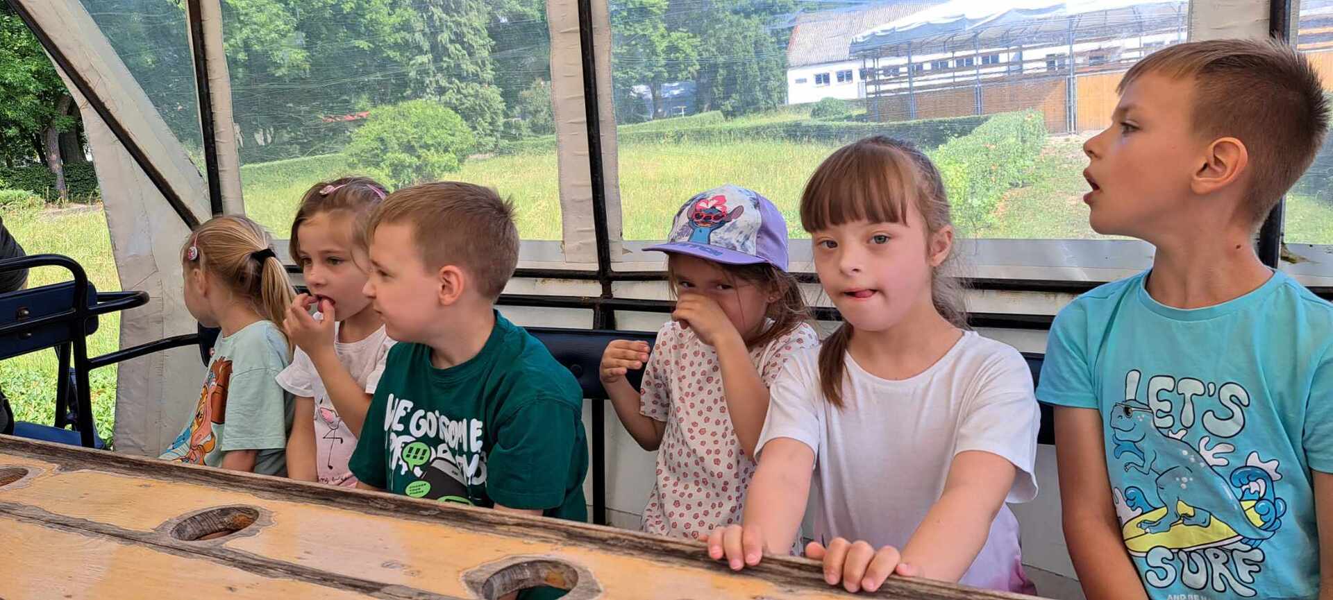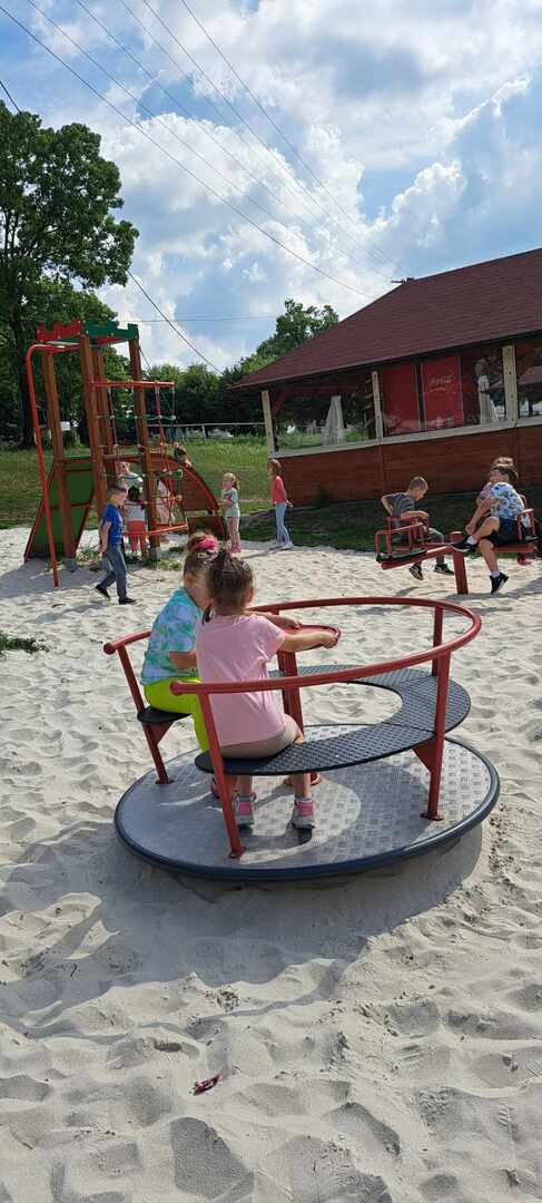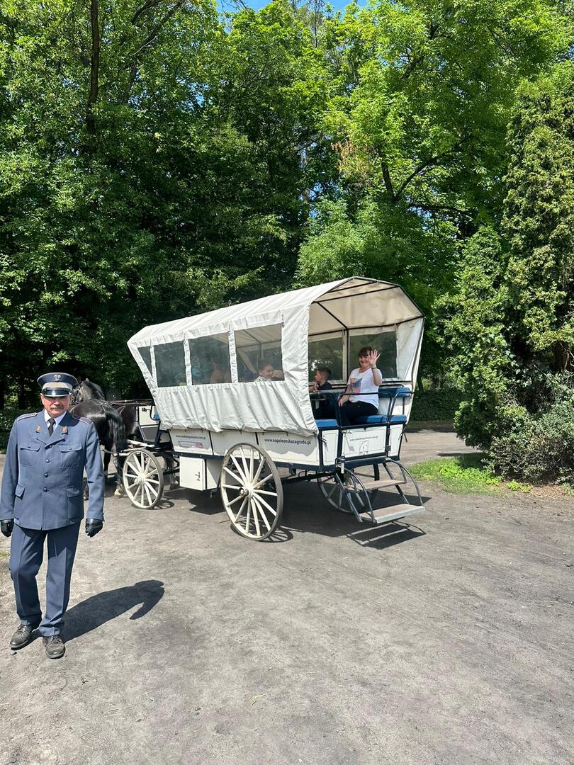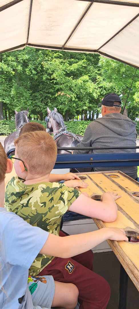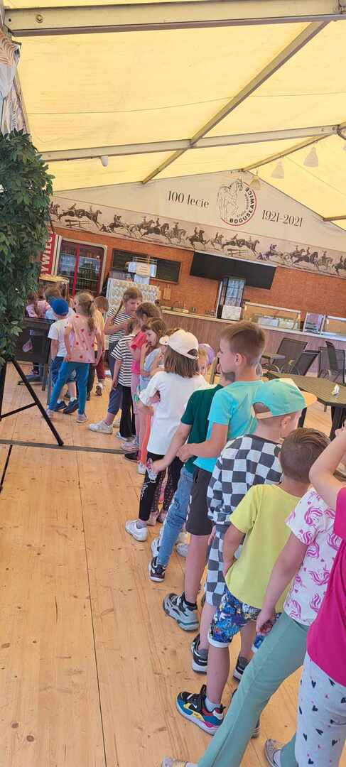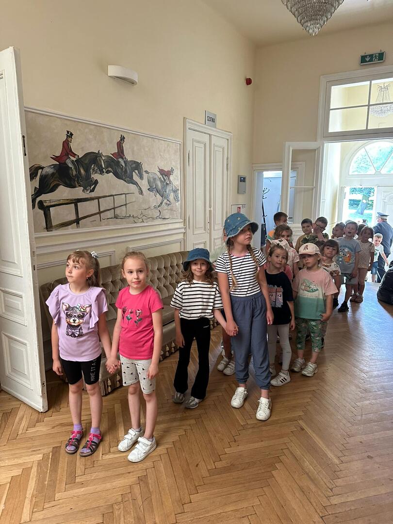 11 czerwca 2024 roku dzieci z grup 0a, 0b i 0c wraz opiekunami wybrały się na wycieczkę do Bogusławic. Pierwszym punktem wyjazdu było zwiedzanie z przewodnikiem terenu Stada Ogierów. Przedszkolaki dowiedziały się wielu cennych informacji na temat tych sympatycznych zwierząt (nazewnictwo, sposób żywienia, opieka, życie w stajni). Zapoznały się także z historią Stada oraz zwiedziły: Pałac, stajnię, krytą ujeżdżalnię, wybieg dla koni, zabytkową powozownię, zagrodę dla kucyków. Wśród atrakcji znalazły się m.in. karmienie kucyków, przejażdżka bryczką, oprowadzanie na kucyku każdego dziecka, ognisko wraz z pieczeniem kiełbasek, zestaw dmuchawców: zjeżdżalnia i zamek dmuchany.