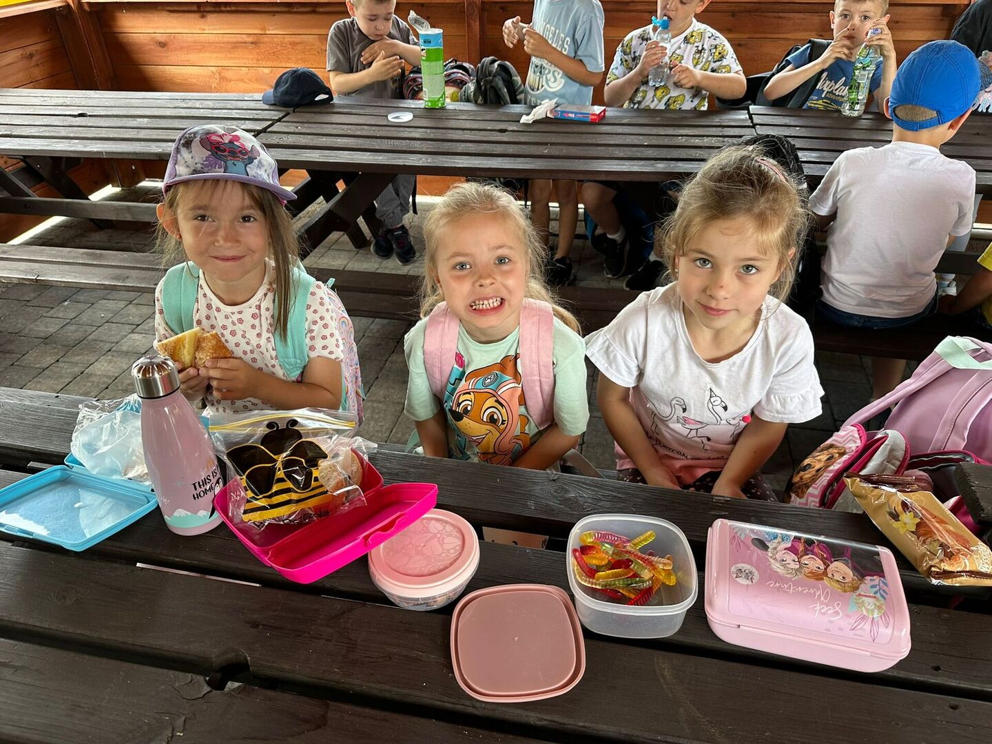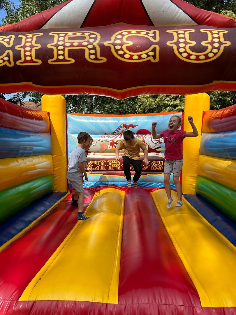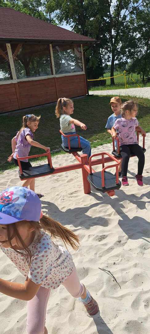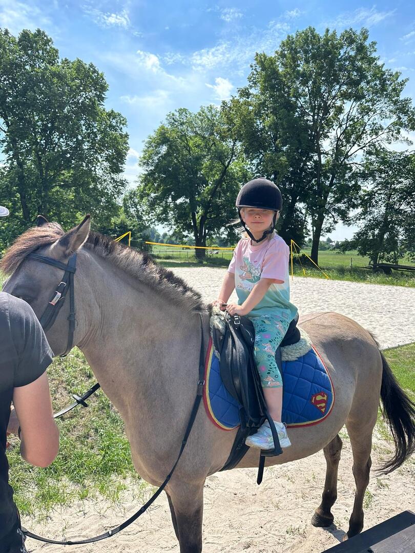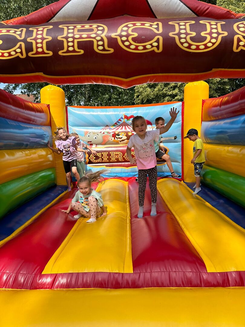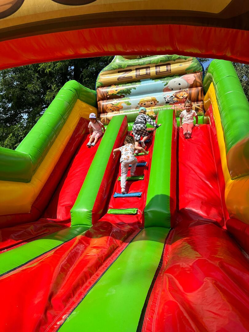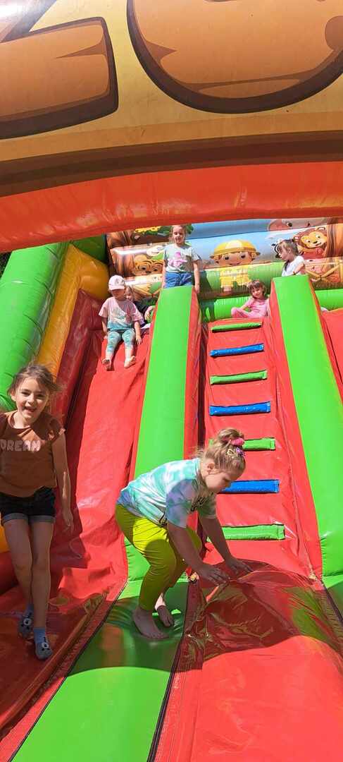 11 czerwca 2024 roku dzieci z grup 0a, 0b i 0c wraz opiekunami wybrały się na wycieczkę do Bogusławic. Pierwszym punktem wyjazdu było zwiedzanie z przewodnikiem terenu Stada Ogierów. Przedszkolaki dowiedziały się wielu cennych informacji na temat tych sympatycznych zwierząt (nazewnictwo, sposób żywienia, opieka, życie w stajni). Zapoznały się także z historią Stada oraz zwiedziły: Pałac, stajnię, krytą ujeżdżalnię, wybieg dla koni, zabytkową powozownię, zagrodę dla kucyków. Wśród atrakcji znalazły się m.in. karmienie kucyków, przejażdżka bryczką, oprowadzanie na kucyku każdego dziecka, ognisko wraz z pieczeniem kiełbasek, zestaw dmuchawców: zjeżdżalnia i zamek dmuchany.