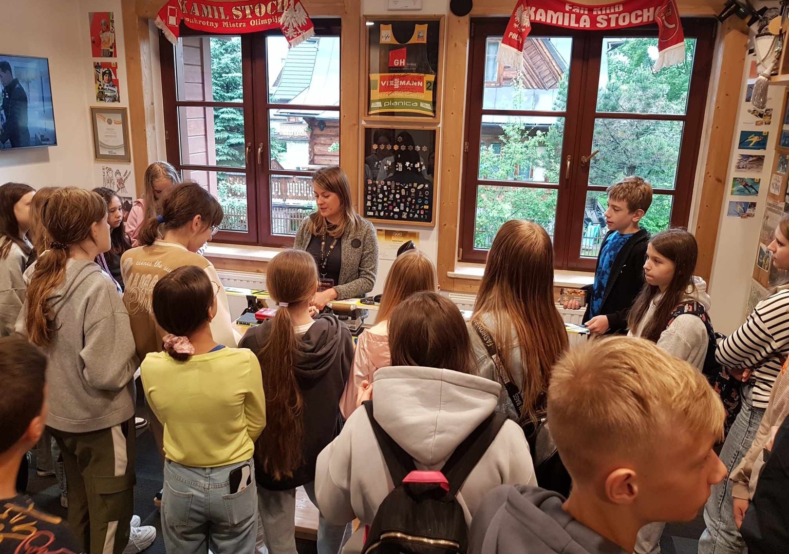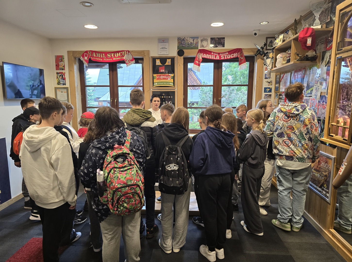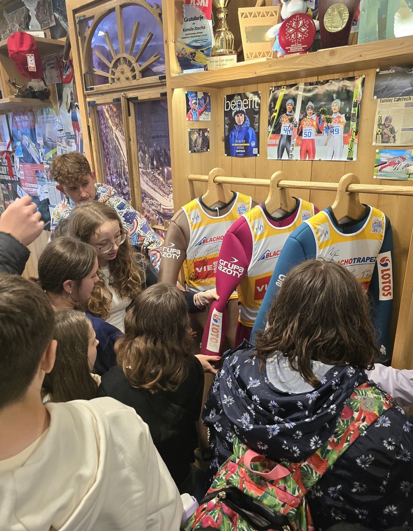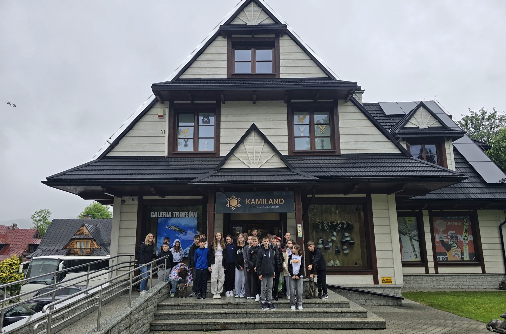 Drugiego dnia udaliśmy się do Term Chochołowskich, gdzie zrelaksowaliśmy się w licznych basenach termalnych, otoczonych przez malownicze, górskie krajobrazy. Każdy z nas mógł skorzystać z sauny, zjeżdżalni czy hydromasaży. Ciepła woda i nowoczesne spa pozwoliły nam na pełne odprężenie, a widok na okoliczne szczyty dodawał miejscu wyjątkowego uroku. Z Chochołowa udaliśmy się do Zakopanego, aby zwiedzić Kamiland i pospacerować po Krupówkach. Kamiland to miejsce poświęcone jednemu z najwybitniejszych, polskich skoczków narciarskich Kamilowi Stochowi. W muzeum zobaczyliśmy trofea, puchary, sprzęt sportowy oraz inne przedmioty związane z jego karierą sportową. Ponadto, poznaliśmy historię jego sukcesów, oglądając zdjęcia, filmy i inne dokumenty związane z osiągnięciami mistrza. To świetne miejsce zwłaszcza dla tych, którzy podziwiają talent i determinację Kamila Stocha.