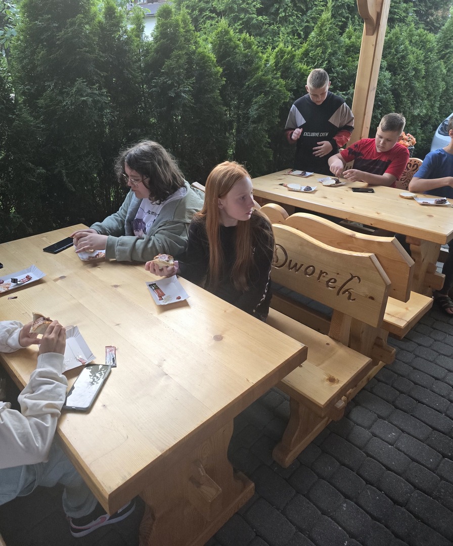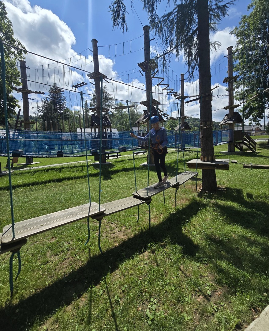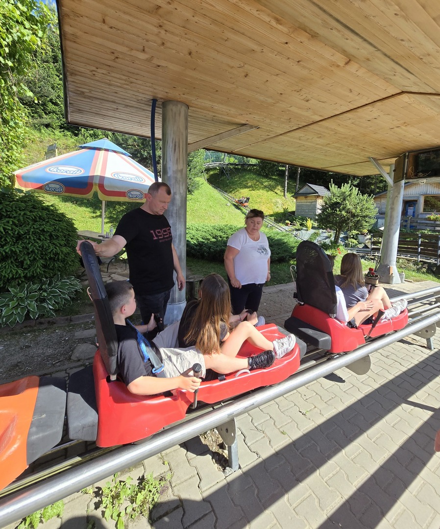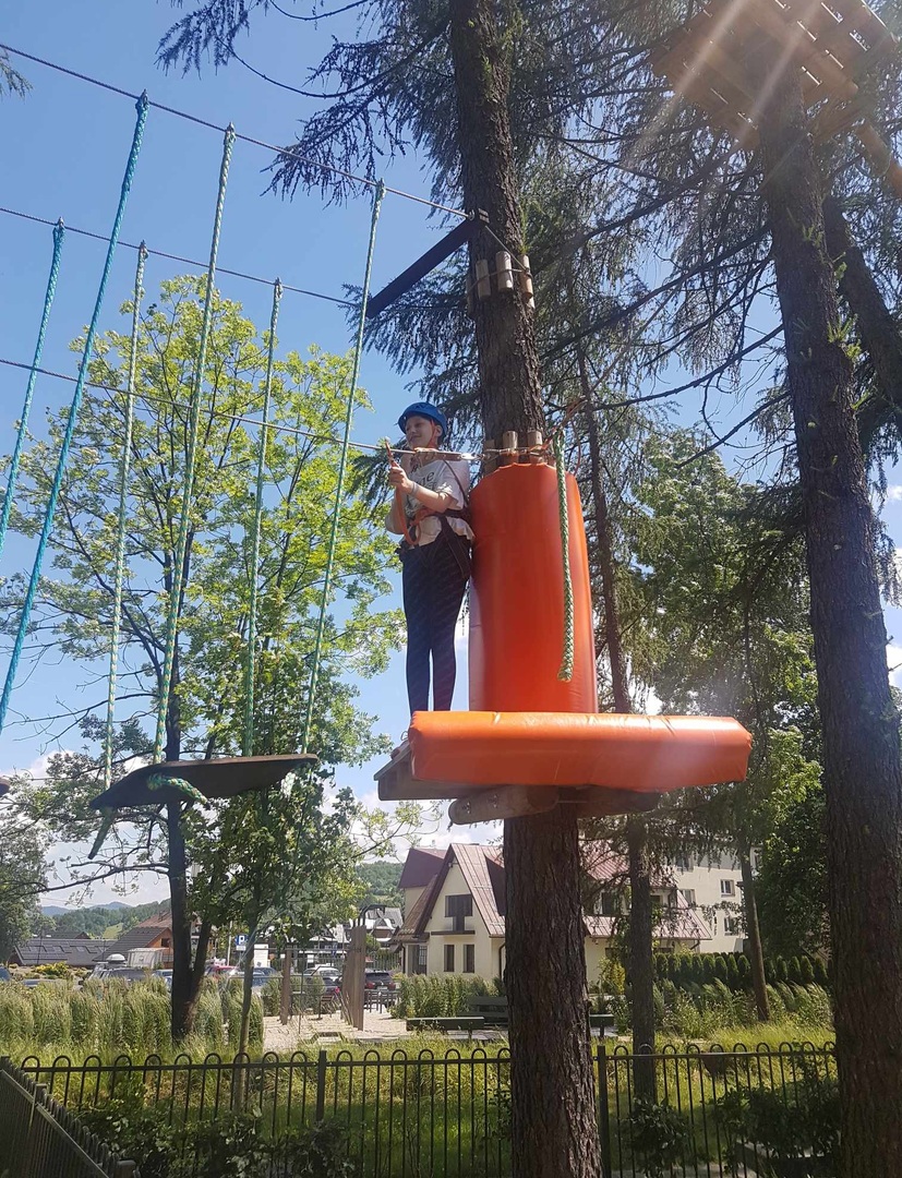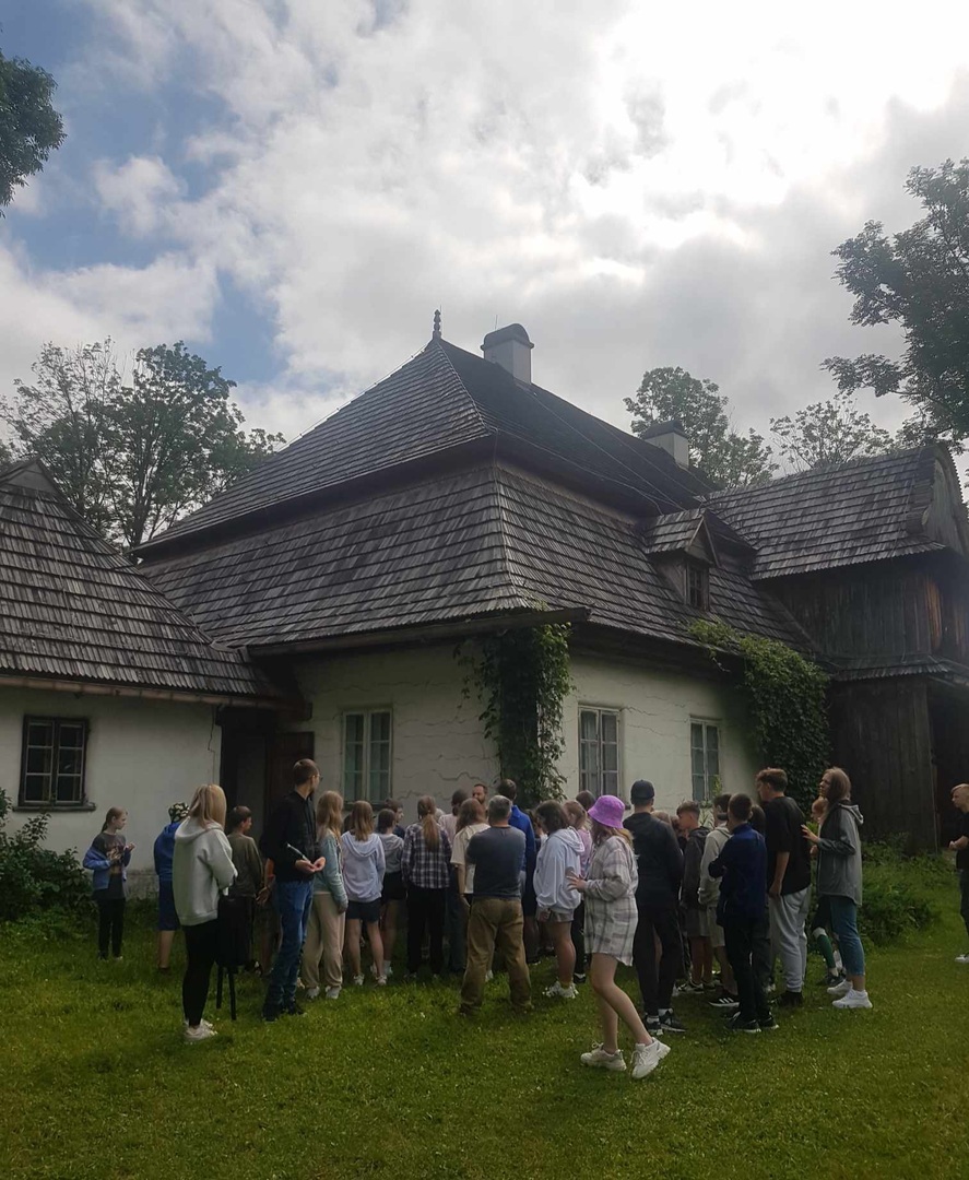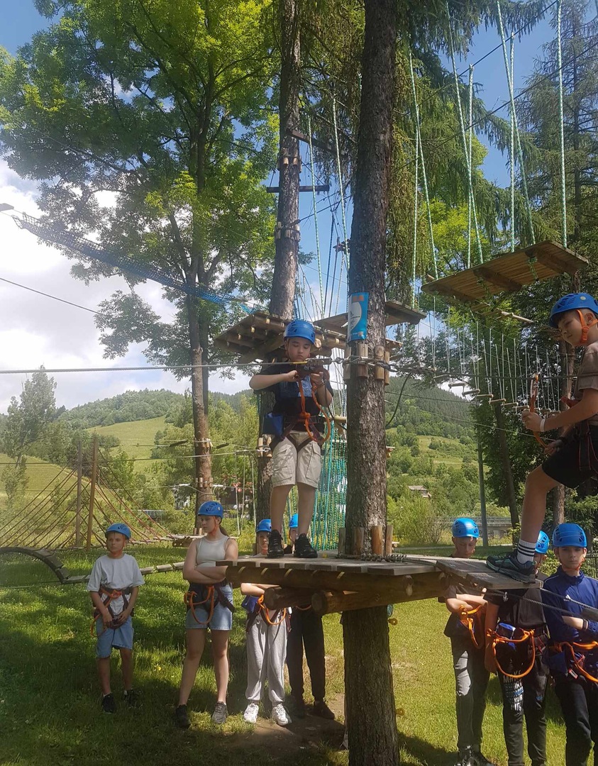 Środę rozpoczęliśmy od zwiedzania okazałego XVIII-wiecznego Starego Dworu w Łopusznej, dawnej siedziby szlacheckich, patriotycznych rodzin Lisickich, Tetmajerów i Lgockich. Dom składa się z kilku dobrze wyposażonych pomieszczeń: sieni, kuchni zwanej izbecką, „dużej izby” oraz pomieszczeń gospodarczych: strychu i komory, przybudowanej z tyłu domu. W jego wnętrzach można podziwiać meble z epoki oraz inne przedmioty związane z życiem dawnych właścicieli. Na terenie posiadłości znajduje się również stajnia, wozownia, spichlerz oraz obory. Obok dworu stoi drewniana chałupa wybudowana przez Jana Klamerusa w 1887 r., którą przeniesiono tu ze wsi. Całość otacza drewniane ogrodzenie. Dziś Dwór w Łopusznej to siedziba Muzeum Tatrzańskiego. Kolejnym punktem programu był park linowy Lemur. To atrakcja turystyczna znajdująca się w Ochotnicy Dolnej nad Dunajcem oferująca róznorodne trasy i przeszkody dla osób chcących spróbować swoich sił we wspinaczce po drzewach. Spacer po linach i zjazdy na tyrolce dostarczyły nam wielu emocji i adrenaliny. Po wyzwaniach w parku linowym udaliśmy się na tor saneczkowy w Kluszkowcach. Zjazdy na saneczkach po specjalnie przygotowanym torze były pełne radości i śmiechu, a widok na Jezioro Czorsztyńskie i otaczające nas góry zapierały dech w piersiach. Tego dnia zwiedziliśmy również Krościenko nad Dunajcem, miejscowość malowniczo położoną wśród pasm górskich, która obfituje w wiele atrakcji.