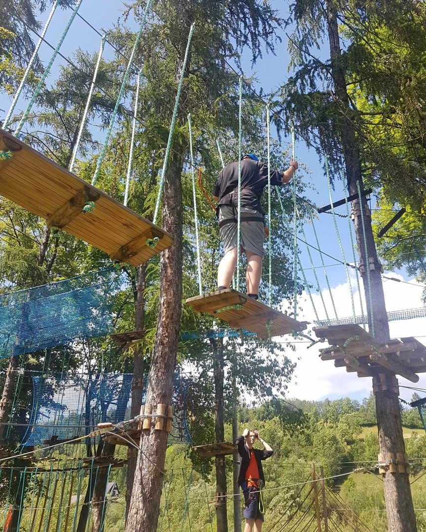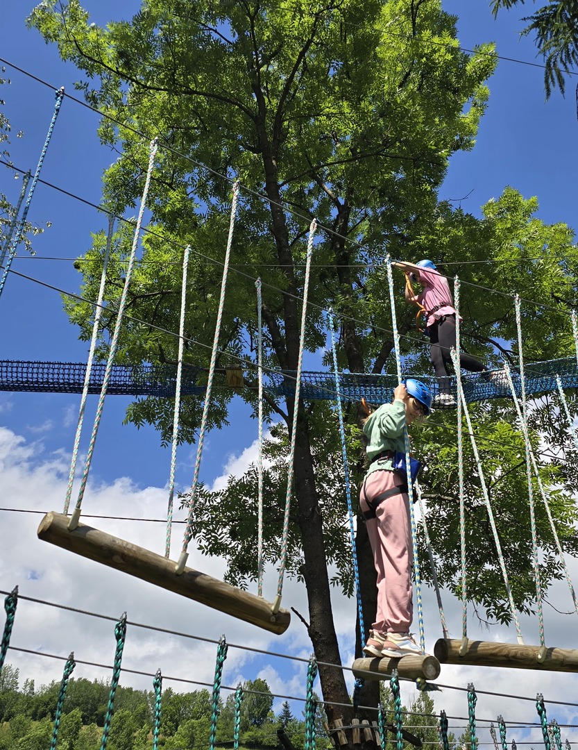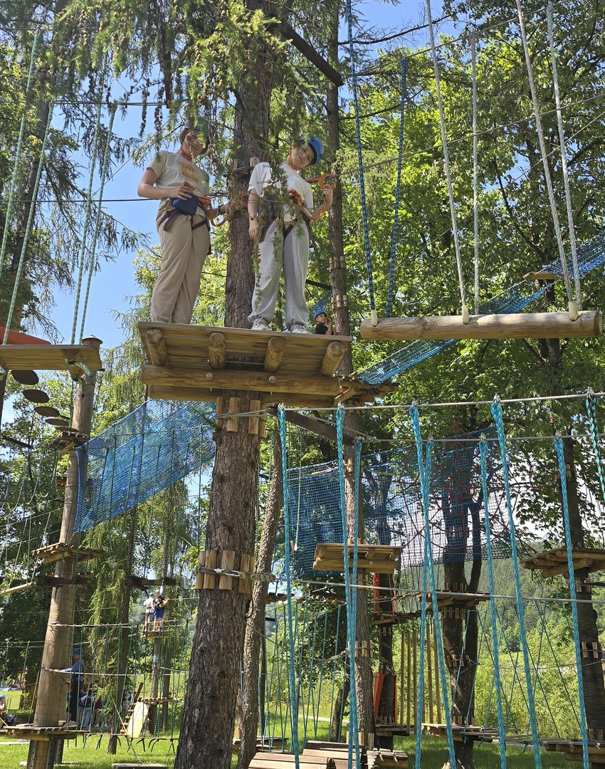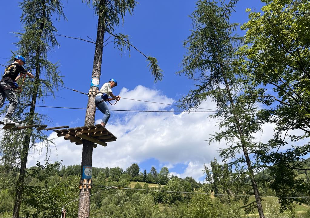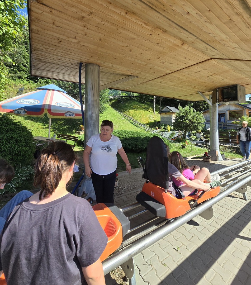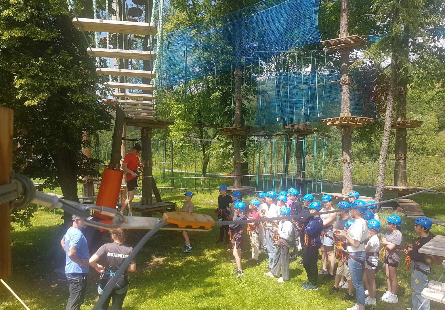Środę rozpoczęliśmy od zwiedzania okazałego XVIII-wiecznego Starego Dworu w Łopusznej, dawnej siedziby szlacheckich, patriotycznych rodzin Lisickich, Tetmajerów i Lgockich. Dom składa się z kilku dobrze wyposażonych pomieszczeń: sieni, kuchni zwanej izbecką, „dużej izby” oraz pomieszczeń gospodarczych: strychu i komory, przybudowanej z tyłu domu. W jego wnętrzach można podziwiać meble z epoki oraz inne przedmioty związane z życiem dawnych właścicieli. Na terenie posiadłości znajduje się również stajnia, wozownia, spichlerz oraz obory. Obok dworu stoi drewniana chałupa wybudowana przez Jana Klamerusa w 1887 r., którą przeniesiono tu ze wsi. Całość otacza drewniane ogrodzenie. Dziś Dwór w Łopusznej to siedziba Muzeum Tatrzańskiego. Kolejnym punktem programu był park linowy Lemur. To atrakcja turystyczna znajdująca się w Ochotnicy Dolnej nad Dunajcem oferująca róznorodne trasy i przeszkody dla osób chcących spróbować swoich sił we wspinaczce po drzewach. Spacer po linach i zjazdy na tyrolce dostarczyły nam wielu emocji i adrenaliny. Po wyzwaniach w parku linowym udaliśmy się na tor saneczkowy w Kluszkowcach. Zjazdy na saneczkach po specjalnie przygotowanym torze były pełne radości i śmiechu, a widok na Jezioro Czorsztyńskie i otaczające nas góry zapierały dech w piersiach. Tego dnia zwiedziliśmy również Krościenko nad Dunajcem, miejscowość malowniczo położoną wśród pasm górskich, która obfituje w wiele atrakcji.
