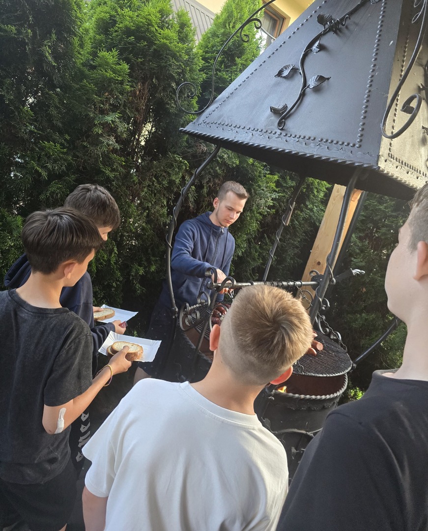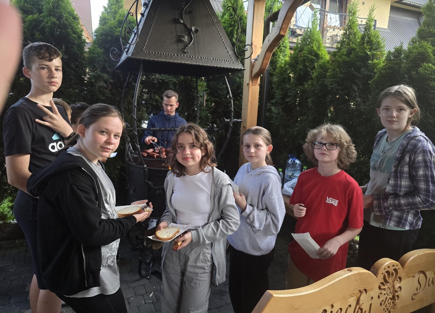 Następnego dnia, w blasku porannego słońca, pieszym szlakiem wybraliśmy się na malowniczą Rusinową Polanę. Podczas wędrówki towarzyszył nam pan Hubert, przewodnik, który dzielił się z nami swoją wiedzą na temat tego jakże urokliwego miejsca oraz bawił nas ciekawymi i zabawnymi anegdotami. Spacerując po tej urokliwej polanie, mogliśmy podziwiać zapierające dech w piersiach widoki na Tatry, które wyglądały jak wyjęte z pocztówki. Rusinowa Polana to miejsce, gdzie natura w pełni pokazuje swoje piękno. Po drodze na Rusinową Polanę wstąpiliśmy do Sanktuarium Matki Bożej Jaworzyńskiej Królowej Tatr na Wiktorówkach. Zwieńczeniem tego dnia były zabawy integracyjne na świeżym powietrzu oraz grill.