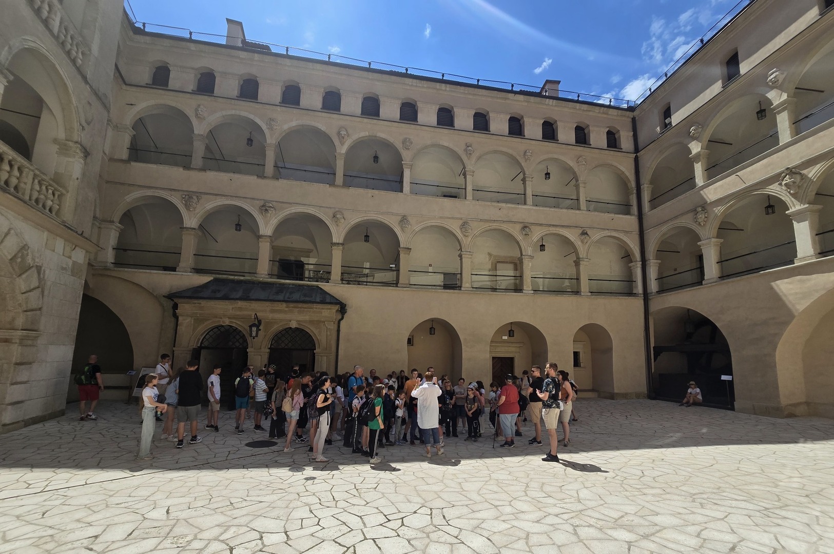 W drodze powrotnej zatrzymaliśmy się w Tyńcu, by odwiedzić Opactwo Benedyktynów. Stare, kamienne mury i spokojna atmosfera tego miejsca pozwoliły nam przenieść się w czasie i poczuć duchową głębię, która emanuje z tego klasztoru. Naszą wycieczkę zakończyliśmy wizytą w Ojcowskim Parku Narodowy, zwiedzając Zamek Pieskowa Skała. Renesansowa architektura zamku, otoczona pięknymi ogrodami i malowniczymi skałami, zrobiła na nas ogromne wrażenie.