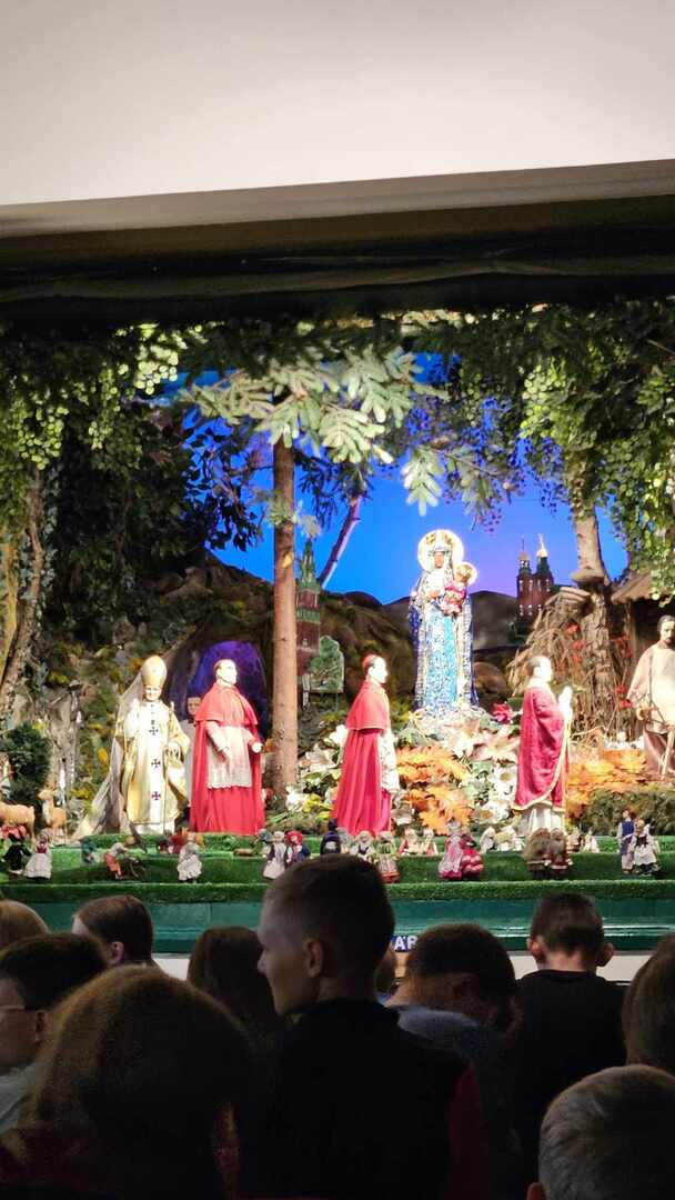 Pierwszym punktem programu było przedstawienie Misterium Męki Pańskiej, które zrobiło na wszystkich ogromne wrażenie. Następnie udaliśmy się aby obejrzeć Panoramę Tysiąclecia czyli na krótką lekcje historii, upamiętniającą Tysiąclecie Chrztu Polski oraz przedstawiającą ponad 140 wybitnych postaci zasłużonych dla naszej ojczyzny i Kościoła. O godz. 11.00 wzięliśmy udział w Mszy Świętej odprawionej w intencji naszych uczniów z okazji przyjęcia Pierwszej Komunii Świętej. Po Mszy udaliśmy się do Kaplicy Wieczystej Adoracji Najświętszego Sakramentu, gdzie każdy przez chwilę zatopił się w indywidualnej modlitwie.