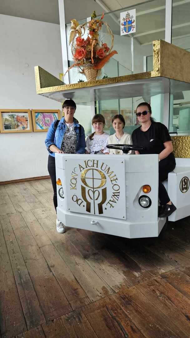 Kolejnym punktem było Muzeum Papieskie z dwoma samochodami – PAPA MOBILE, z których Jan Paweł II korzystał w czasie pierwszych pielgrzymek do Polski. Na koniec udaliśmy się do Muzeum Świętego Maksymiliana, aby obejrzeć wystawę pod hasłem „Był człowiek”, na którą składają się fotografie, eksponaty i pamiątki misyjne związane z życiem oraz działalnością założyciela Niepokalanowa.