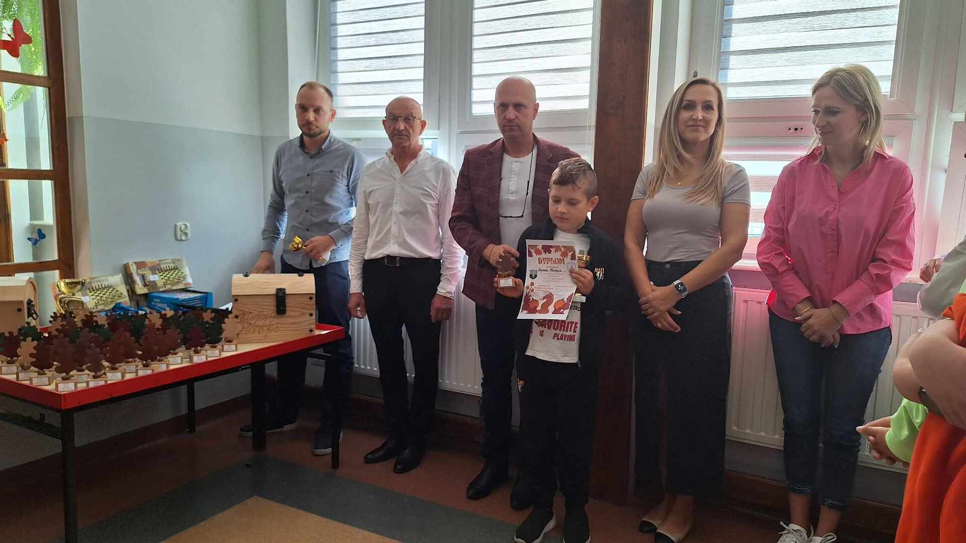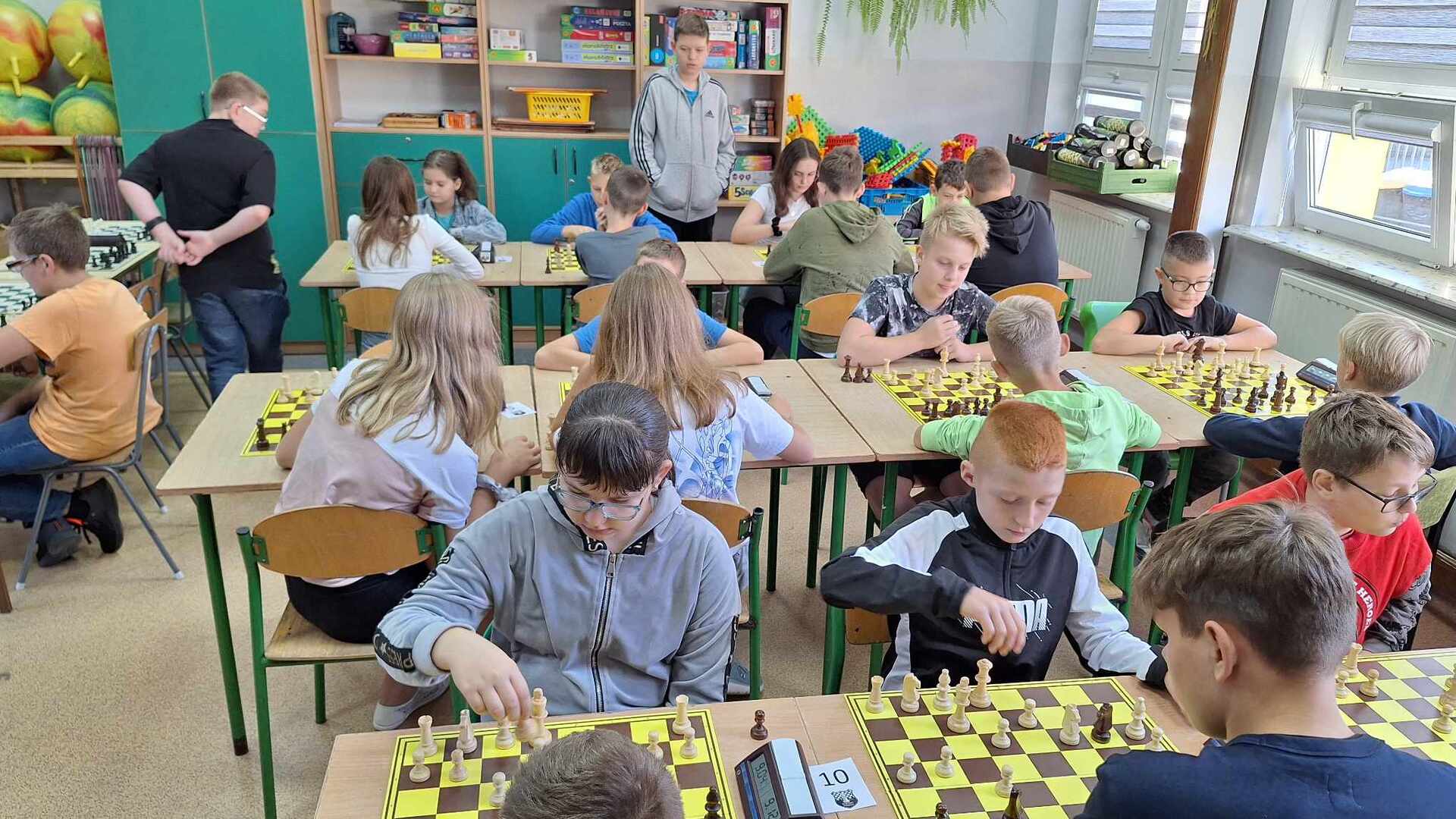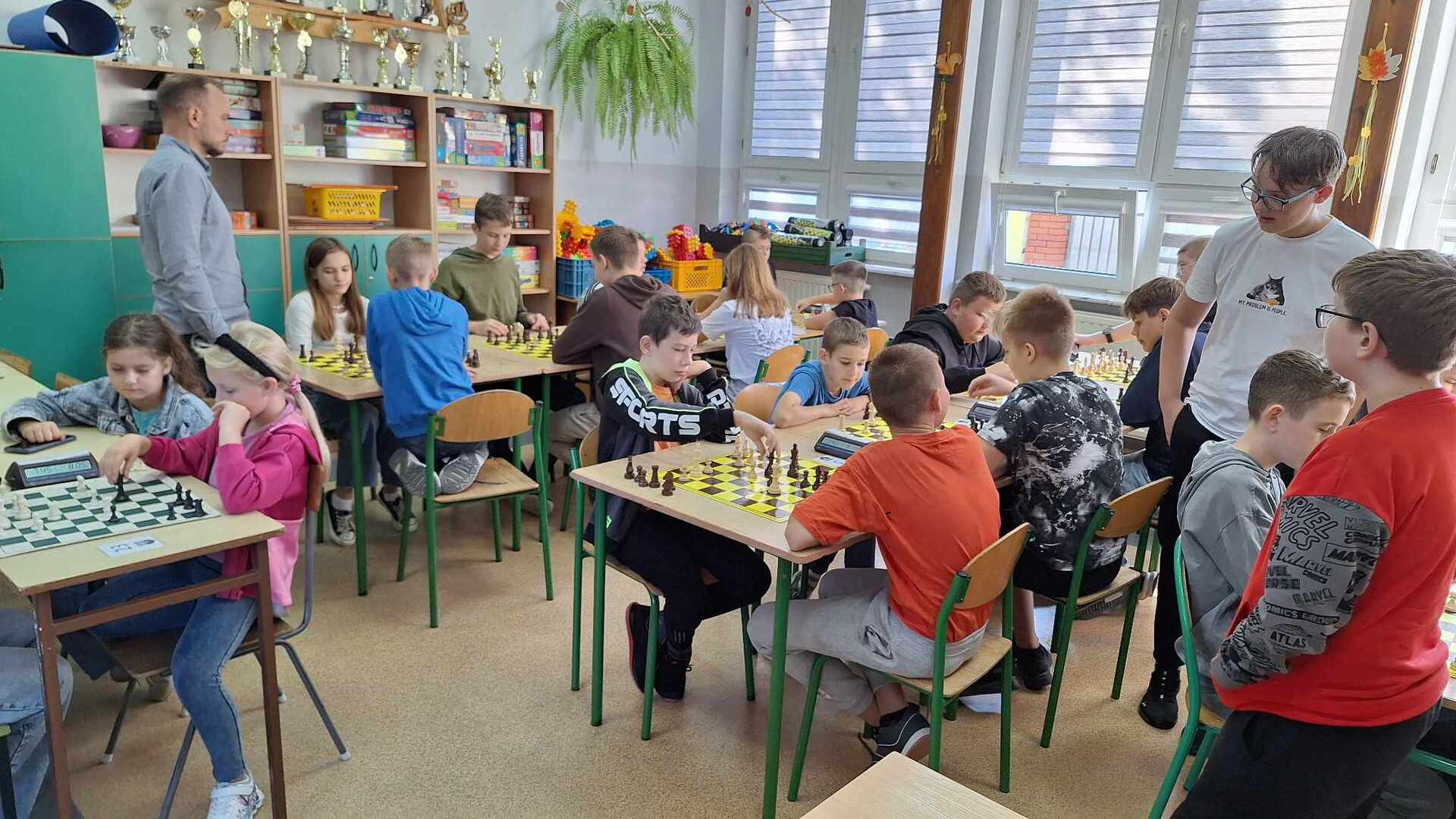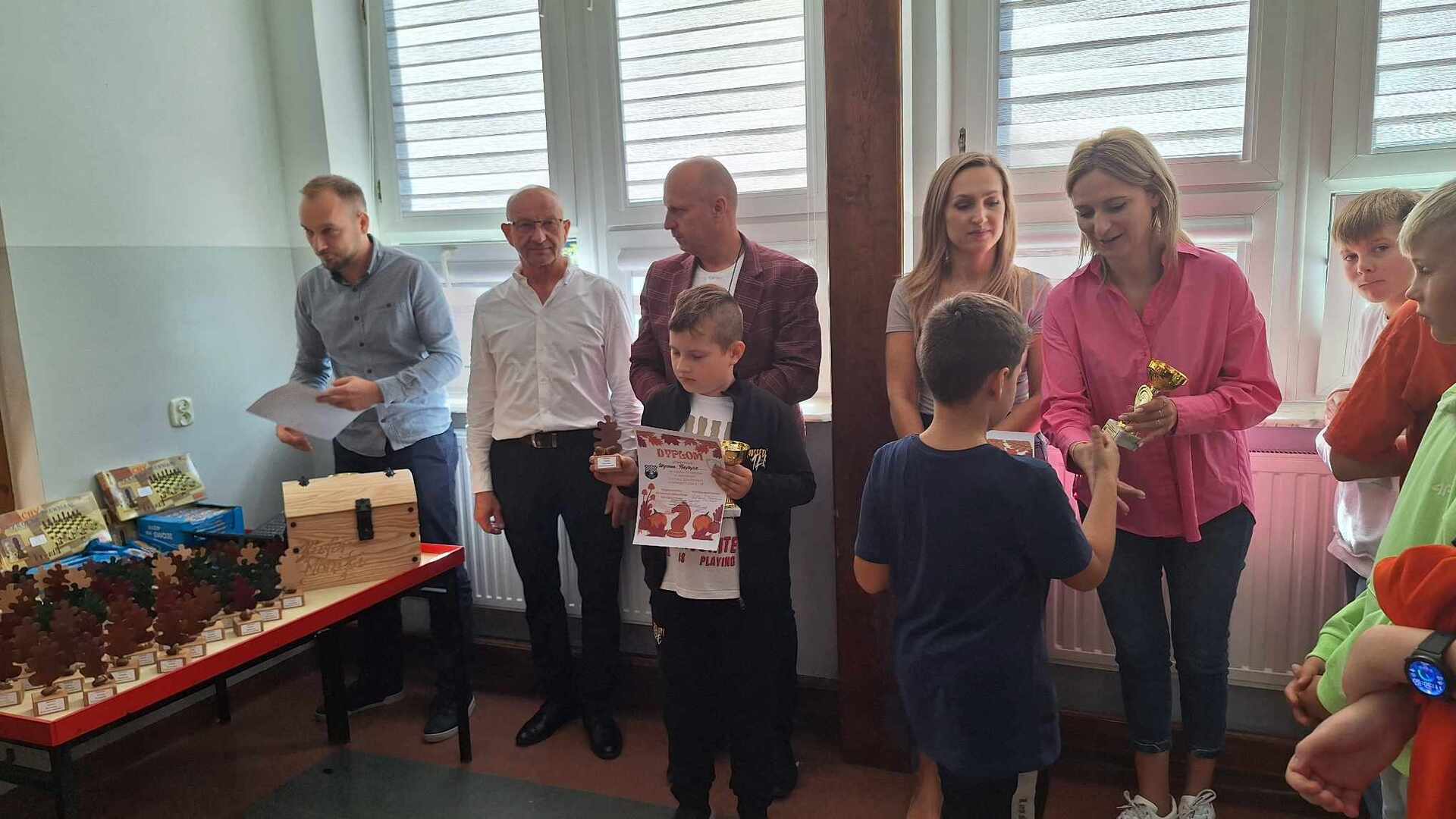 W piątek, 20.09.2024 r., w świetlicy szkolnej rozegraliśmy pierwszy z czterech, Jesienny Turniej Szachowy. Do rozgrywek zgłosiło się 47 zawodników z klas od 0 do VIII, jest to rekordowa liczba! Bardzo nas cieszy, że szachy są coraz bardziej popularne. Dzięki nim wzmacniamy rozwój intelektualny, towarzyski i społeczny - BRAWO!!!. Turniej rozegrano systemem szwajcarskim na dystansie 7 rund, w tempie 10 minut na zawodnika. Wyniki klasyfikacji końcowej przedstawione są w tabeli, w dalszej części materiału. W kategorii kl. 0 - IV najlepsze wyniki osiągnęli: 1. KACPER SZYMAŃSKI kl. 3a; 2. BARTOSZ KOTYNIA kl. 3b; 3. SZYMON PRZYBYSZ kl. 3b. W kategorii kl. V - VIII kolejność na podium przedstawia się następująco: 1. JAKUB KWIATKOWSKI kl. 5a; 2. MICHAŁ MATYSIAK kl.6b; 3. JAGODA KWIATKOWSKA kl. 7a. Zwycięzcy otrzymali pamiątkowe dyplomy oraz puchary. W ulubionej przez uczniów atrakcji podsumowującej turniej - " SZCZĘŚLIWY LOS ", kuleczki z numerami zawodników, z "KUFRA MONIKI" wylosowali kolejno: Pani Monika Matysiak, miłośnik szachów, Pani Justyna Pecyna, przewodnicząca Rady Rodziców, Pan Piotr Mikinka, dyrektor szkoły i sympatyk szachów, Pan Józef Wenecki mentor szachistów. Szczęśliwcami okazali się: Dawid Szymański, Amelia Szewczyk, Daniel Przybysz i Lena Kuźba. Uczniowie ci otrzymali pamiątkowe szachy ufundowane przez miłośników szachów. Każdy z zawodników na zakończenie otrzymał słodycze oraz pamiątkową, oryginalną statuetkę nawiązującą do jesieni. Liść dębu w statuetce i żołędzie symbolizują " królewskie drzewo ", bardzo twarde, wytrzymałe, cenione w galanterii wyrobów drewnianych. Oznaczającą potęgę i moc analogicznie do gry królewskiej - szachów. Sponsorami turnieju byli: KS HETMAN ŻELECHLINEK, RADA RODZICÓW PSP ŻELECHLINEK, MIŁOŚNICY SZACHÓW. Składamy serdeczne podziękowania osobom, dzięki którym nasze turnieje możemy realizować: PANI MONICE MATYSIAK dbającej o udostępnienie medialne i wszystkie materiały graficzne, PANU PAWŁOWI KWIATKOWSKIEMU prezesowi KS HETMAN ŻELECHLINEK za ufundowanie pucharów, wsparcie i obsługę techniczną całego turnieju, kreatywnemu wykonawcy oryginalnych statuetek, przyglądającemu się całości, piszącemu te słowa. Z szachowym pozdrowieniem Józef Wenecki.