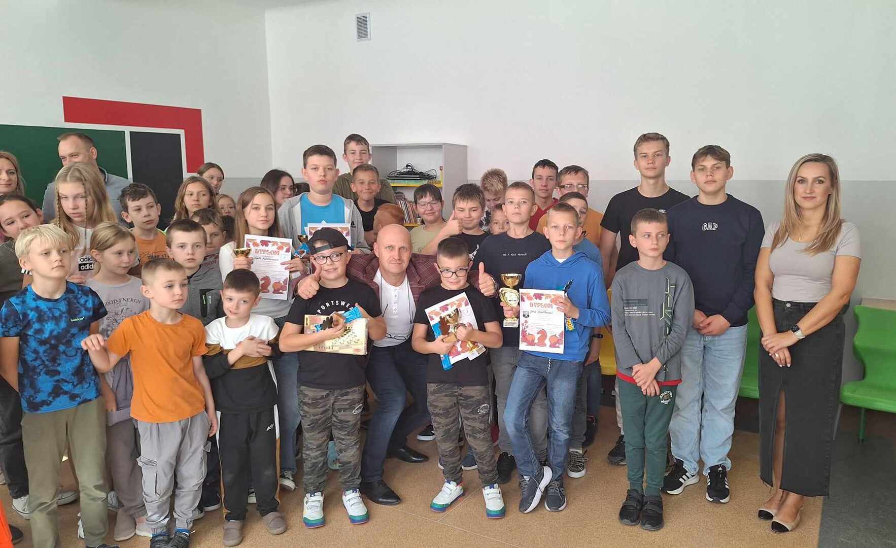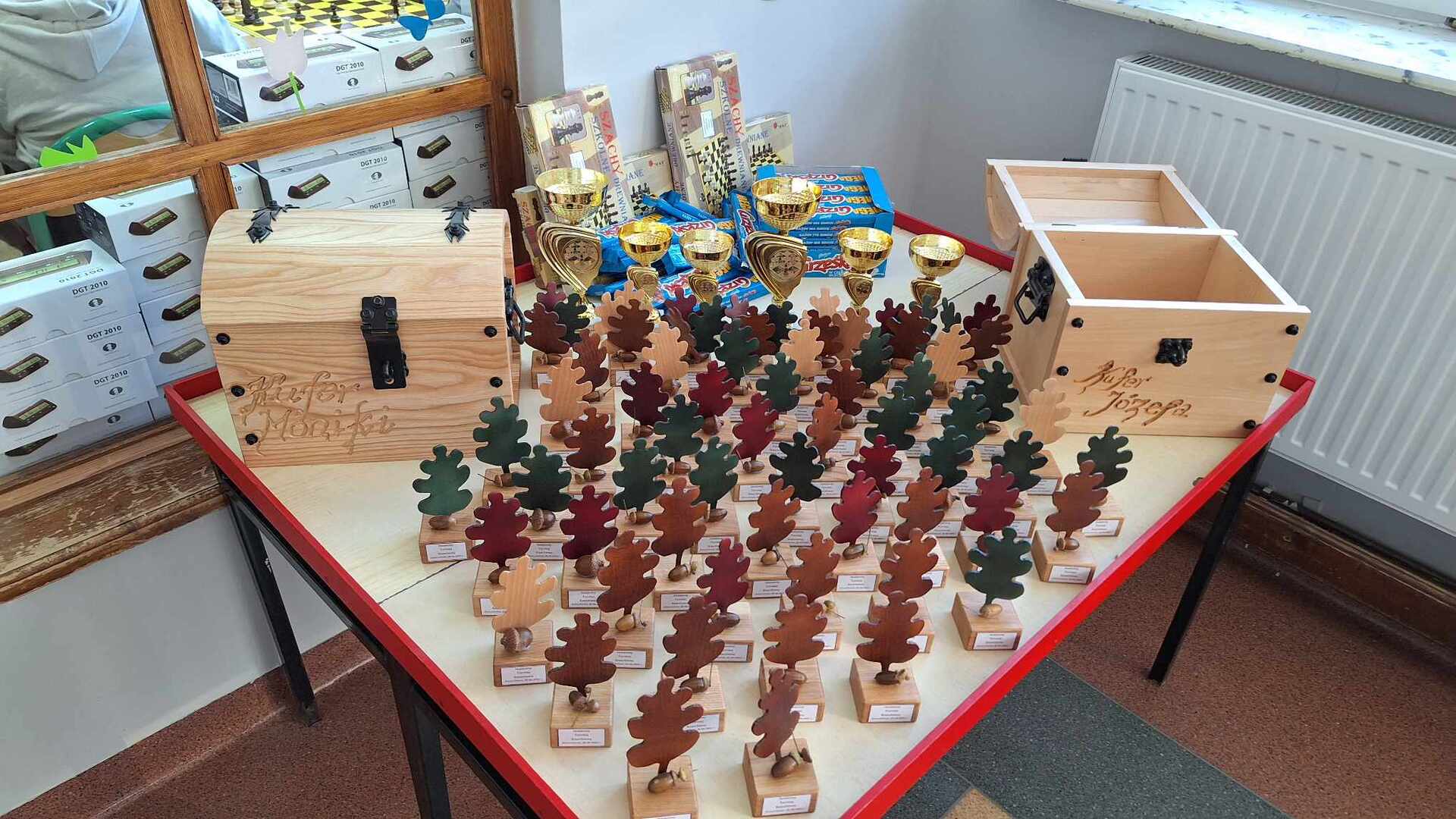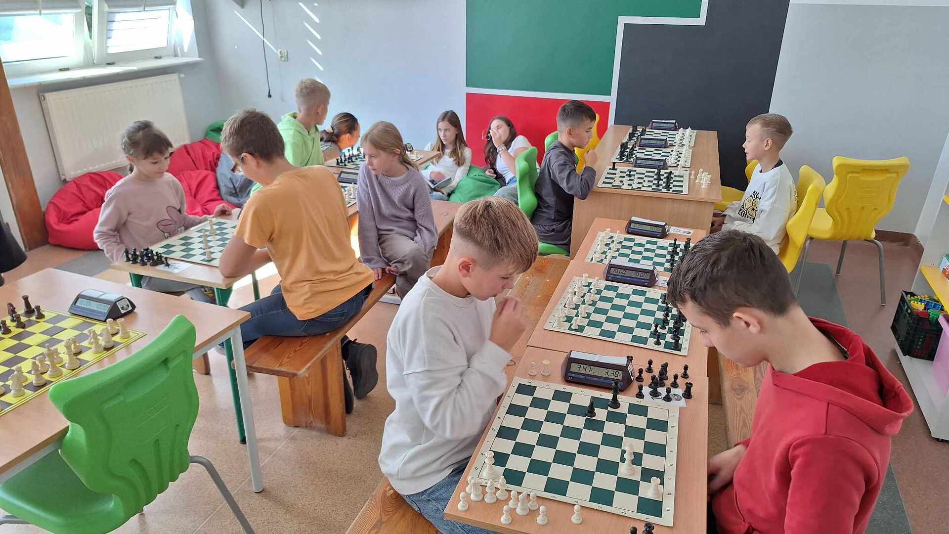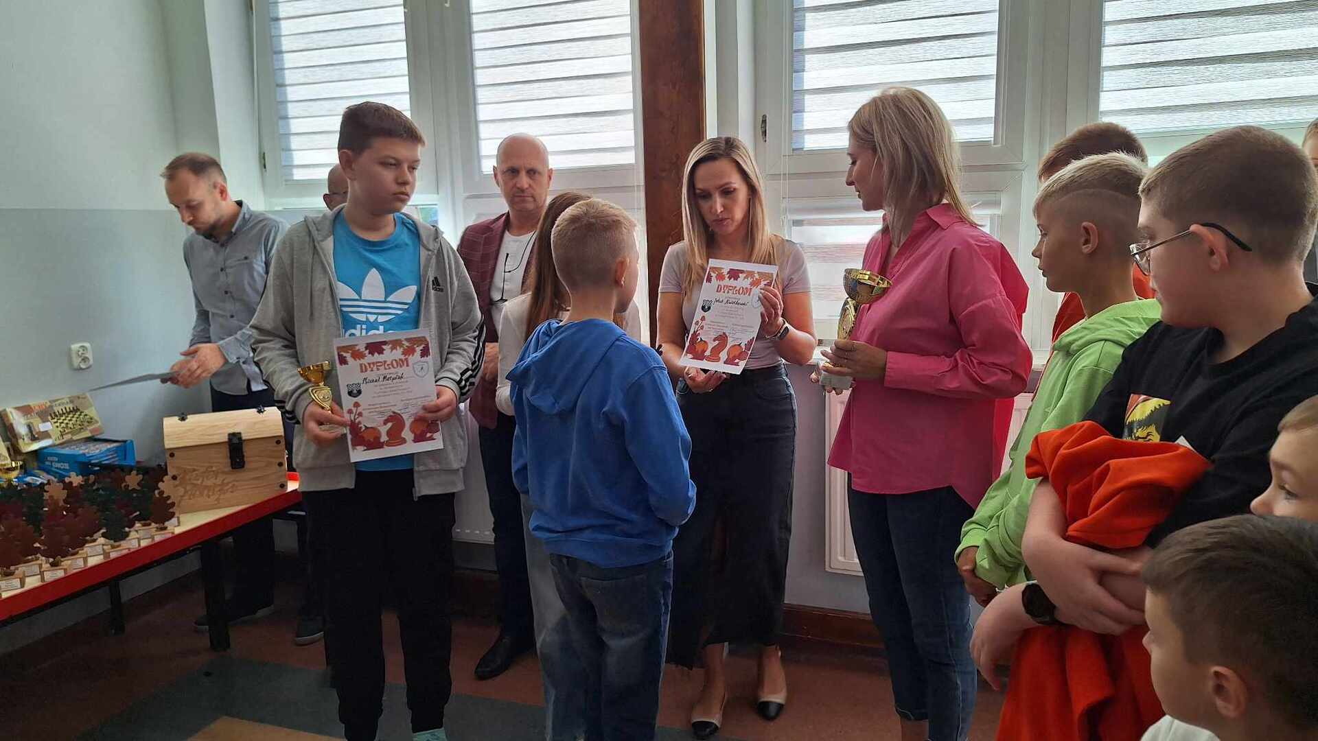 W piątek, 20.09.2024 r., w świetlicy szkolnej rozegraliśmy pierwszy z czterech, Jesienny Turniej Szachowy. Do rozgrywek zgłosiło się 47 zawodników z klas od 0 do VIII, jest to rekordowa liczba! Bardzo nas cieszy, że szachy są coraz bardziej popularne. Dzięki nim wzmacniamy rozwój intelektualny, towarzyski i społeczny - BRAWO!!!. Turniej rozegrano systemem szwajcarskim na dystansie 7 rund, w tempie 10 minut na zawodnika. Wyniki klasyfikacji końcowej przedstawione są w tabeli, w dalszej części materiału. W kategorii kl. 0 - IV najlepsze wyniki osiągnęli: 1. KACPER SZYMAŃSKI kl. 3a; 2. BARTOSZ KOTYNIA kl. 3b; 3. SZYMON PRZYBYSZ kl. 3b. W kategorii kl. V - VIII kolejność na podium przedstawia się następująco: 1. JAKUB KWIATKOWSKI kl. 5a; 2. MICHAŁ MATYSIAK kl.6b; 3. JAGODA KWIATKOWSKA kl. 7a. Zwycięzcy otrzymali pamiątkowe dyplomy oraz puchary. W ulubionej przez uczniów atrakcji podsumowującej turniej - " SZCZĘŚLIWY LOS ", kuleczki z numerami zawodników, z "KUFRA MONIKI" wylosowali kolejno: Pani Monika Matysiak, miłośnik szachów, Pani Justyna Pecyna, przewodnicząca Rady Rodziców, Pan Piotr Mikinka, dyrektor szkoły i sympatyk szachów, Pan Józef Wenecki mentor szachistów. Szczęśliwcami okazali się: Dawid Szymański, Amelia Szewczyk, Daniel Przybysz i Lena Kuźba. Uczniowie ci otrzymali pamiątkowe szachy ufundowane przez miłośników szachów. Każdy z zawodników na zakończenie otrzymał słodycze oraz pamiątkową, oryginalną statuetkę nawiązującą do jesieni. Liść dębu w statuetce i żołędzie symbolizują " królewskie drzewo ", bardzo twarde, wytrzymałe, cenione w galanterii wyrobów drewnianych. Oznaczającą potęgę i moc analogicznie do gry królewskiej - szachów. Sponsorami turnieju byli: KS HETMAN ŻELECHLINEK, RADA RODZICÓW PSP ŻELECHLINEK, MIŁOŚNICY SZACHÓW. Składamy serdeczne podziękowania osobom, dzięki którym nasze turnieje możemy realizować: PANI MONICE MATYSIAK dbającej o udostępnienie medialne i wszystkie materiały graficzne, PANU PAWŁOWI KWIATKOWSKIEMU prezesowi KS HETMAN ŻELECHLINEK za ufundowanie pucharów, wsparcie i obsługę techniczną całego turnieju, kreatywnemu wykonawcy oryginalnych statuetek, przyglądającemu się całości, piszącemu te słowa. Z szachowym pozdrowieniem Józef Wenecki.