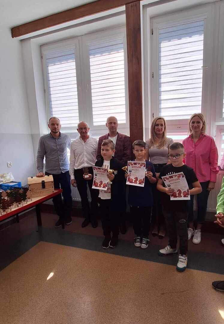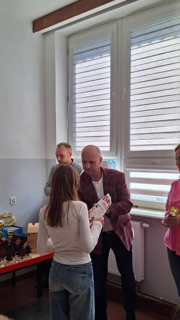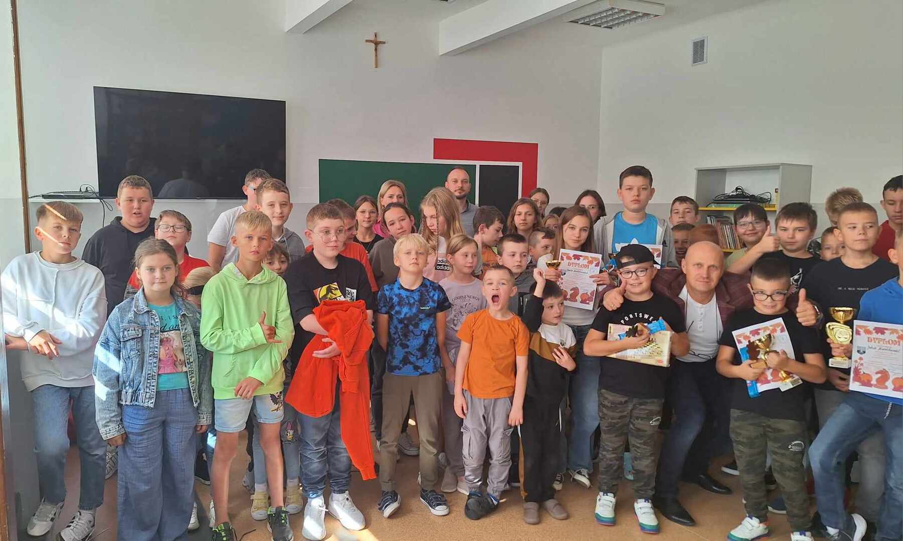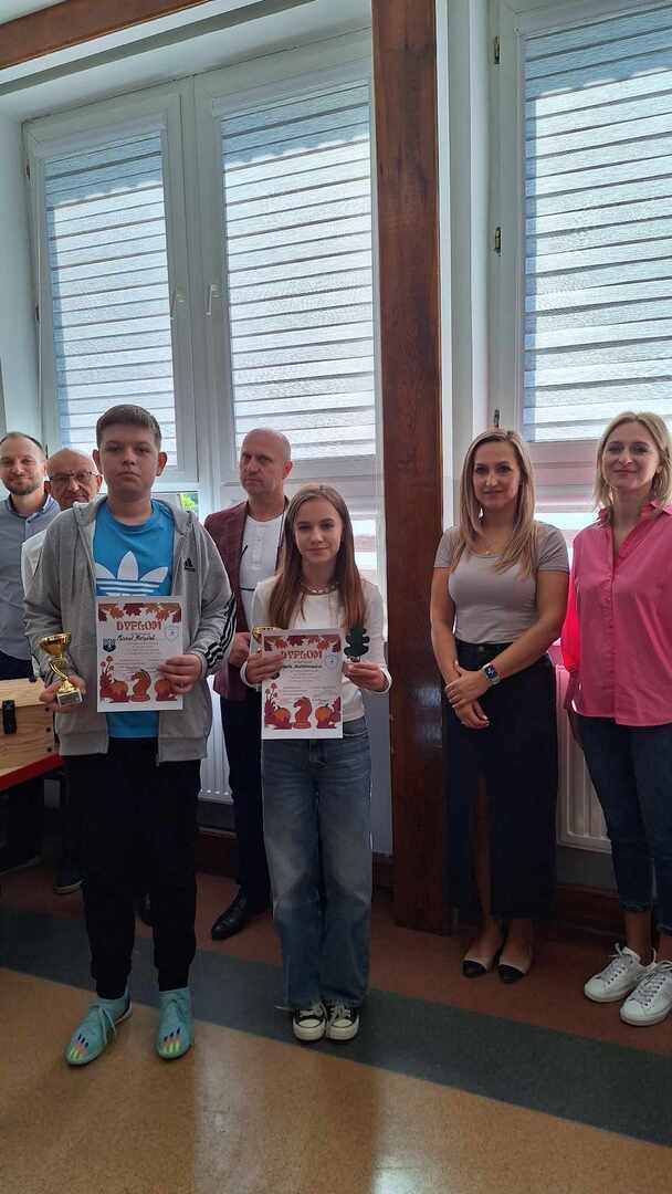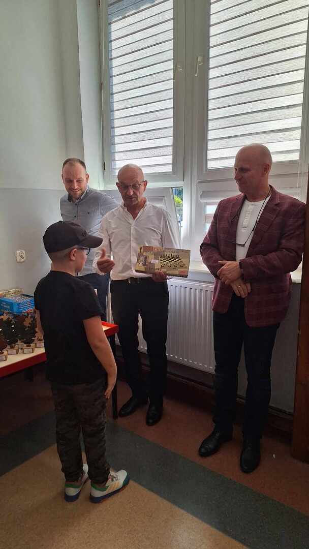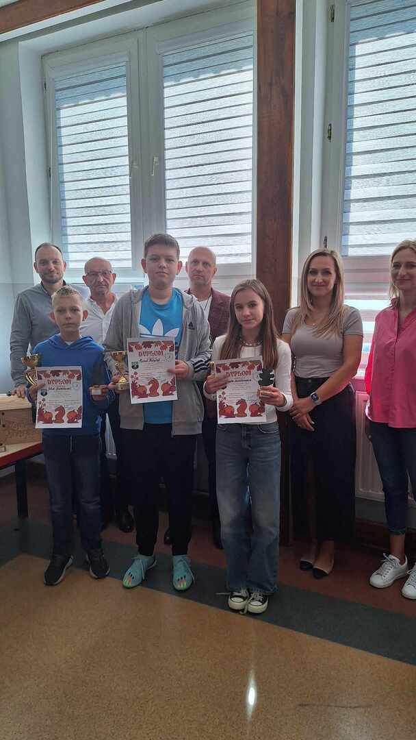 W piątek, 20.09.2024 r., w świetlicy szkolnej rozegraliśmy pierwszy z czterech, Jesienny Turniej Szachowy. Do rozgrywek zgłosiło się 47 zawodników z klas od 0 do VIII, jest to rekordowa liczba! Bardzo nas cieszy, że szachy są coraz bardziej popularne. Dzięki nim wzmacniamy rozwój intelektualny, towarzyski i społeczny - BRAWO!!!. Turniej rozegrano systemem szwajcarskim na dystansie 7 rund, w tempie 10 minut na zawodnika. Wyniki klasyfikacji końcowej przedstawione są w tabeli, w dalszej części materiału. W kategorii kl. 0 - IV najlepsze wyniki osiągnęli: 1. KACPER SZYMAŃSKI kl. 3a; 2. BARTOSZ KOTYNIA kl. 3b; 3. SZYMON PRZYBYSZ kl. 3b. W kategorii kl. V - VIII kolejność na podium przedstawia się następująco: 1. JAKUB KWIATKOWSKI kl. 5a; 2. MICHAŁ MATYSIAK kl.6b; 3. JAGODA KWIATKOWSKA kl. 7a. Zwycięzcy otrzymali pamiątkowe dyplomy oraz puchary. W ulubionej przez uczniów atrakcji podsumowującej turniej - " SZCZĘŚLIWY LOS ", kuleczki z numerami zawodników, z "KUFRA MONIKI" wylosowali kolejno: Pani Monika Matysiak, miłośnik szachów, Pani Justyna Pecyna, przewodnicząca Rady Rodziców, Pan Piotr Mikinka, dyrektor szkoły i sympatyk szachów, Pan Józef Wenecki mentor szachistów. Szczęśliwcami okazali się: Dawid Szymański, Amelia Szewczyk, Daniel Przybysz i Lena Kuźba. Uczniowie ci otrzymali pamiątkowe szachy ufundowane przez miłośników szachów. Każdy z zawodników na zakończenie otrzymał słodycze oraz pamiątkową, oryginalną statuetkę nawiązującą do jesieni. Liść dębu w statuetce i żołędzie symbolizują " królewskie drzewo ", bardzo twarde, wytrzymałe, cenione w galanterii wyrobów drewnianych. Oznaczającą potęgę i moc analogicznie do gry królewskiej - szachów. Sponsorami turnieju byli: KS HETMAN ŻELECHLINEK, RADA RODZICÓW PSP ŻELECHLINEK, MIŁOŚNICY SZACHÓW. Składamy serdeczne podziękowania osobom, dzięki którym nasze turnieje możemy realizować: PANI MONICE MATYSIAK dbającej o udostępnienie medialne i wszystkie materiały graficzne, PANU PAWŁOWI KWIATKOWSKIEMU prezesowi KS HETMAN ŻELECHLINEK za ufundowanie pucharów, wsparcie i obsługę techniczną całego turnieju, kreatywnemu wykonawcy oryginalnych statuetek, przyglądającemu się całości, piszącemu te słowa. Z szachowym pozdrowieniem Józef Wenecki.