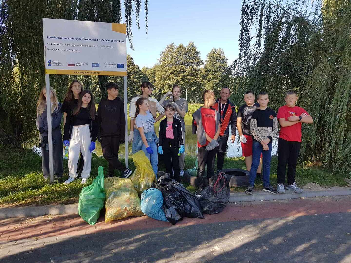 W piątek, 20 września 2024 r., klasa VIII b pod opieką pani Iwony Mazgajskiej włączyła się do Akcji Sprzątanie świata. Uczniowie zaopatrzeni w worki do segregacji odpadów i jednorazowe rękawiczki ruszyli ulicami Żelechlinka: M. Konopnickiej, księdza W. Skalskiego, Lipową i Rawską. Młodzież została podzielona na grupy, aby dokładnie segregować śmieci. Dokonując segregacji odpadów, uczestnicy akcji zwrócili uwagę na zużywanie przez ludzi bardzo dużych ilości plastiku. Zebrane śmieci zostały złożone w wyznaczonym miejscu. Akcja odbyła się w czasie dwóch godzin lekcyjnych. Uczniowie zebrali 2 worki plastiku, 2 worki opakowań szklanych i 1 worek odpadów mieszanych. Do akcji włączyły się również klasa VII a wraz z wychowawczynią panią Pauliną Kostrzewą i klasa VII b z wychowawcą panem Leszkiem Jarosińskim. Uczniowie klas VII posprzątali teren wokół zalewu i w okolicy Ośrodka Zdrowia. Klasa 5b z wychowawczynią panią Ewą Ambrozik uprzątnęła teren skateparku, ul. Cmentarną, ul. Targową i okolicę sklepu Dino. Klasa IV b z panią Elżbietą Sęk sprzątała pobocze drogi w kierunku Karolinowa i przybrożny las.