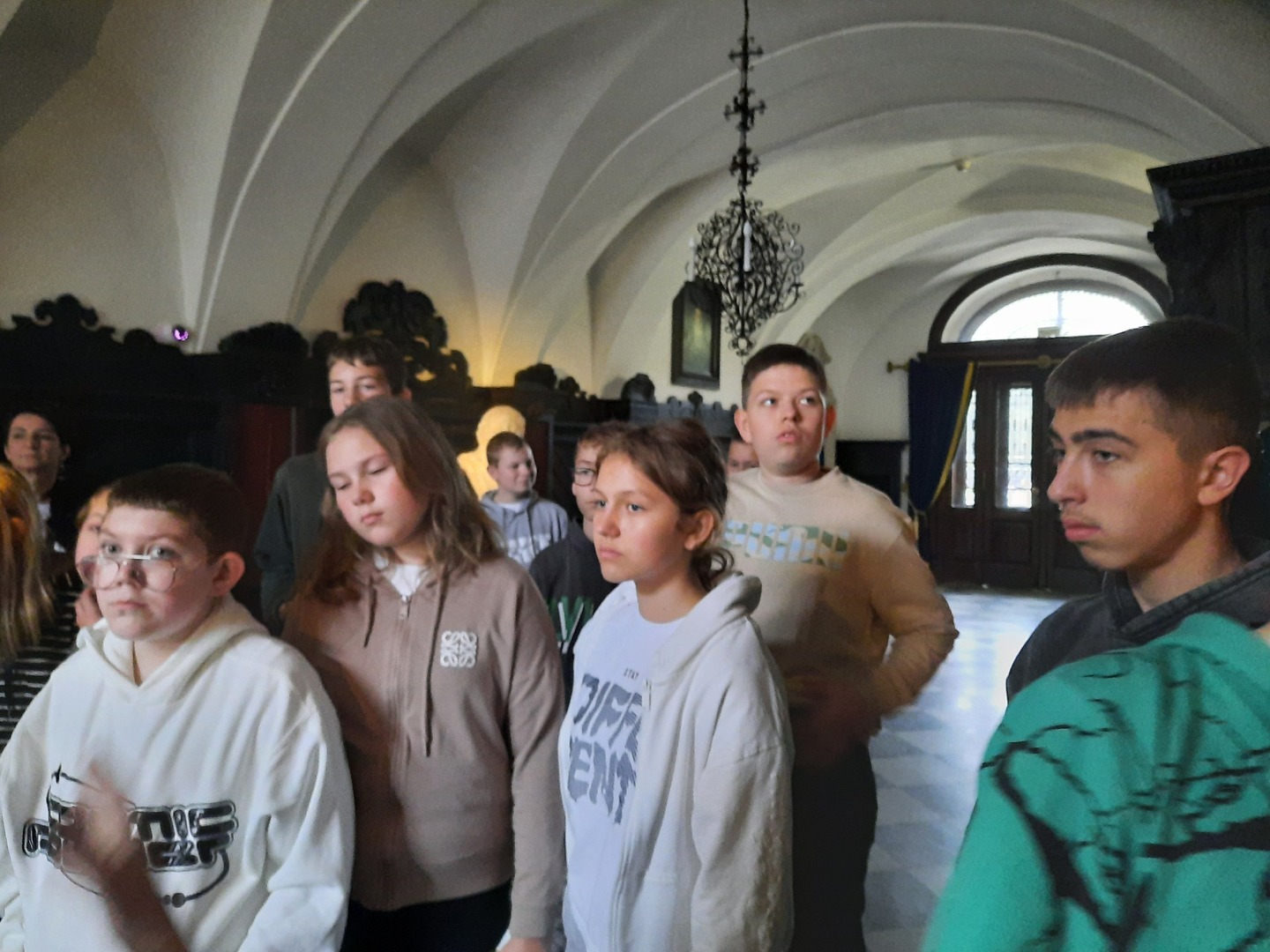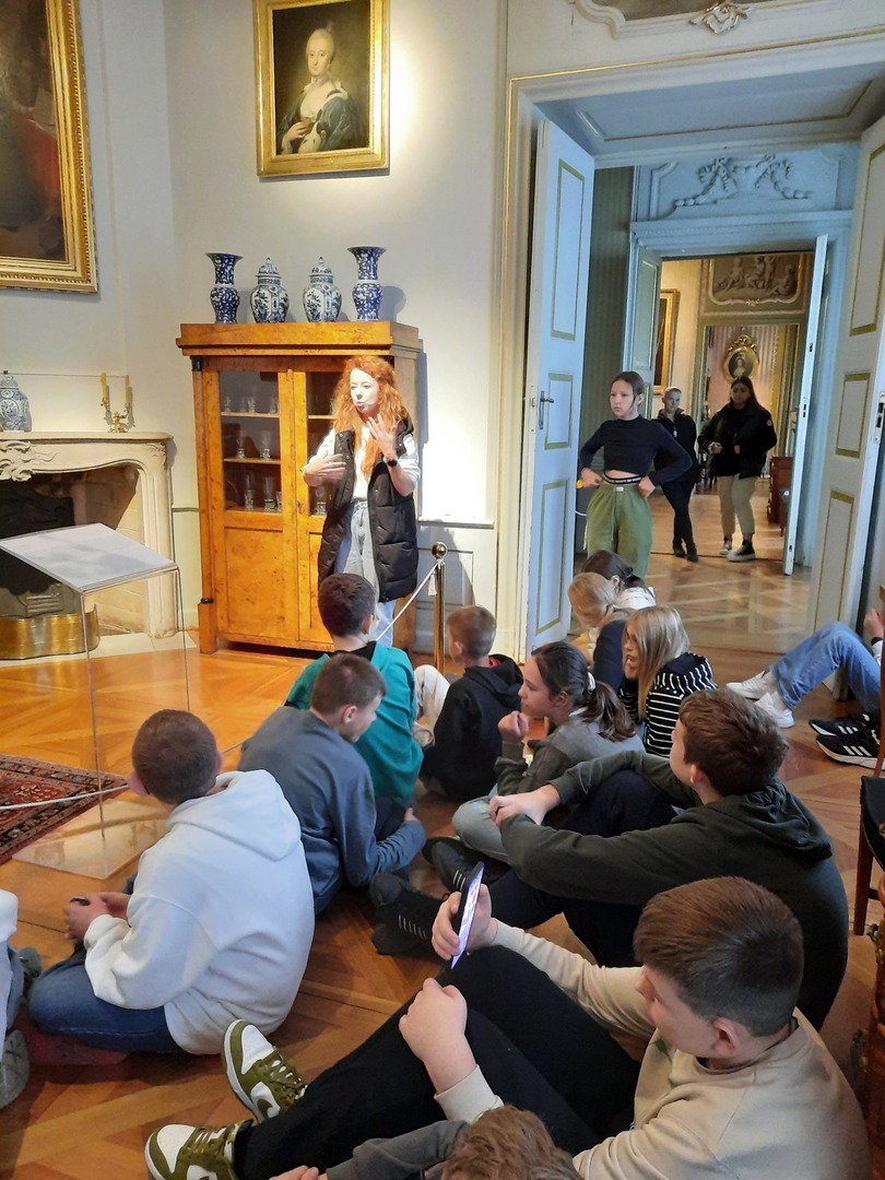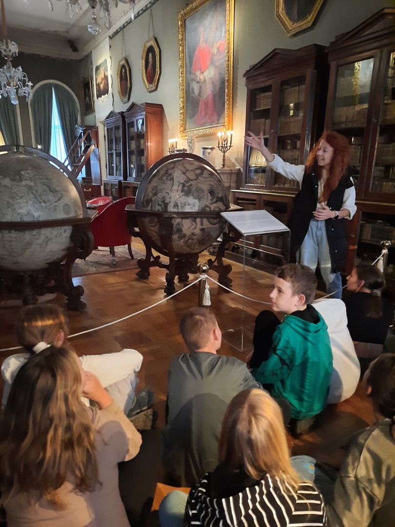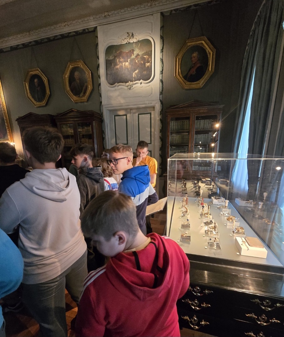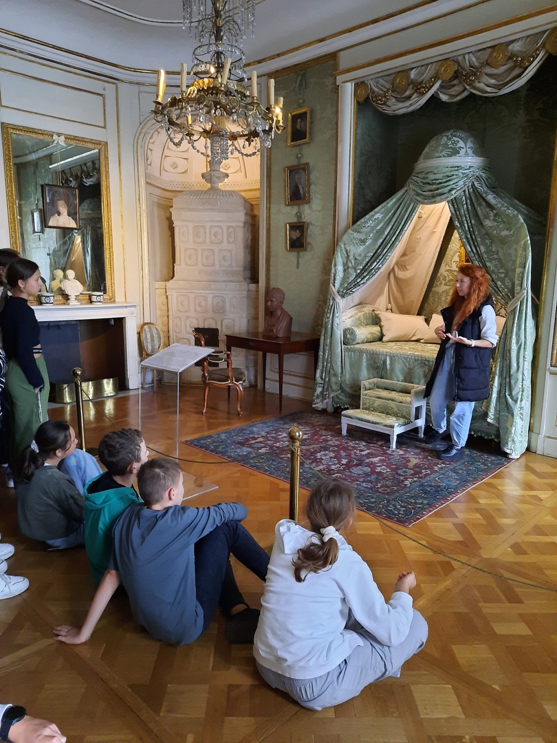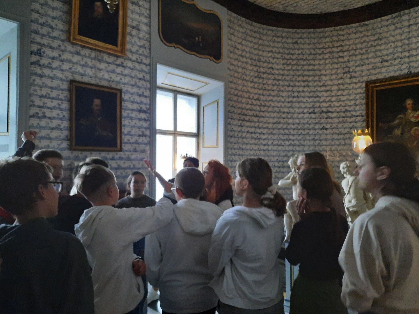 W dniu 4 października 2024 r. dziewczynki i chłopcy z klas: VIb, VIIa i VII b wraz z wychowawcami: p. Dorotą Kowalewską, p. Pauliną Kostrzewą, p. Leszkiem Jarosińskim oraz nauczycielką informatyki panią Iloną Dudą wzięli udział w wycieczce edukacyjno-krajoznawczej do Muzeum w Nieborowie i Żelazowej Woli. W Nieborowie uczniowie uczestniczyli w lekcji muzealnej pt. ,,Zabytki i zbytki”, która była prawdziwą zabawą z historią. Wraz z przewodnikiem zwiedzali muzeum, poznając historię pałacu i jego dawnych właścicieli. Przechodząc przez kolejne sale, podziwiali bogato zdobione wnętrza i zgromadzone tam eksponaty. Podsumowaniem zwiedzania była gra w kalambury, która pozwoliła utrwalić najistotniejsze wiadomości o nieborowskich zabytkach. Pobyt w Nieborowie zakończyliśmy spacerem po pałacowym parku, zachwycając się jesiennym pejzażem.