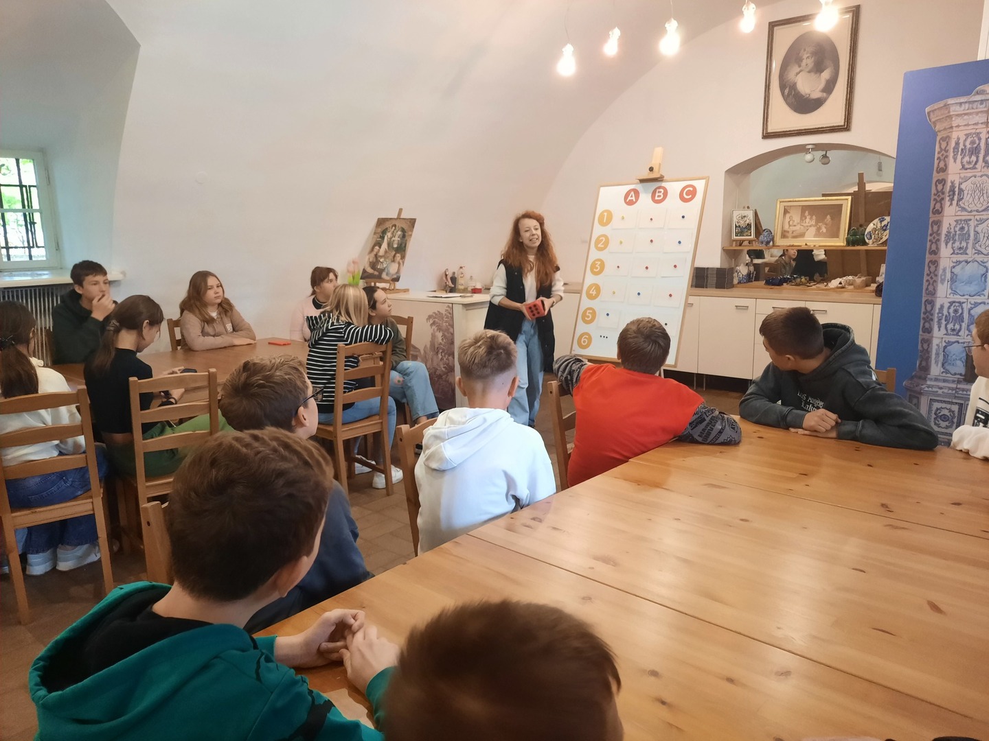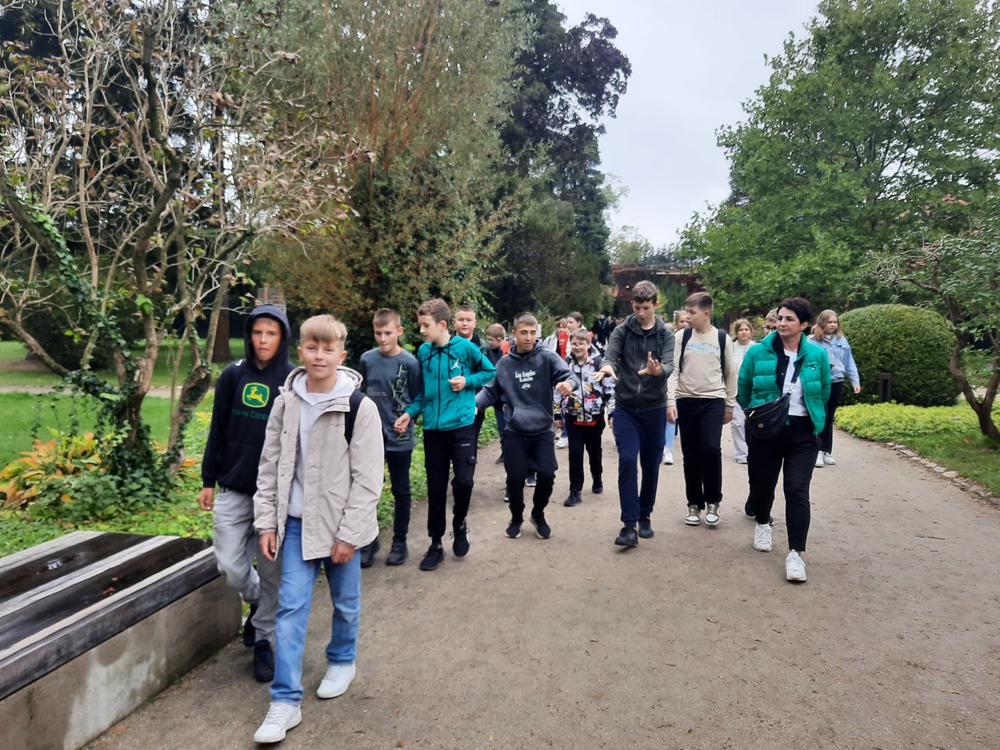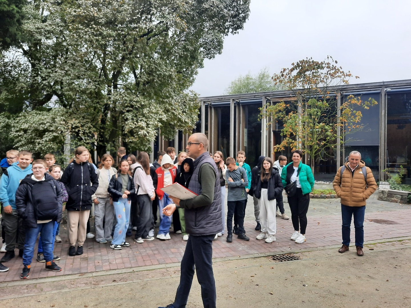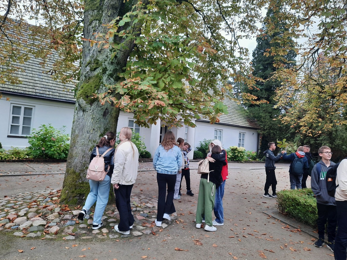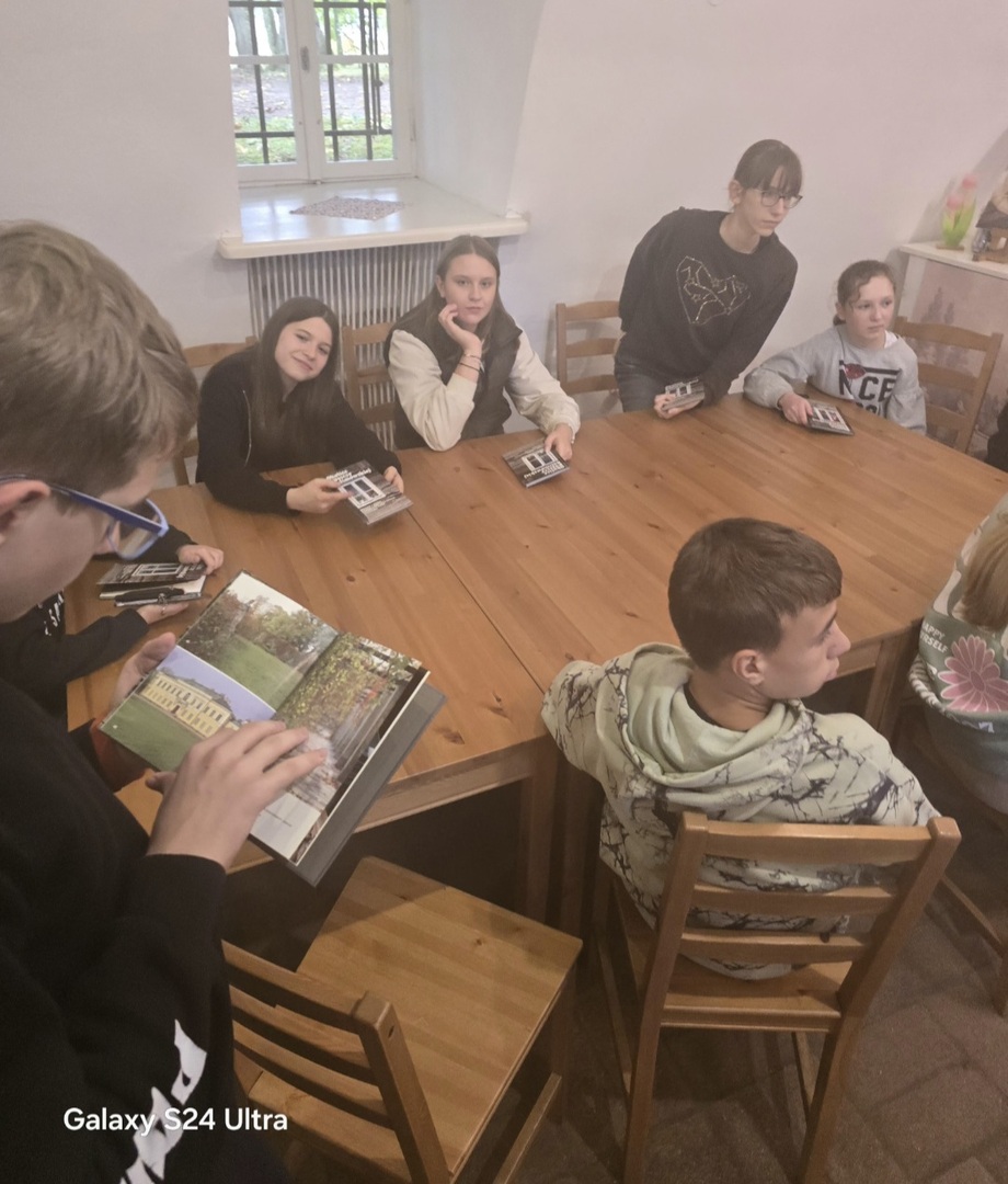 W dniu 4 października 2024 r. dziewczynki i chłopcy z klas: VIb, VIIa i VII b wraz z wychowawcami: p. Dorotą Kowalewską, p. Pauliną Kostrzewą, p. Leszkiem Jarosińskim oraz nauczycielką informatyki panią Iloną Dudą wzięli udział w wycieczce edukacyjno-krajoznawczej do Muzeum w Nieborowie i Żelazowej Woli. W Nieborowie uczniowie uczestniczyli w lekcji muzealnej pt. ,,Zabytki i zbytki”, która była prawdziwą zabawą z historią. Wraz z przewodnikiem zwiedzali muzeum, poznając historię pałacu i jego dawnych właścicieli. Przechodząc przez kolejne sale, podziwiali bogato zdobione wnętrza i zgromadzone tam eksponaty. Podsumowaniem zwiedzania była gra w kalambury, która pozwoliła utrwalić najistotniejsze wiadomości o nieborowskich zabytkach. Pobyt w Nieborowie zakończyliśmy spacerem po pałacowym parku, zachwycając się jesiennym pejzażem.