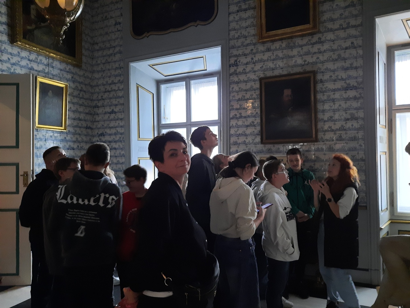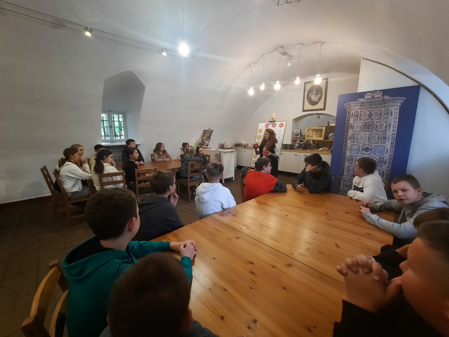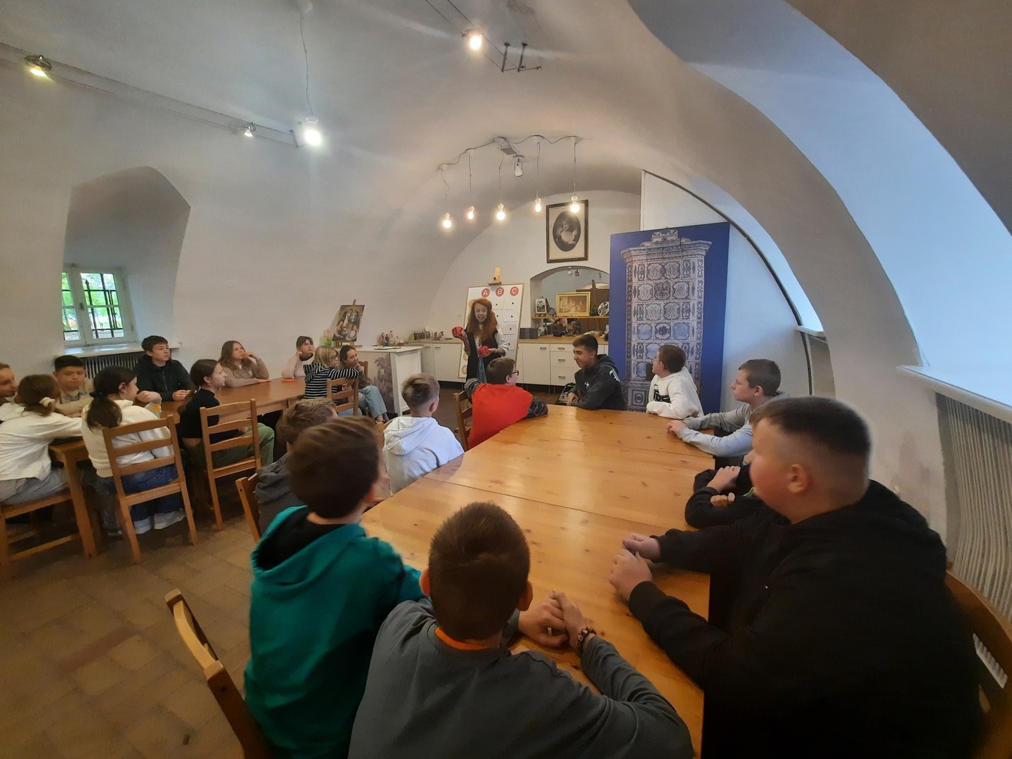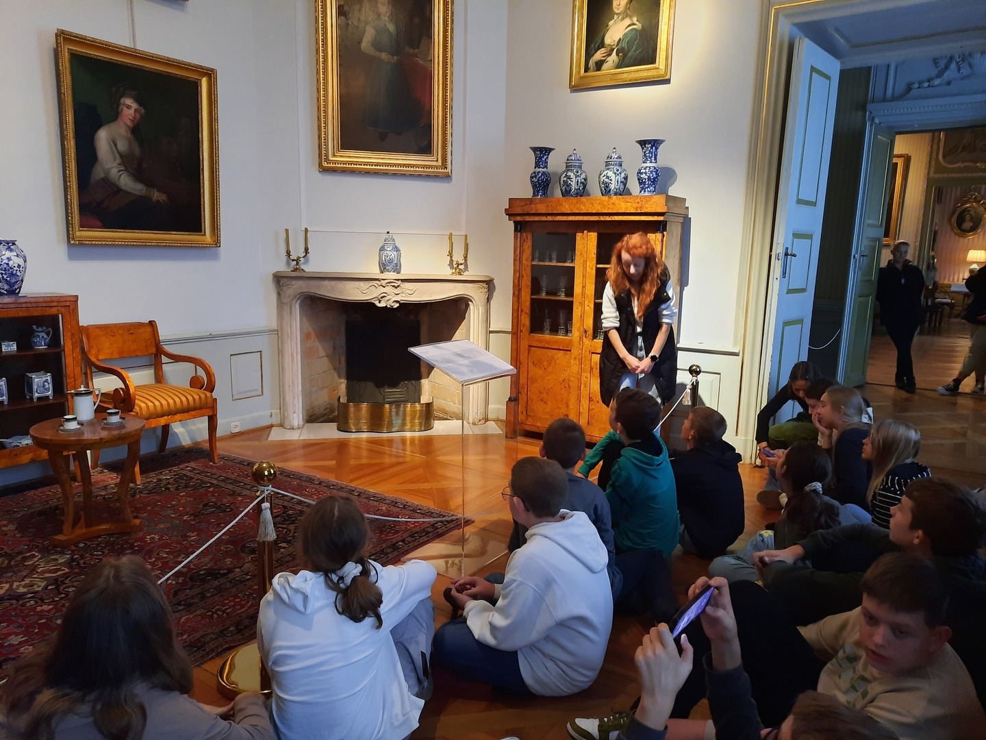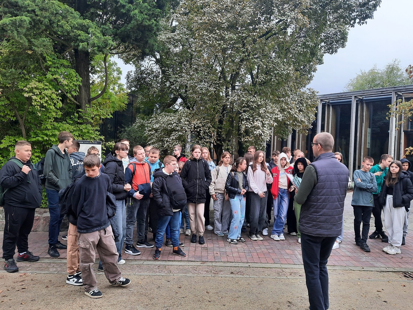 W dniu 4 października 2024 r. dziewczynki i chłopcy z klas: VIb, VIIa i VII b wraz z wychowawcami: p. Dorotą Kowalewską, p. Pauliną Kostrzewą, p. Leszkiem Jarosińskim oraz nauczycielką informatyki panią Iloną Dudą wzięli udział w wycieczce edukacyjno-krajoznawczej do Muzeum w Nieborowie i Żelazowej Woli. W Nieborowie uczniowie uczestniczyli w lekcji muzealnej pt. ,,Zabytki i zbytki”, która była prawdziwą zabawą z historią. Wraz z przewodnikiem zwiedzali muzeum, poznając historię pałacu i jego dawnych właścicieli. Przechodząc przez kolejne sale, podziwiali bogato zdobione wnętrza i zgromadzone tam eksponaty. Podsumowaniem zwiedzania była gra w kalambury, która pozwoliła utrwalić najistotniejsze wiadomości o nieborowskich zabytkach. Pobyt w Nieborowie zakończyliśmy spacerem po pałacowym parku, zachwycając się jesiennym pejzażem.