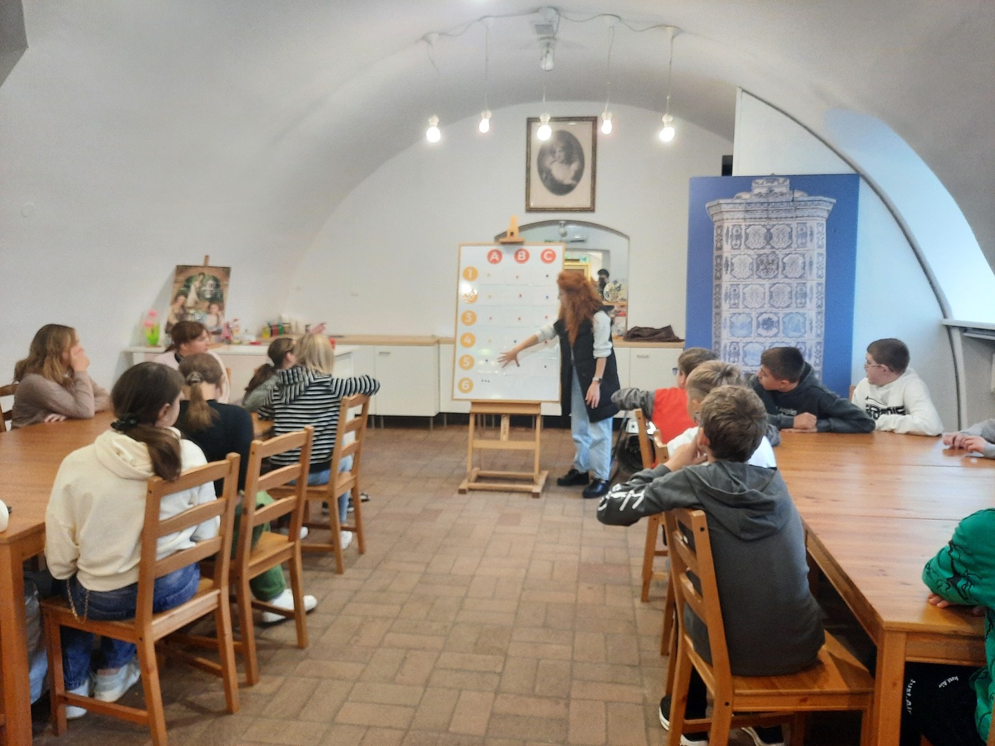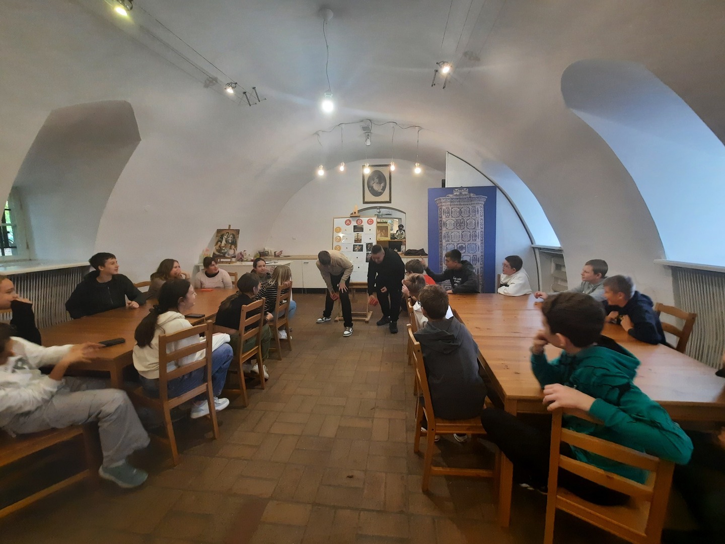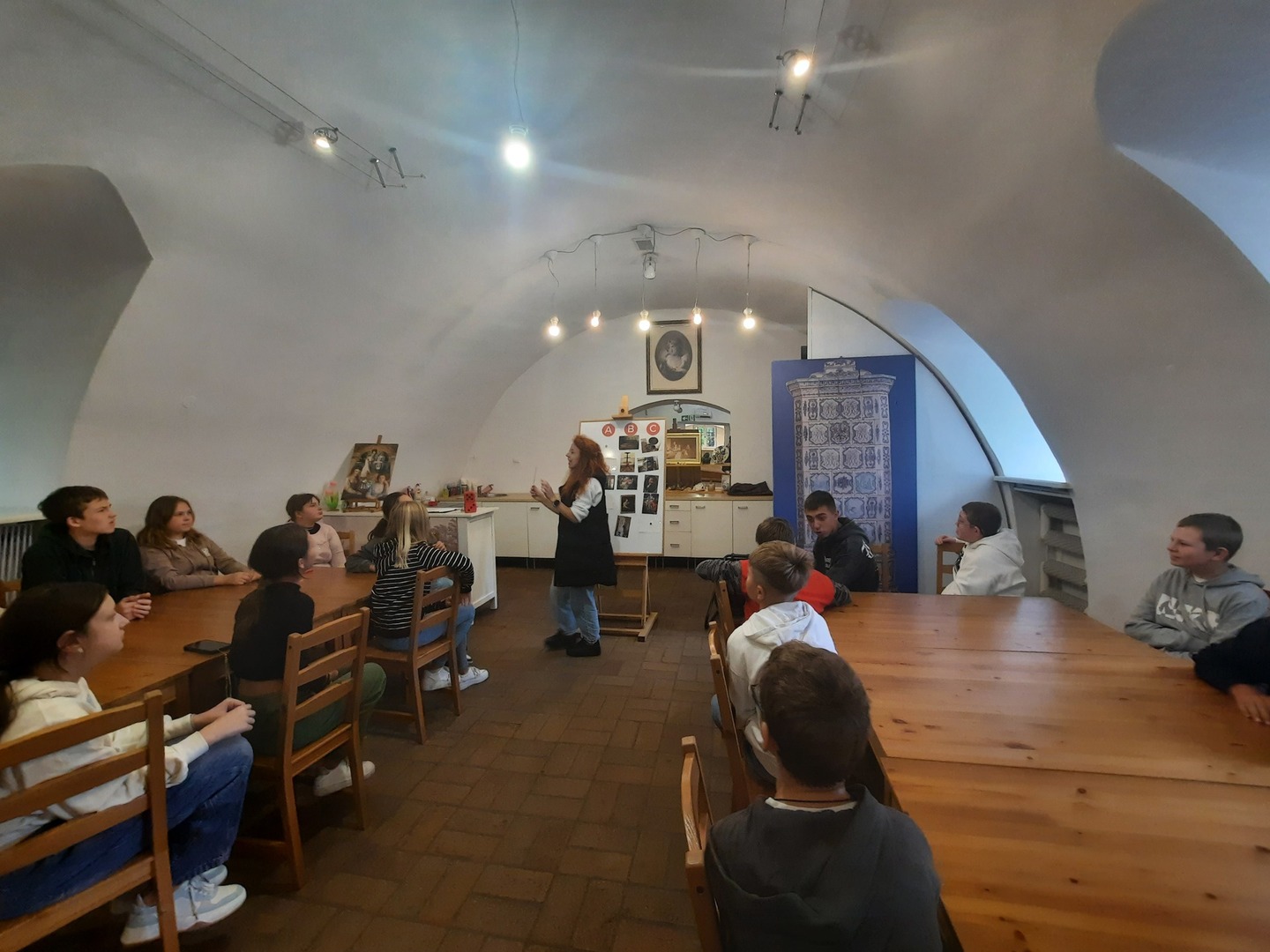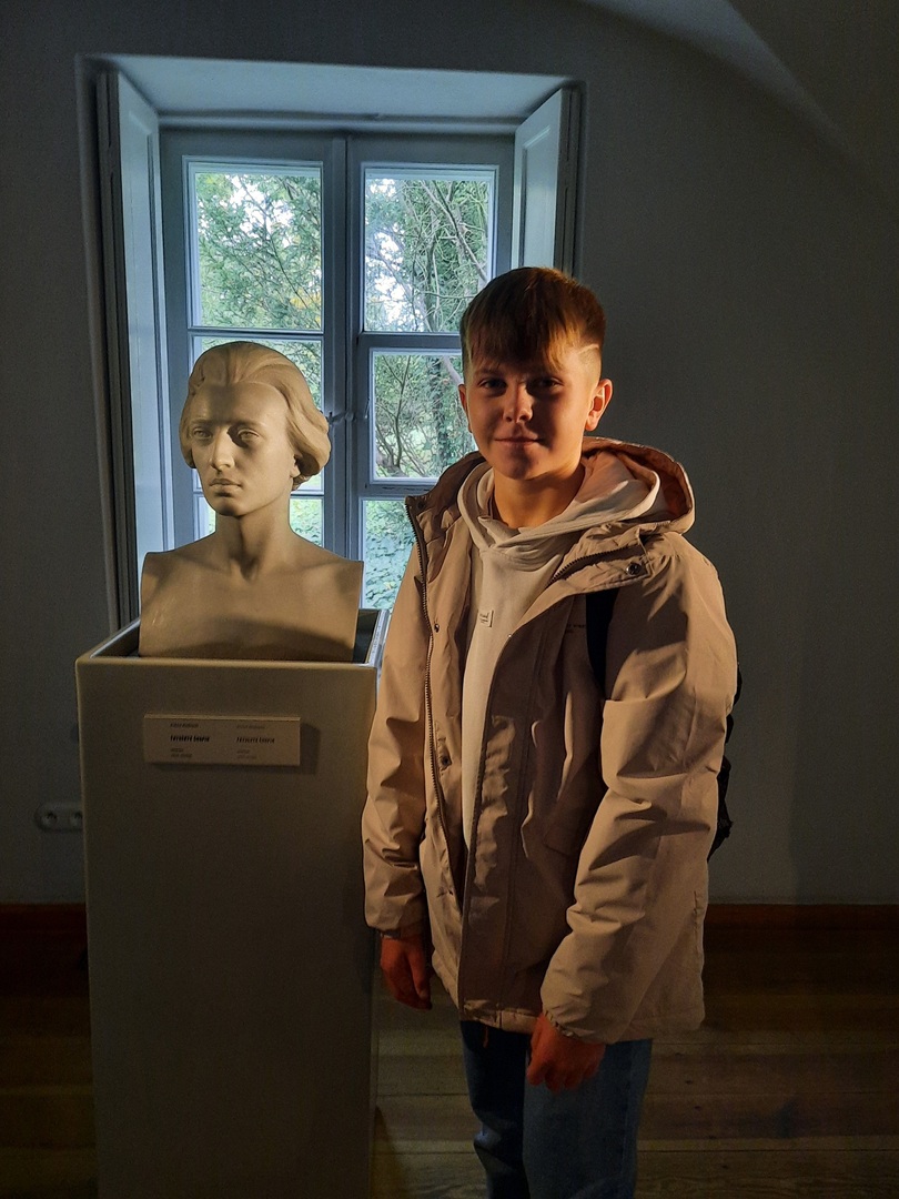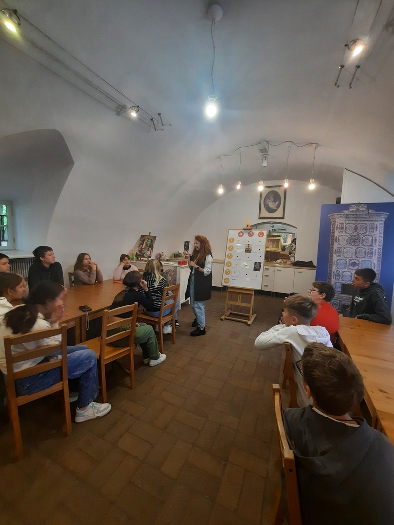 W dniu 4 października 2024 r. dziewczynki i chłopcy z klas: VIb, VIIa i VII b wraz z wychowawcami: p. Dorotą Kowalewską, p. Pauliną Kostrzewą, p. Leszkiem Jarosińskim oraz nauczycielką informatyki panią Iloną Dudą wzięli udział w wycieczce edukacyjno-krajoznawczej do Muzeum w Nieborowie i Żelazowej Woli. W Nieborowie uczniowie uczestniczyli w lekcji muzealnej pt. ,,Zabytki i zbytki”, która była prawdziwą zabawą z historią. Wraz z przewodnikiem zwiedzali muzeum, poznając historię pałacu i jego dawnych właścicieli. Przechodząc przez kolejne sale, podziwiali bogato zdobione wnętrza i zgromadzone tam eksponaty. Podsumowaniem zwiedzania była gra w kalambury, która pozwoliła utrwalić najistotniejsze wiadomości o nieborowskich zabytkach. Pobyt w Nieborowie zakończyliśmy spacerem po pałacowym parku, zachwycając się jesiennym pejzażem.