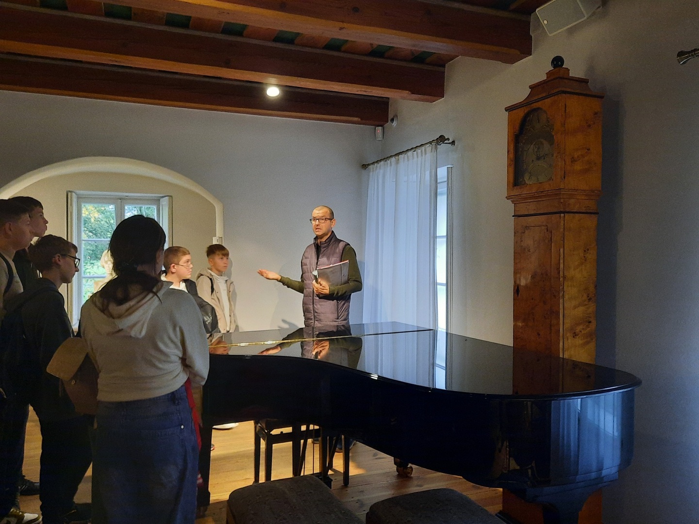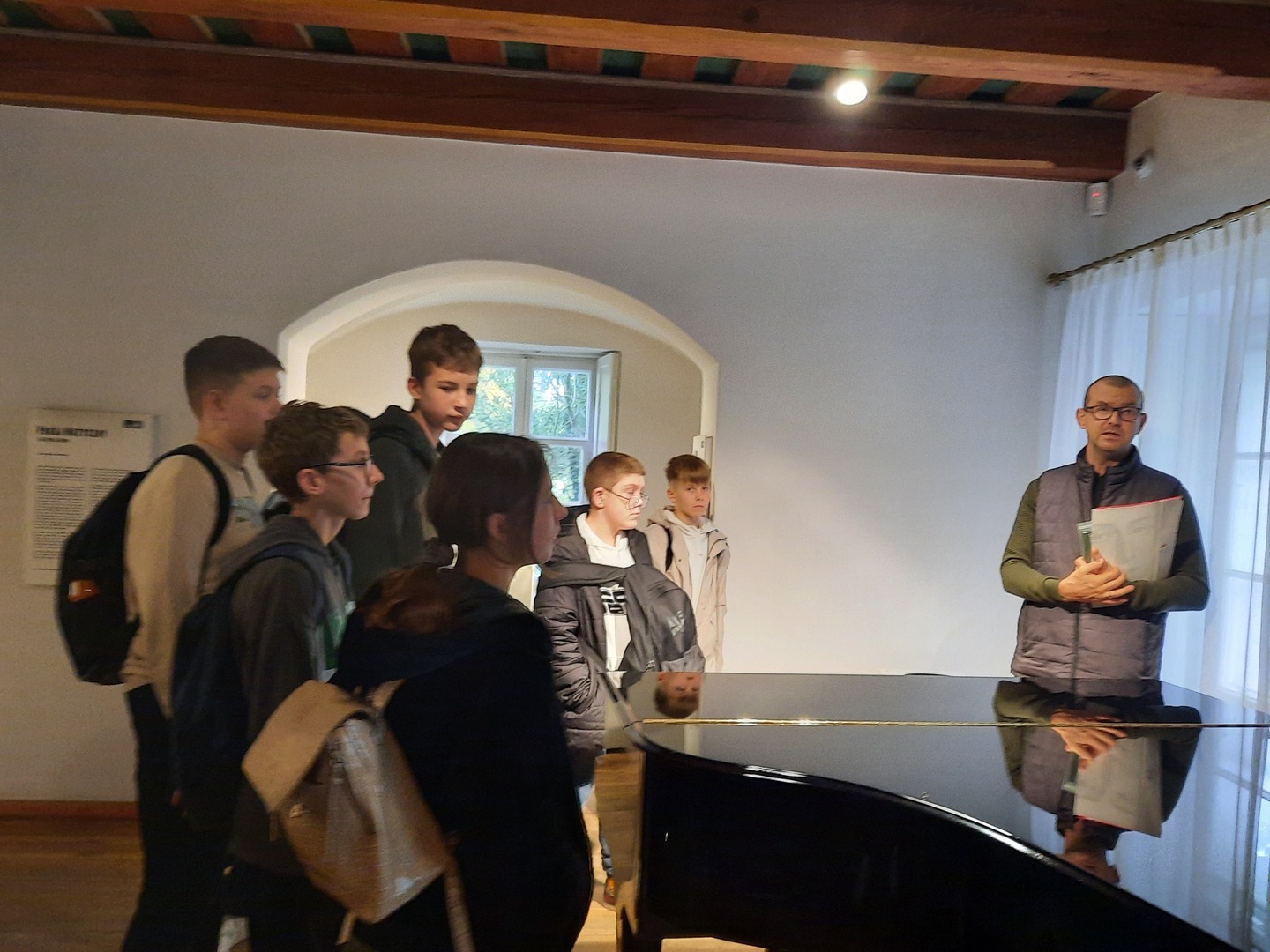 Kolejnym punktem programu wycieczki była Żelazowa Wola. Tam znajduje się Dom Urodzenia Fryderyka Chopina, w którym dziś mieści się muzeum biograficzne przedstawiające życie i twórczość polskiego kompozytora. Uczniowie mieli okazję zwiedzić muzeum, po którym oprowadził ich przewodnik, a następnie w sali kinowej obejrzeć krótki film o Chopinie. Na koniec uczniowie wzięli udział w grze terenowej, podczas której rozwiązywali zagadki związane z kompozytorem, zamieszczone w specjalnie przygotowanej książeczce z mapą parku w Żelazowej Woli.