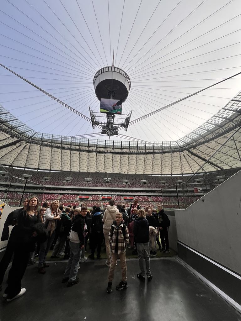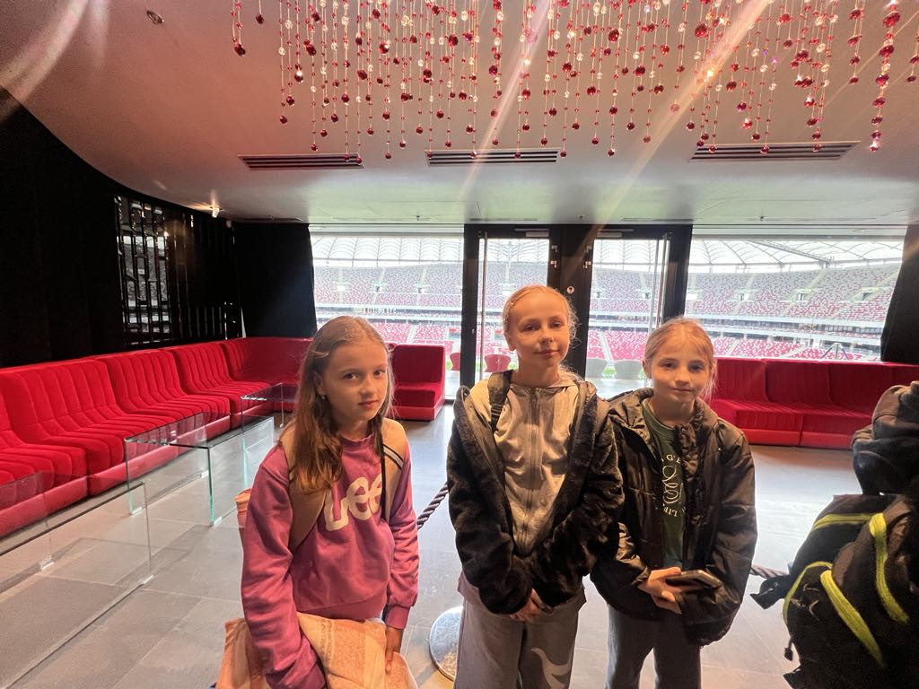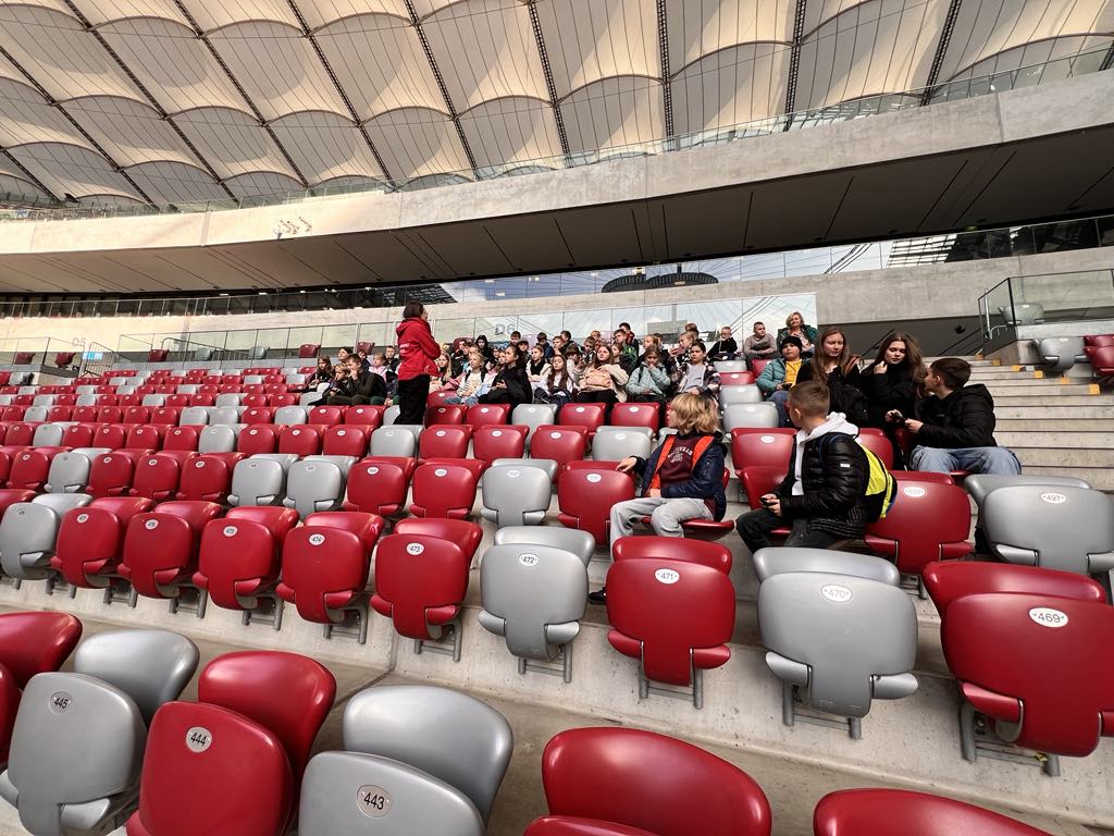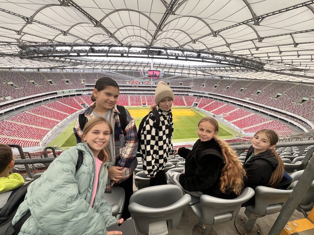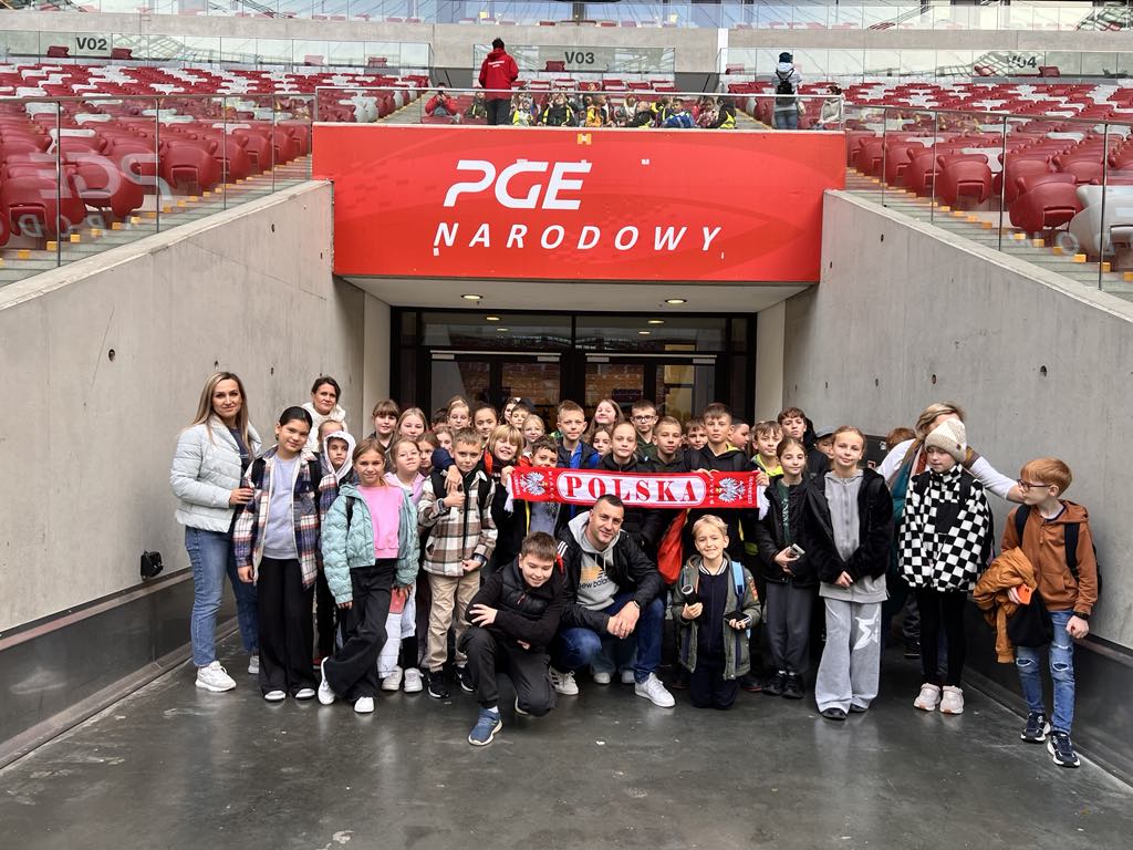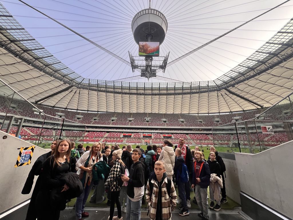 Pierwszym punktem programu był Stadion Narodowy, gdzie przewodnicy oprowadzili grupę po wnętrzu tej imponującej areny sportowej. Dzieci miały okazję zobaczyć miejsca na co dzień niedostępne, takie jak szatnie piłkarskie, loże VIP czy ławki rezerwowych. Zwiedzanie stadionu wzbudziło wiele emocji, zwłaszcza wśród młodych fanów piłki nożnej, którzy mogli poczuć się jak prawdziwi sportowcy.