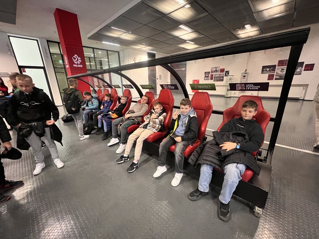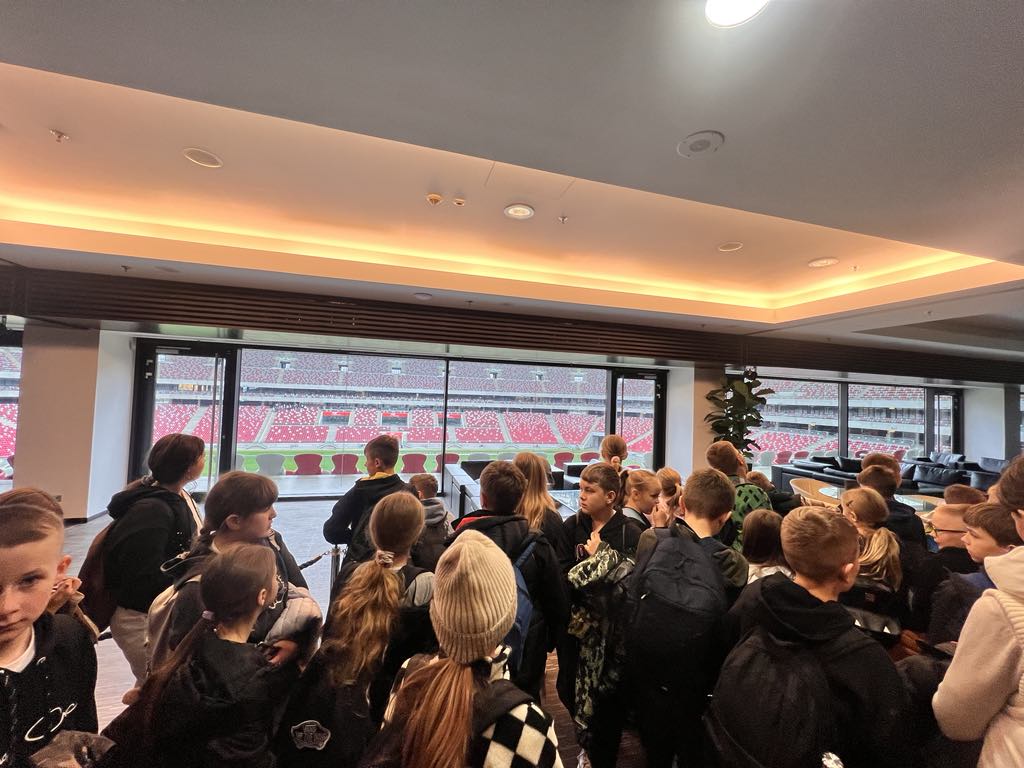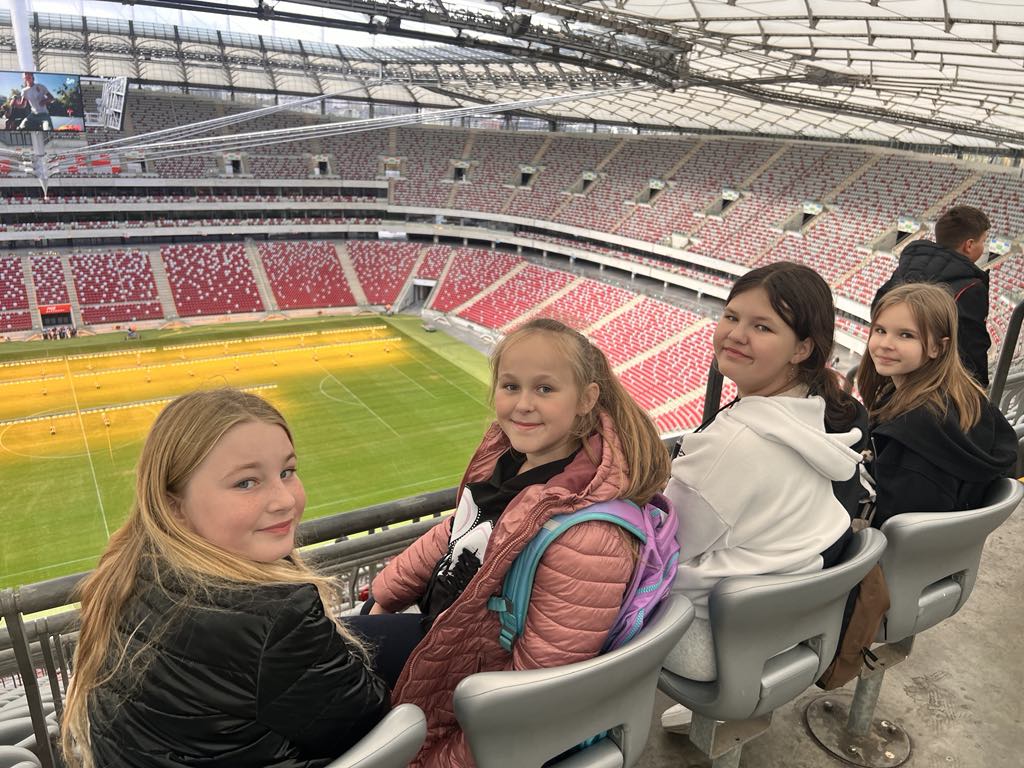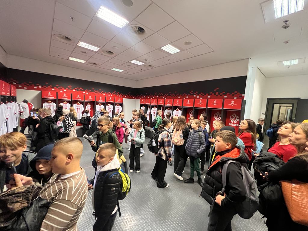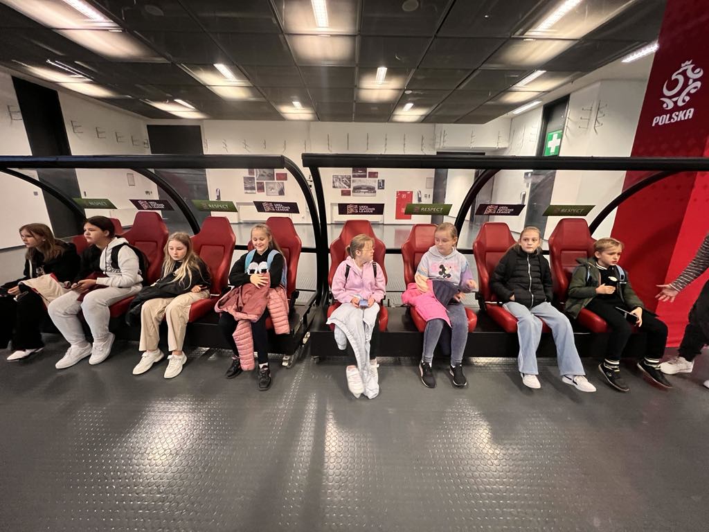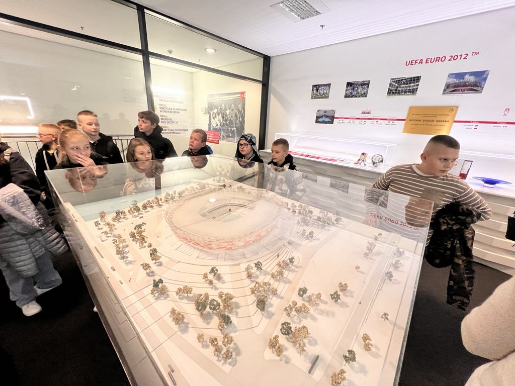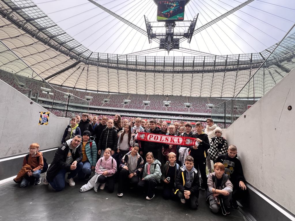 Pierwszym punktem programu był Stadion Narodowy, gdzie przewodnicy oprowadzili grupę po wnętrzu tej imponującej areny sportowej. Dzieci miały okazję zobaczyć miejsca na co dzień niedostępne, takie jak szatnie piłkarskie, loże VIP czy ławki rezerwowych. Zwiedzanie stadionu wzbudziło wiele emocji, zwłaszcza wśród młodych fanów piłki nożnej, którzy mogli poczuć się jak prawdziwi sportowcy.
