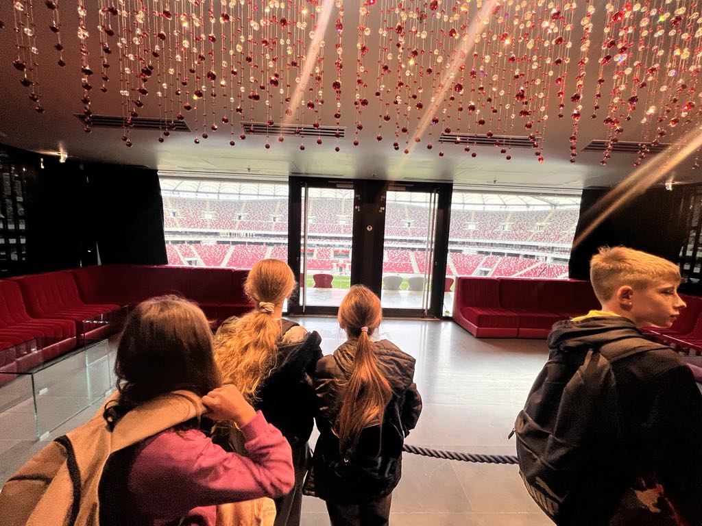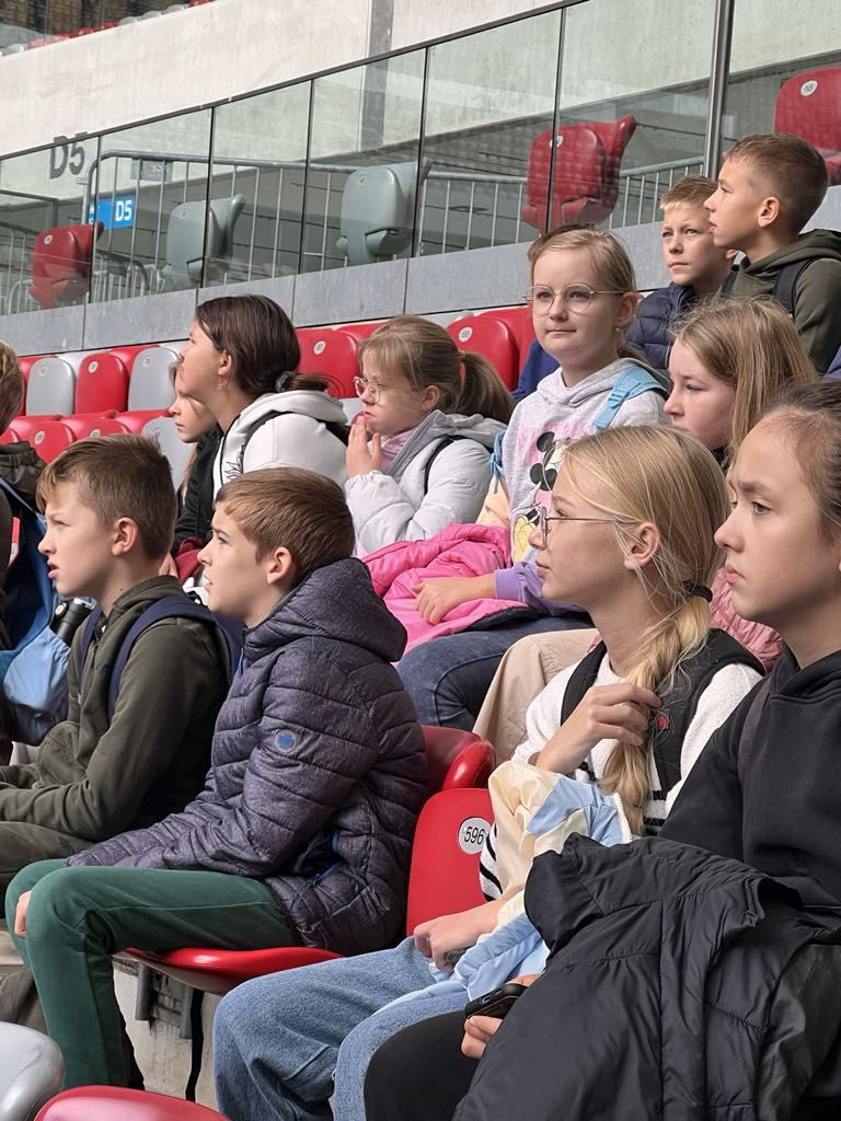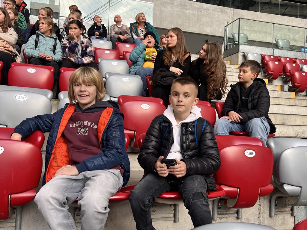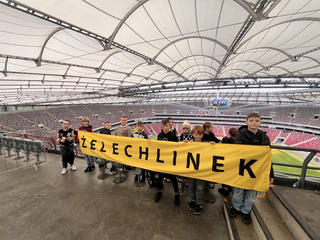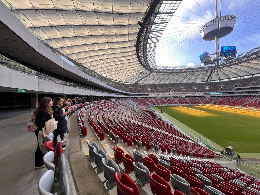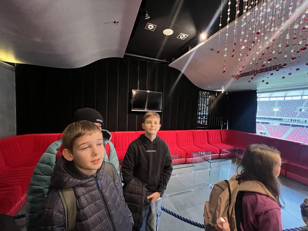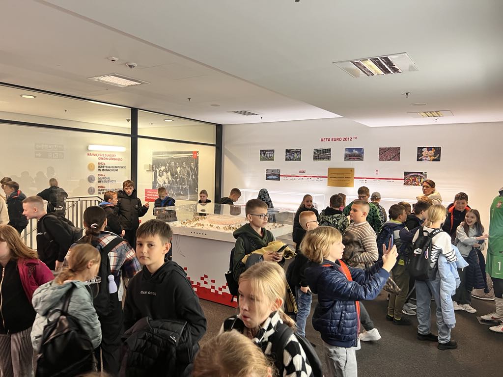 Pierwszym punktem programu był Stadion Narodowy, gdzie przewodnicy oprowadzili grupę po wnętrzu tej imponującej areny sportowej. Dzieci miały okazję zobaczyć miejsca na co dzień niedostępne, takie jak szatnie piłkarskie, loże VIP czy ławki rezerwowych. Zwiedzanie stadionu wzbudziło wiele emocji, zwłaszcza wśród młodych fanów piłki nożnej, którzy mogli poczuć się jak prawdziwi sportowcy.