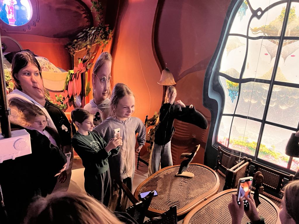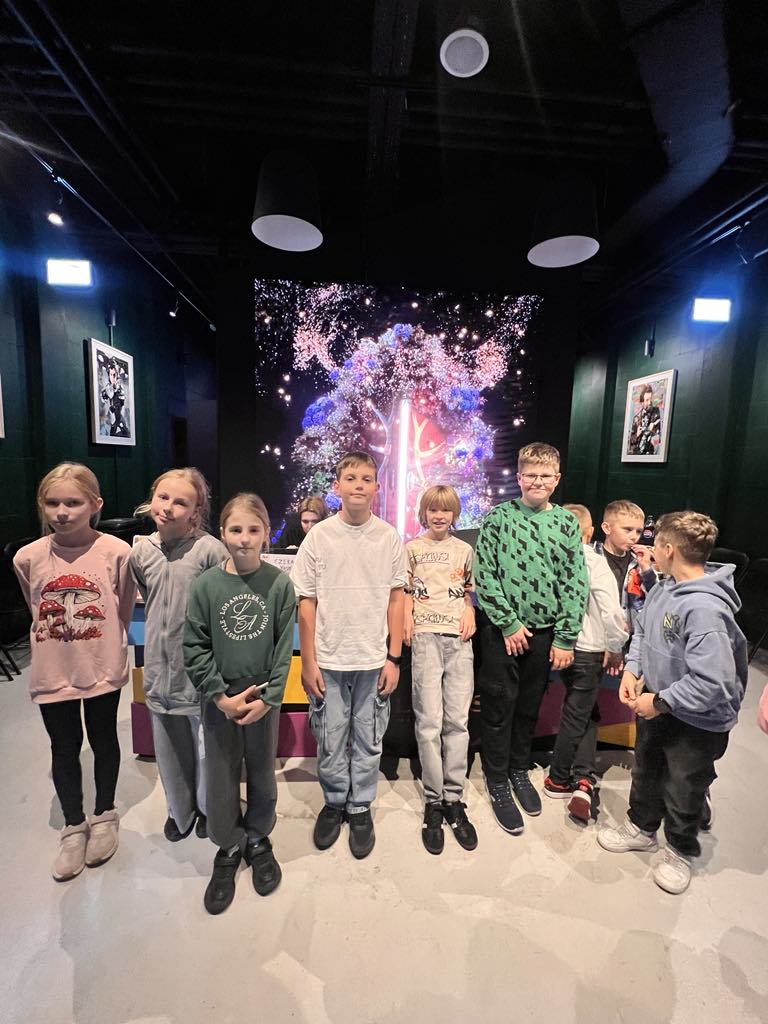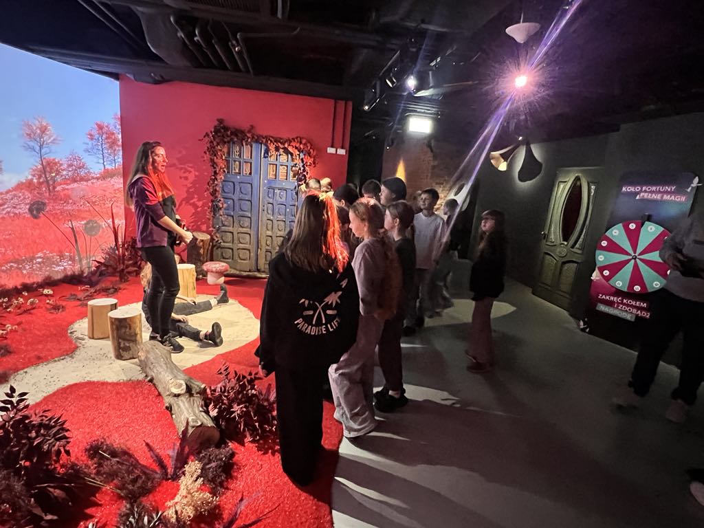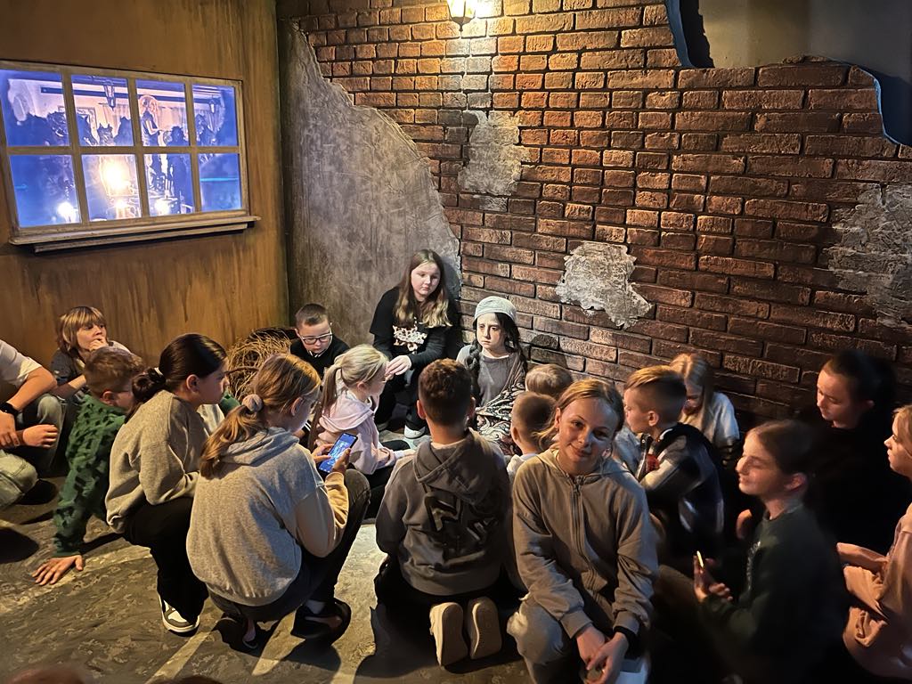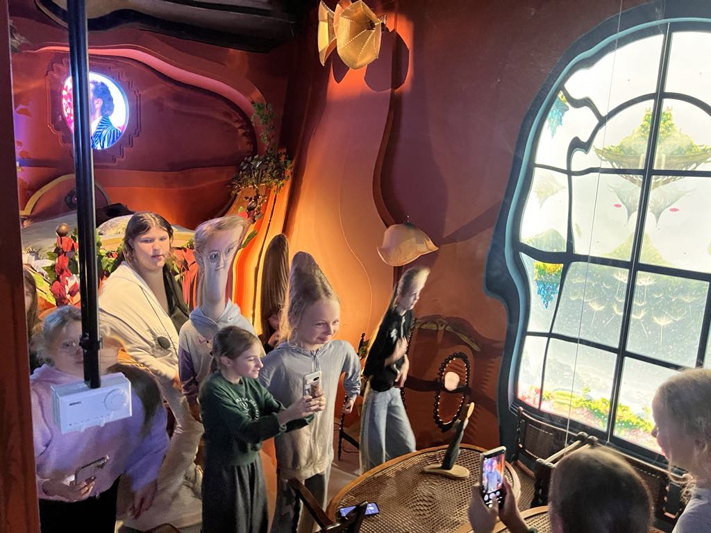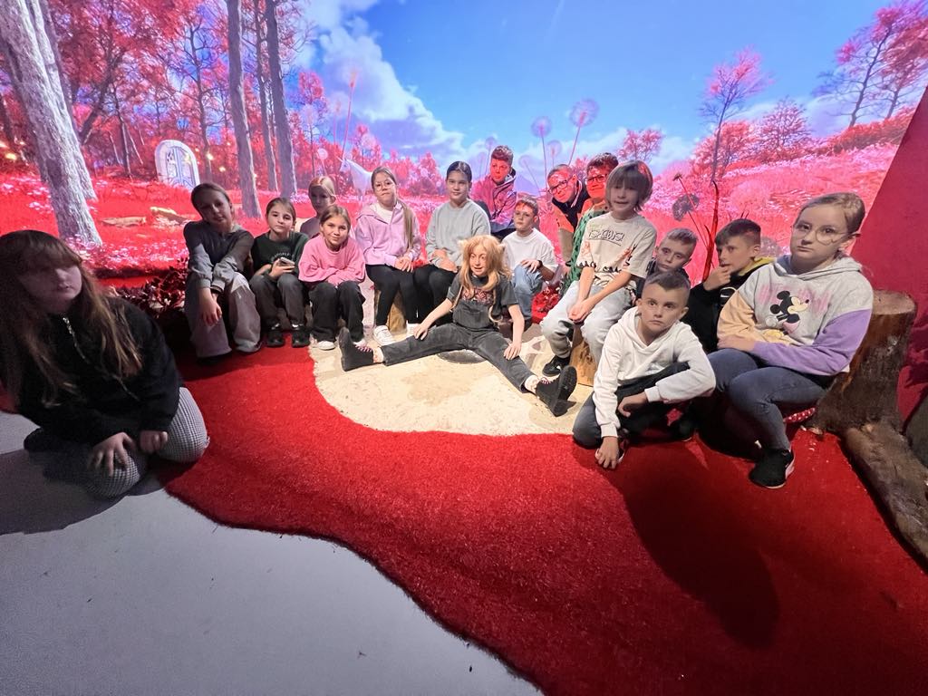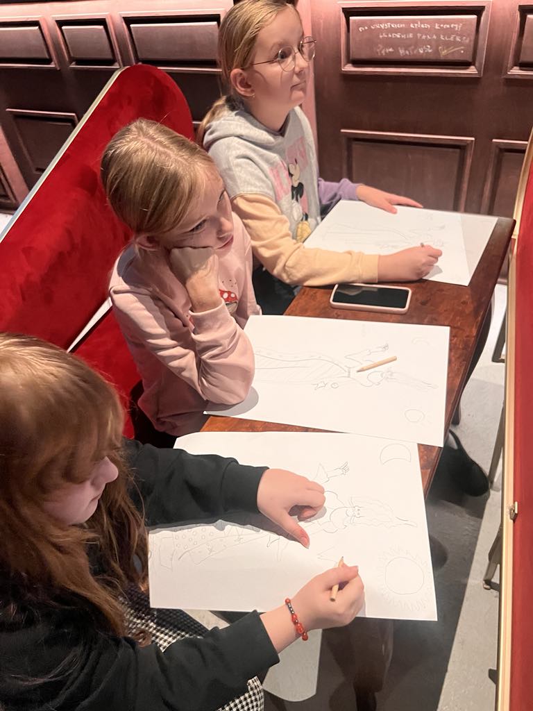 Następnie udaliśmy się do Centrum Filmowego na wystawę interaktywną "Kleks. Magia Kina". Ta część wycieczki szczególnie zachwyciła młodych uczestników, którzy mogli na własnej skórze poczuć magię kina i filmowych efektów specjalnych. Dzieci bawiły się w wiernie odtworzonych salach Akademii Pana Kleksa, uczestniczyły w warsztatach i dowiedziały się, jak powstają sceny w kinie. Była to nie tylko świetna zabawa, ale również okazja do nauki o świecie filmu i technologii filmowej.