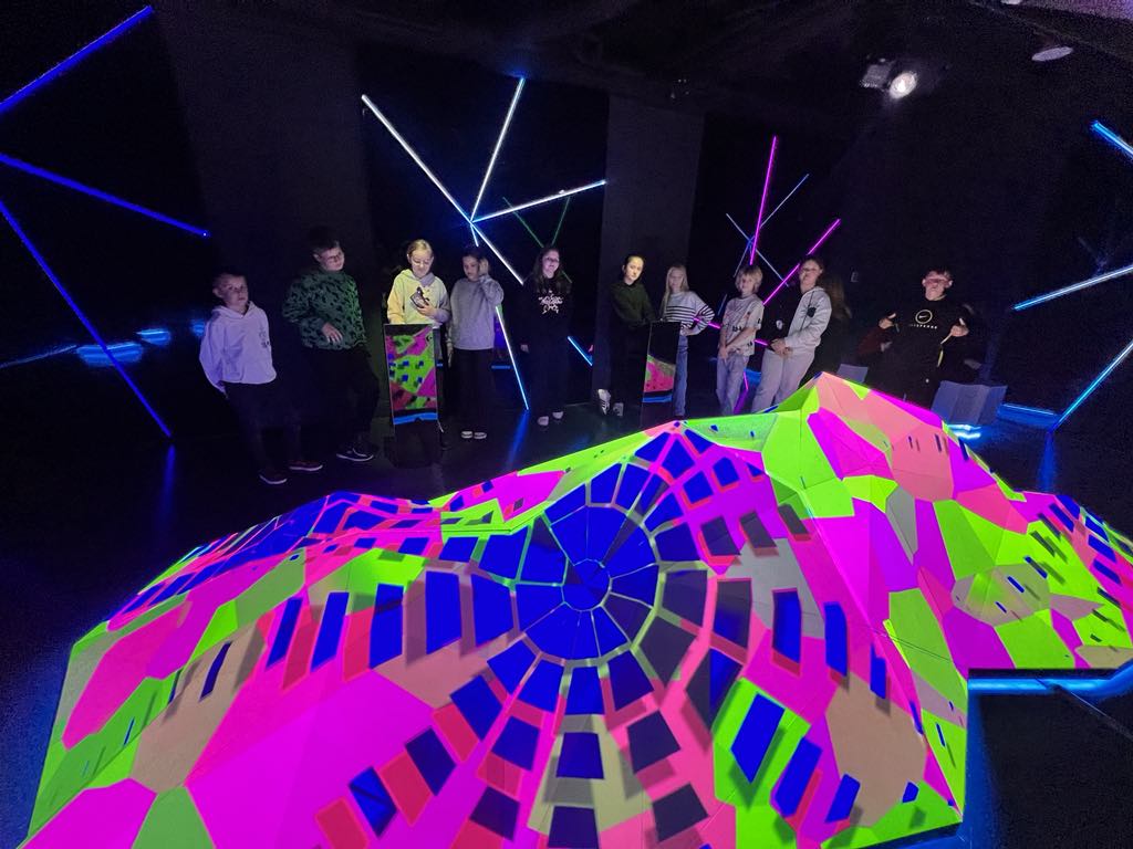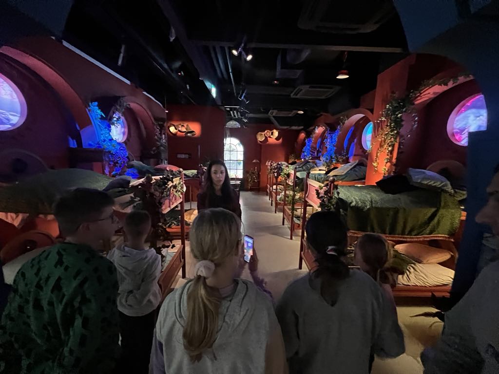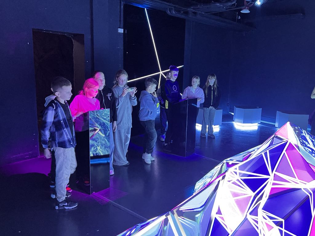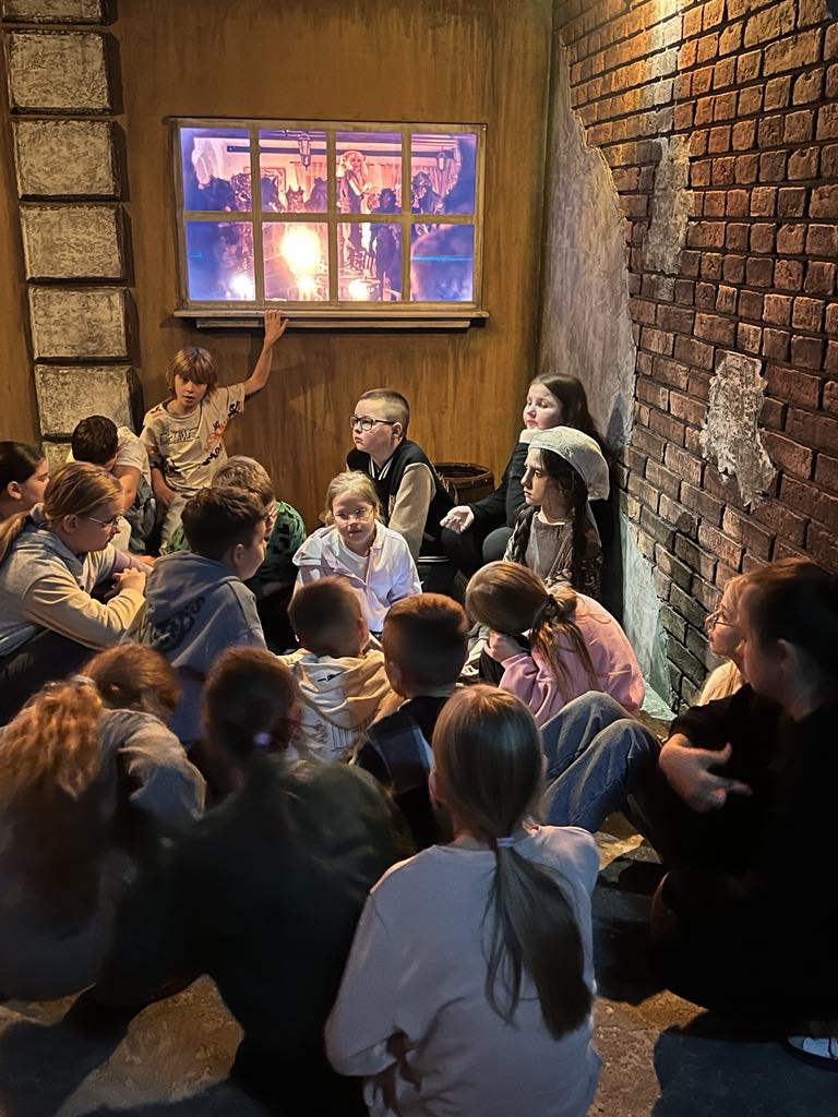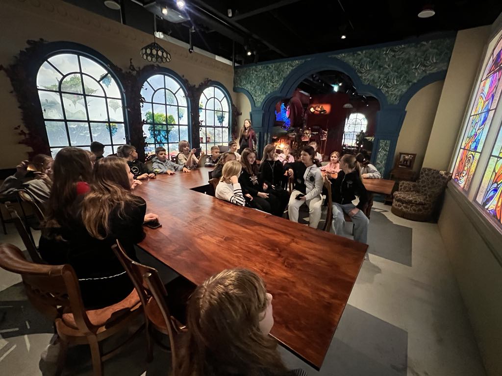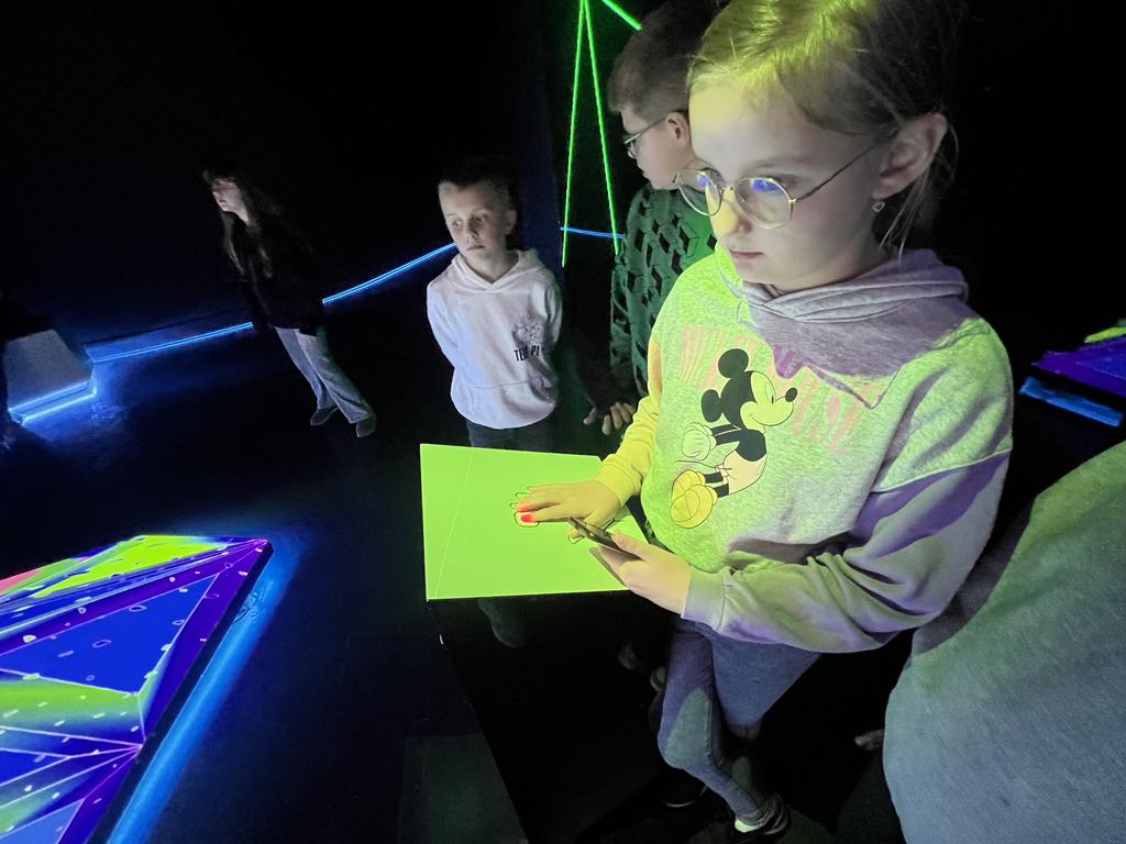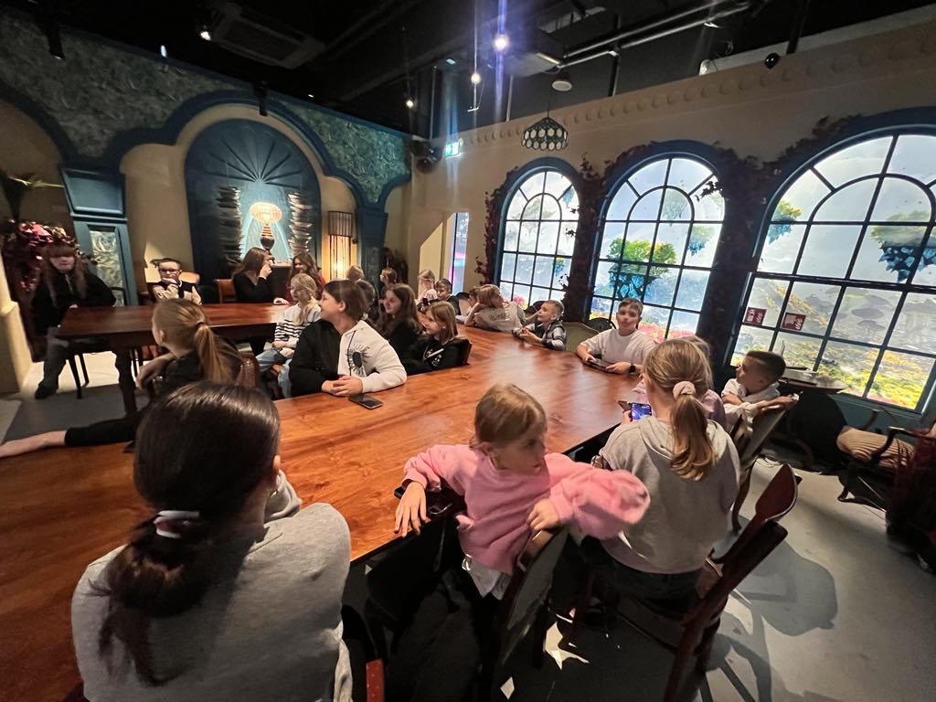 Następnie udaliśmy się do Centrum Filmowego na wystawę interaktywną "Kleks. Magia Kina". Ta część wycieczki szczególnie zachwyciła młodych uczestników, którzy mogli na własnej skórze poczuć magię kina i filmowych efektów specjalnych. Dzieci bawiły się w wiernie odtworzonych salach Akademii Pana Kleksa, uczestniczyły w warsztatach i dowiedziały się, jak powstają sceny w kinie. Była to nie tylko świetna zabawa, ale również okazja do nauki o świecie filmu i technologii filmowej.