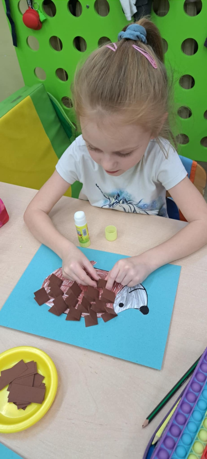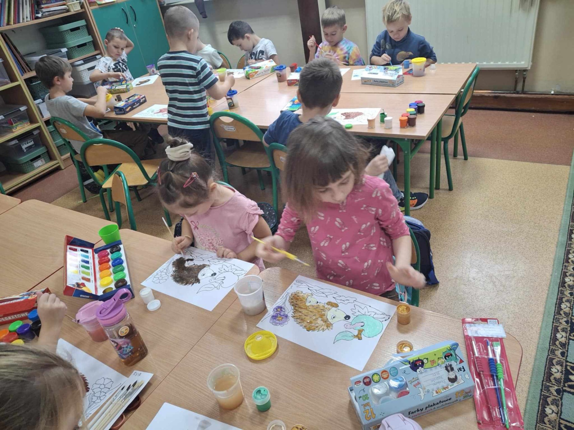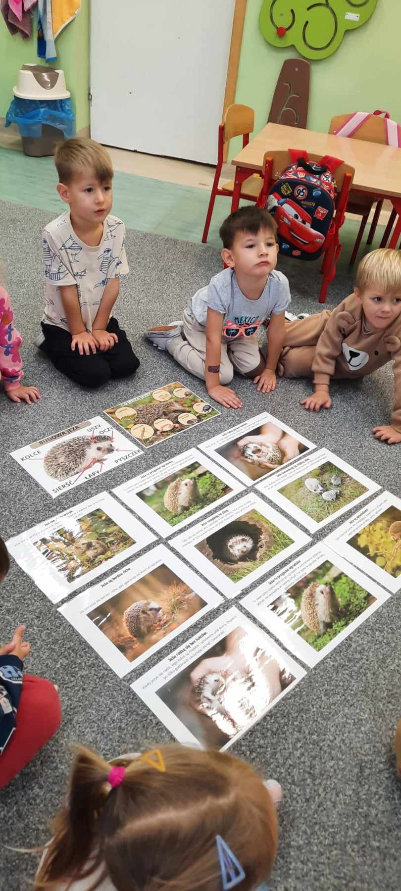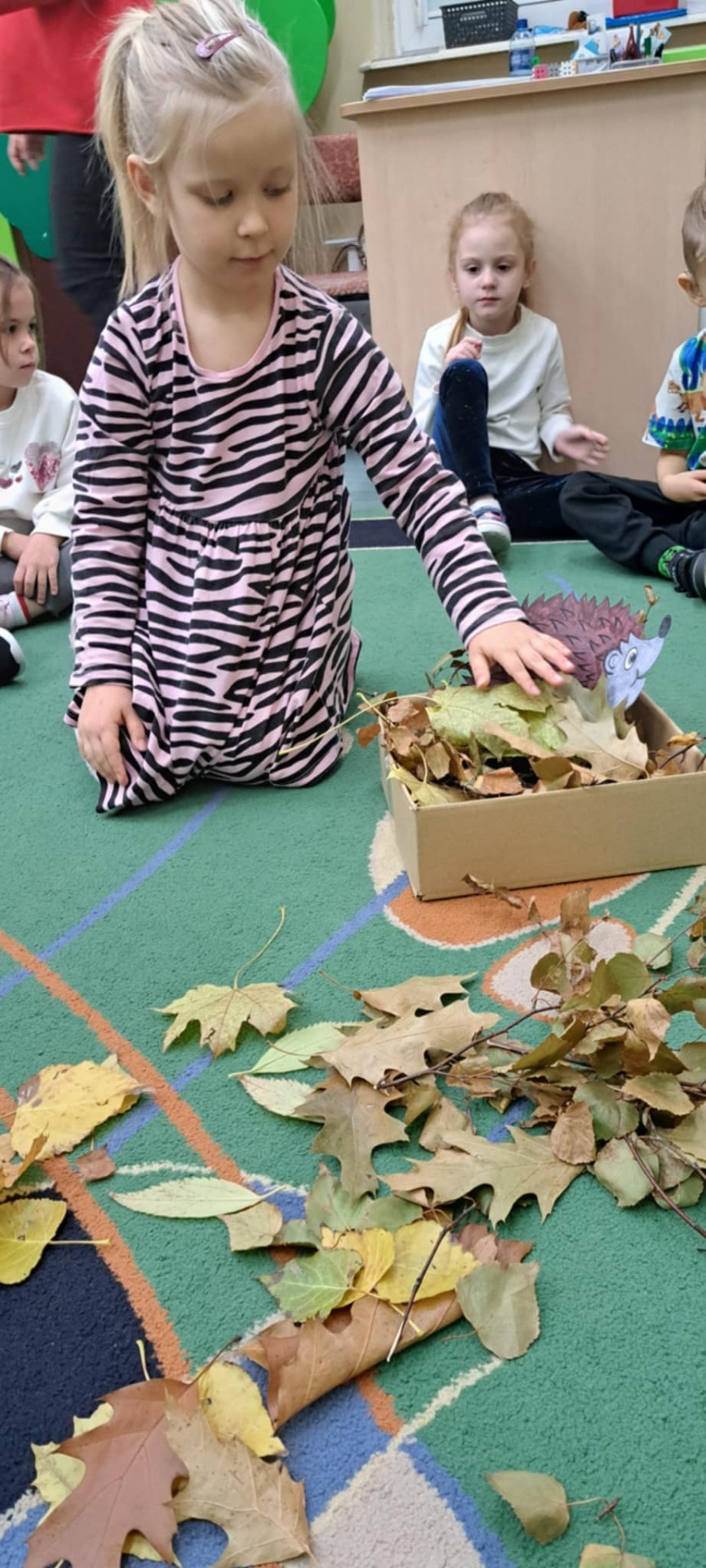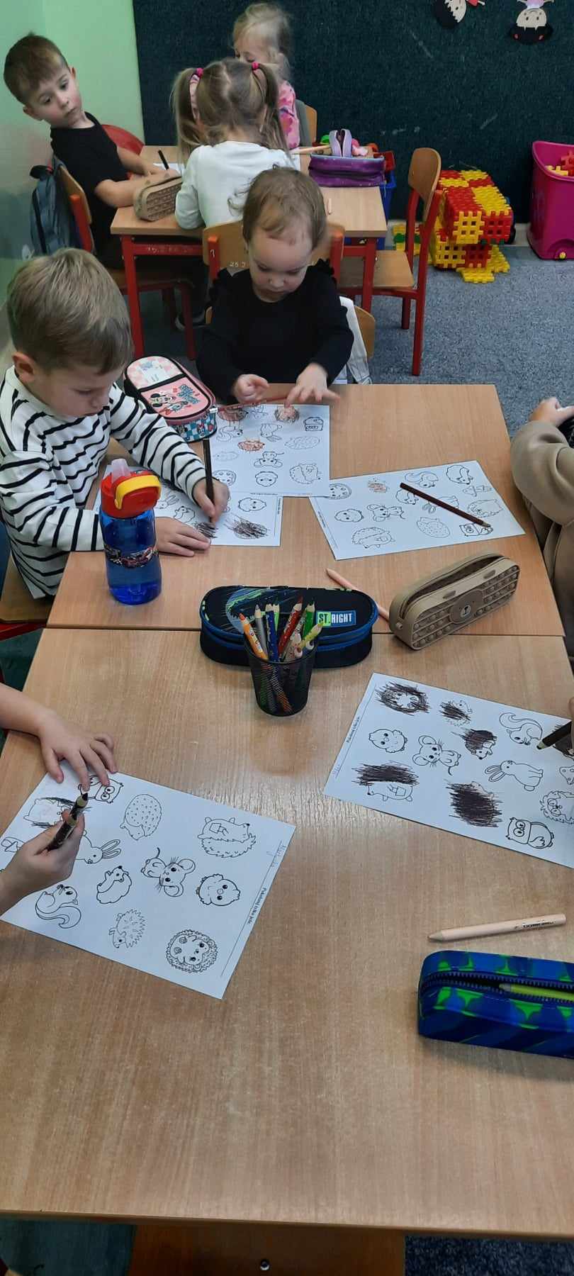 Tego dnia dzieci wysłuchały opowiadania o jeżach. Wzięły udział w pogadance na temat stylu życia jeży, budowie ich ciała oraz poznały ciekawostki z ich życia. Z radością wykonywały tematyczne prace plastyczne oraz doskonaliły umiejętność przeliczania. Świetnie bawiły się podczas zabaw muzyczno-ruchowych.