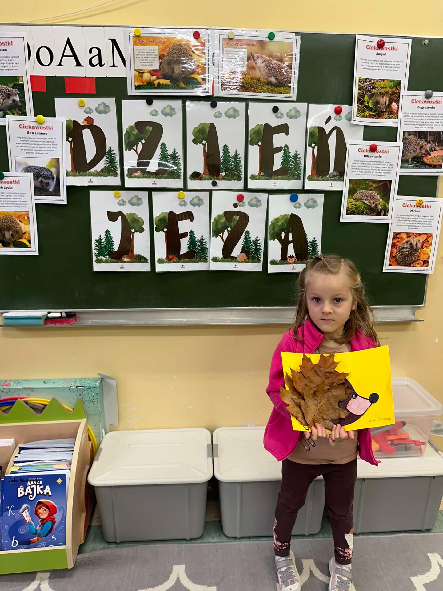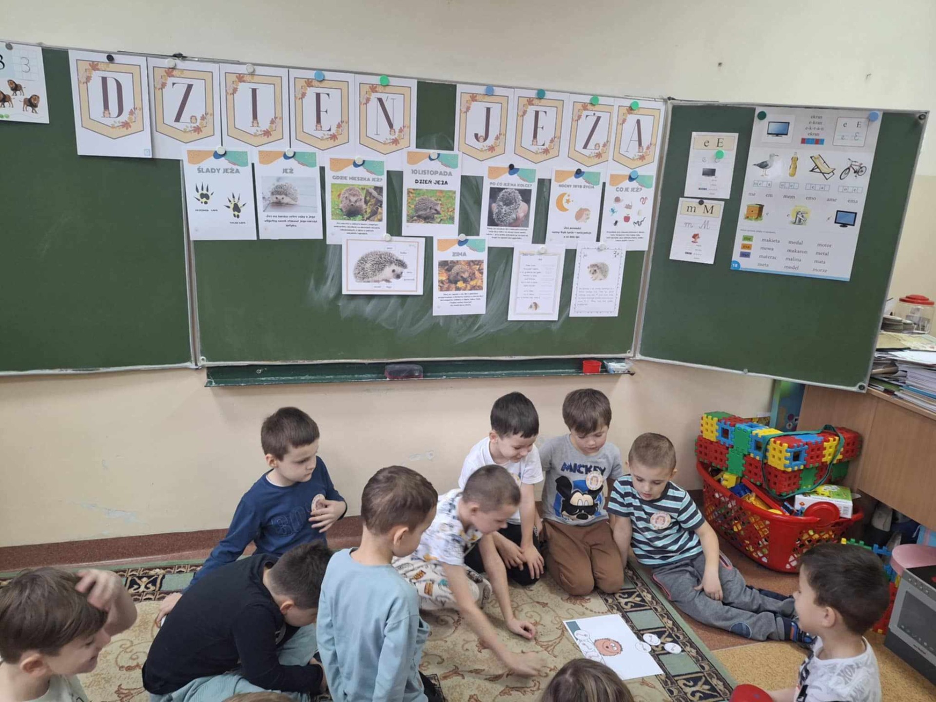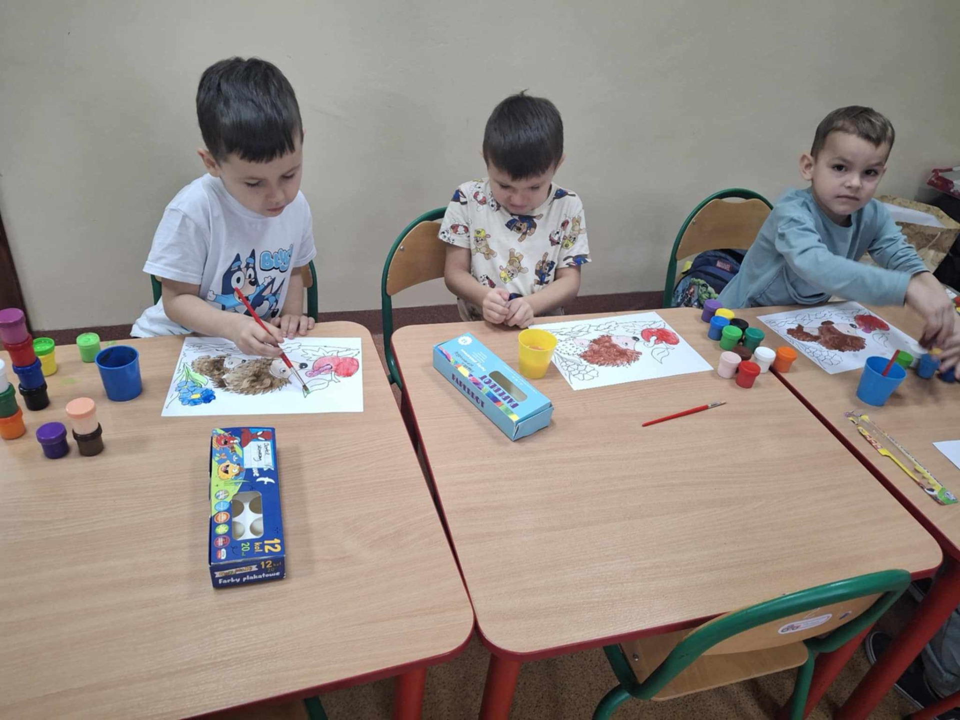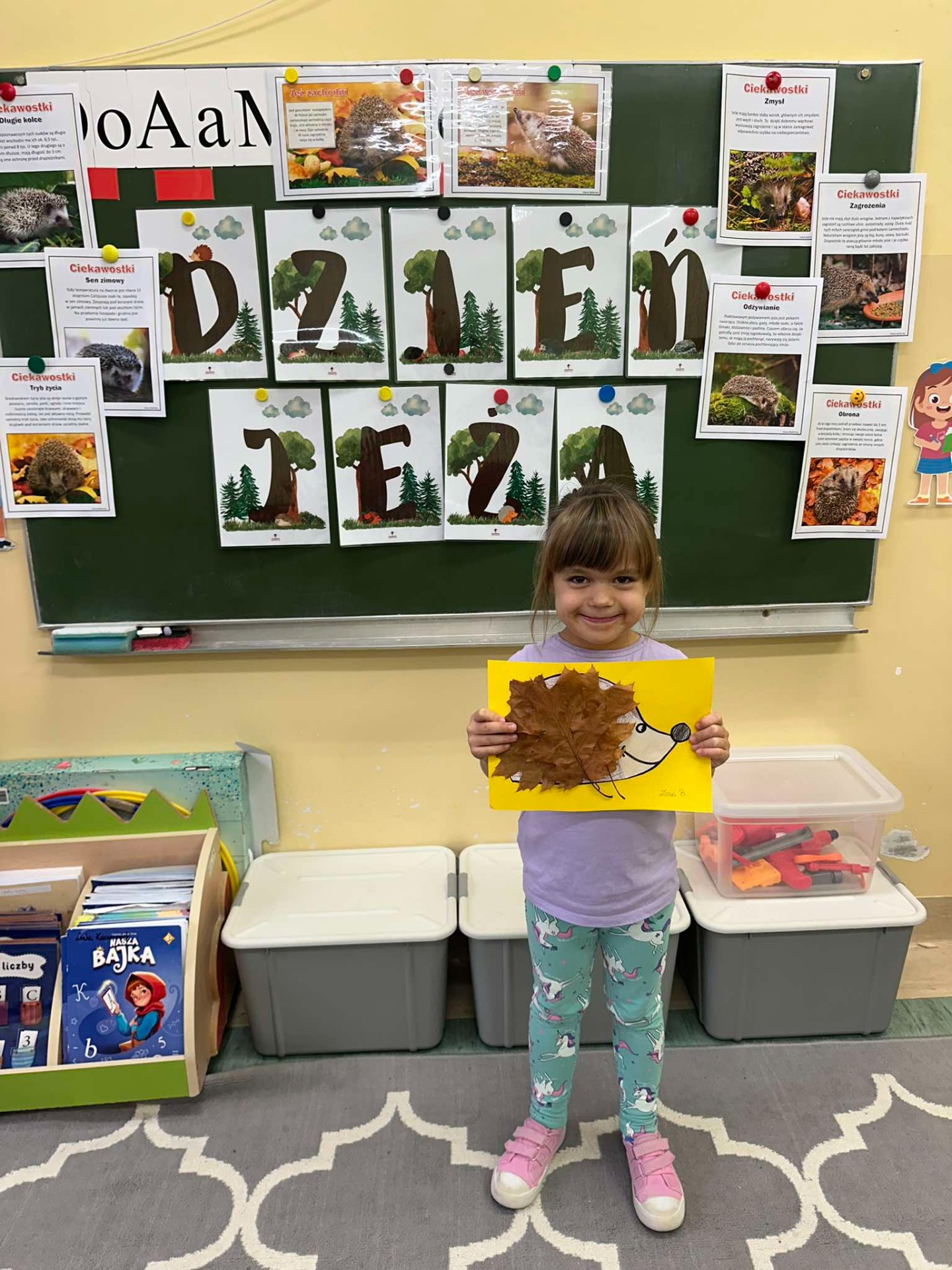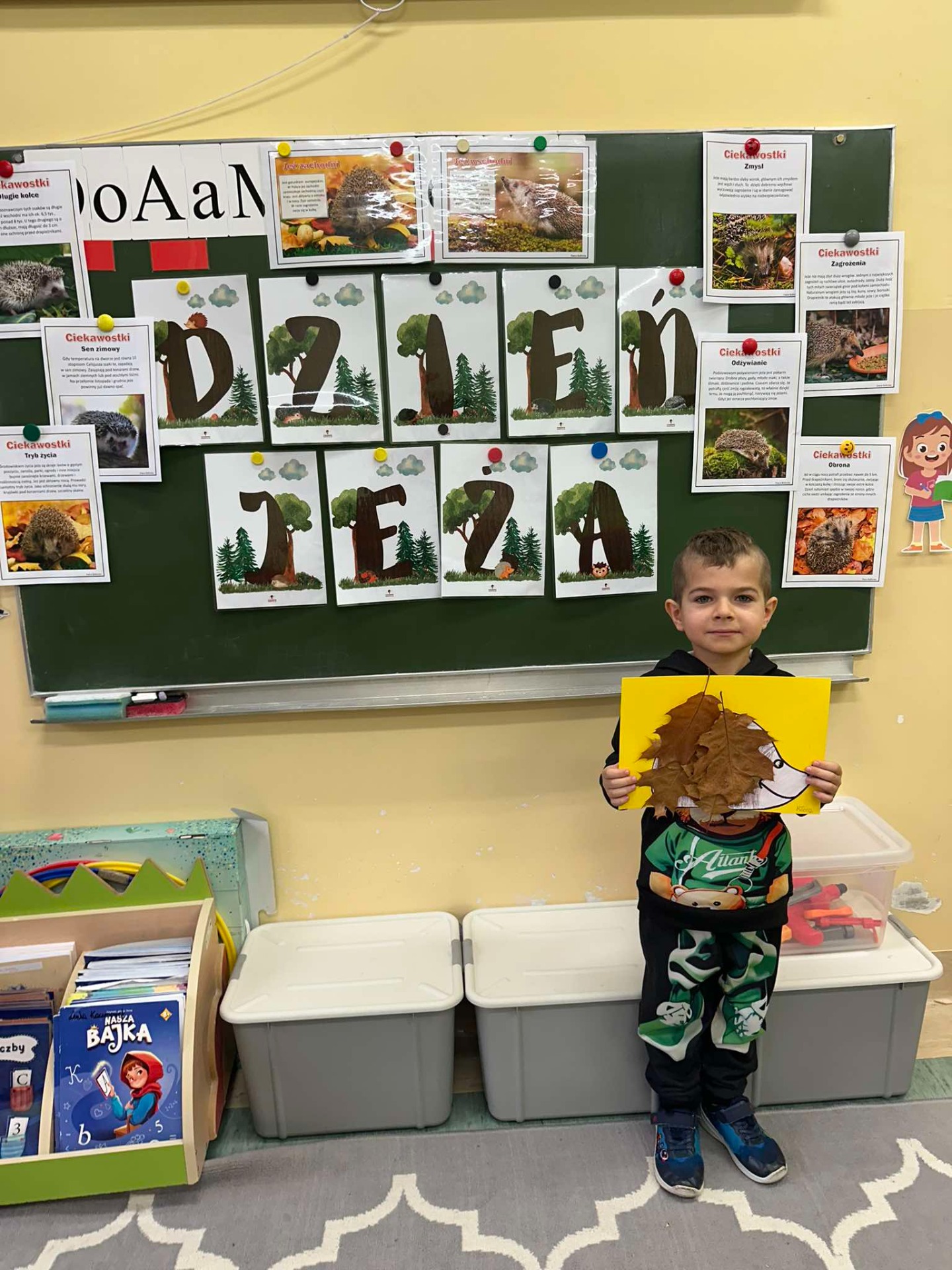 Tego dnia dzieci wysłuchały opowiadania o jeżach. Wzięły udział w pogadance na temat stylu życia jeży, budowie ich ciała oraz poznały ciekawostki z ich życia. Z radością wykonywały tematyczne prace plastyczne oraz doskonaliły umiejętność przeliczania. Świetnie bawiły się podczas zabaw muzyczno-ruchowych.