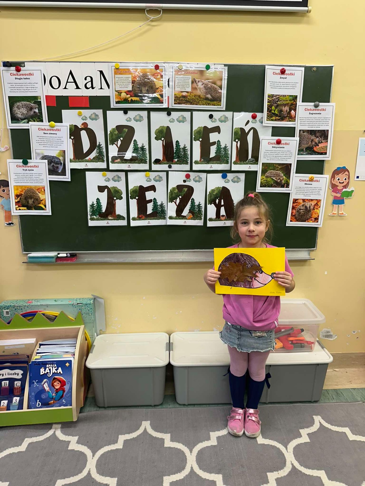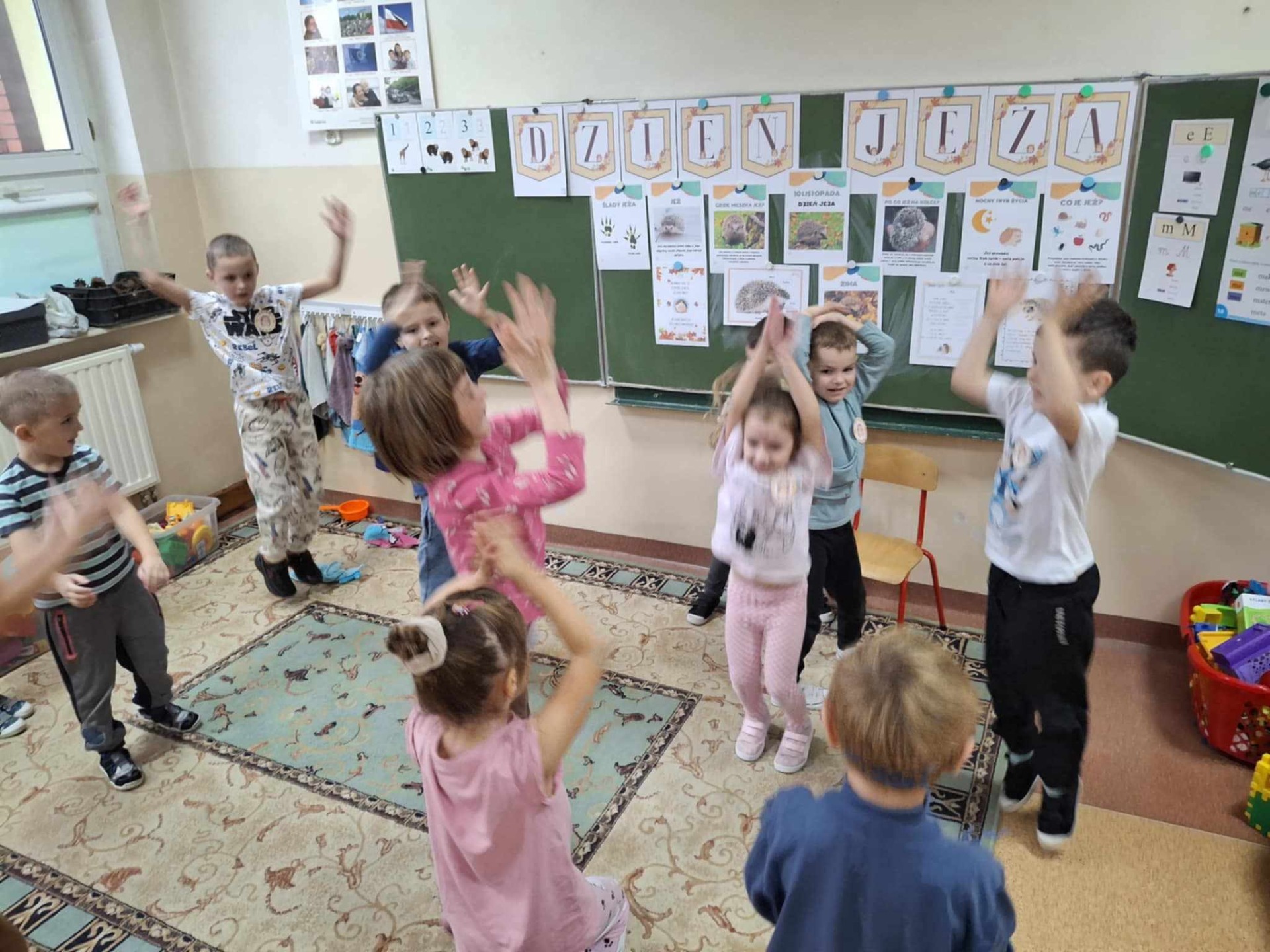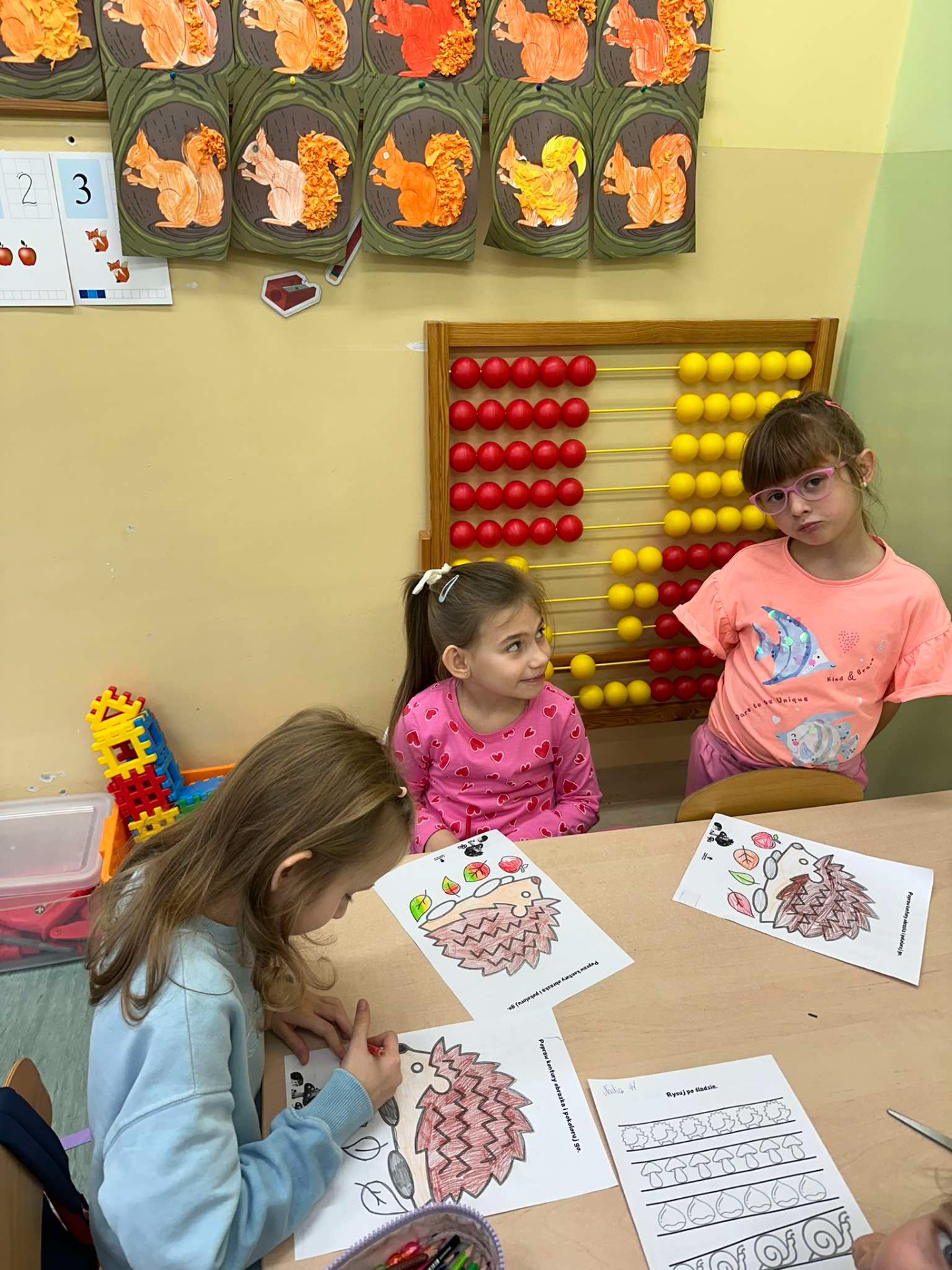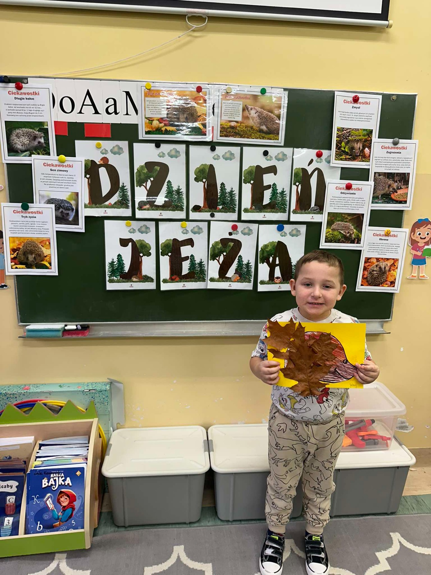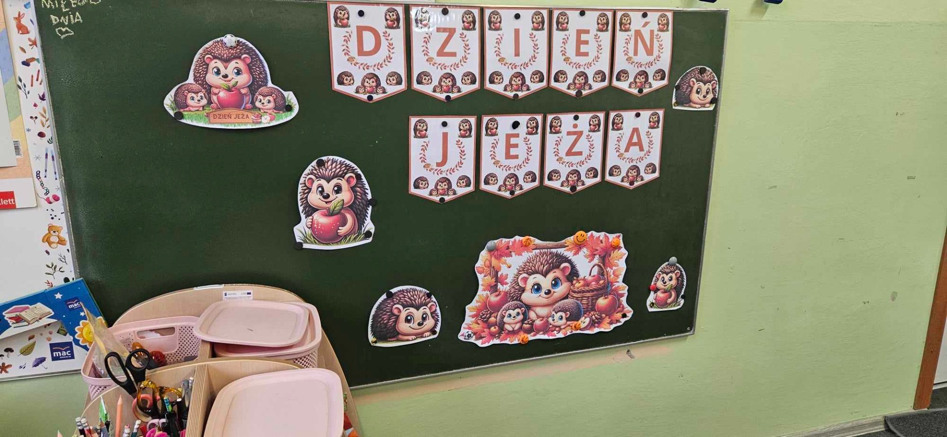 Tego dnia dzieci wysłuchały opowiadania o jeżach. Wzięły udział w pogadance na temat stylu życia jeży, budowie ich ciała oraz poznały ciekawostki z ich życia. Z radością wykonywały tematyczne prace plastyczne oraz doskonaliły umiejętność przeliczania. Świetnie bawiły się podczas zabaw muzyczno-ruchowych.