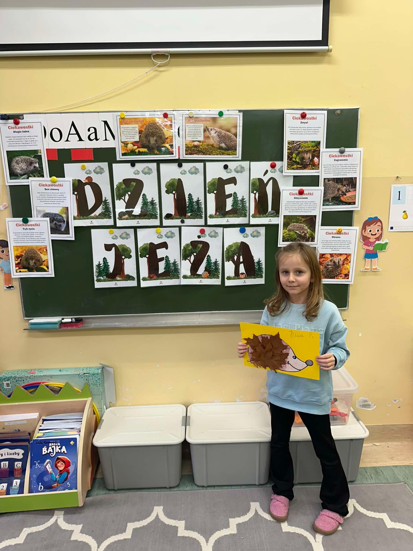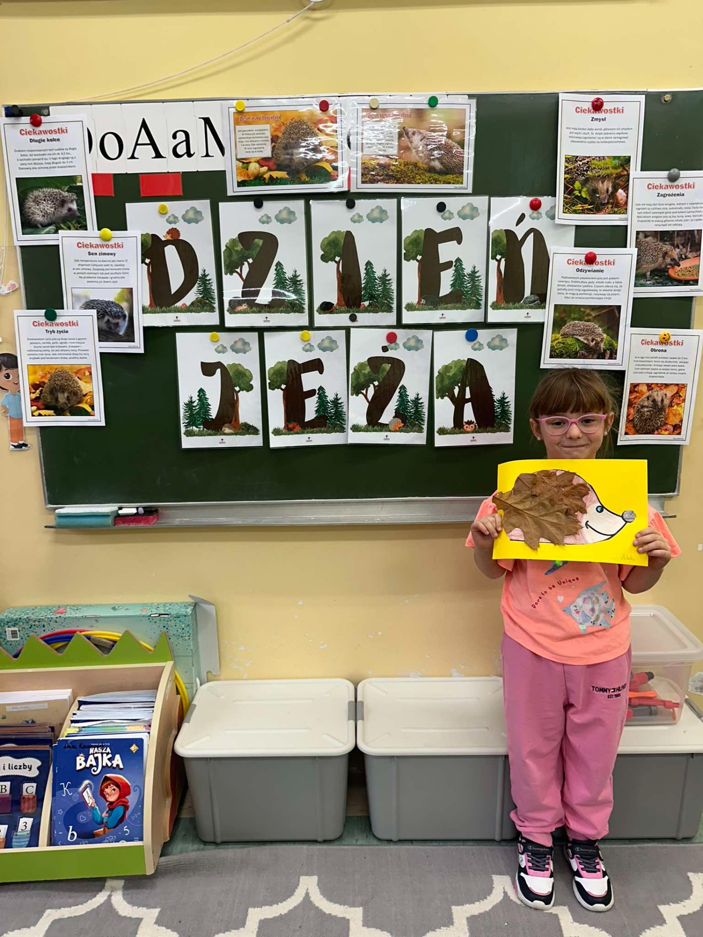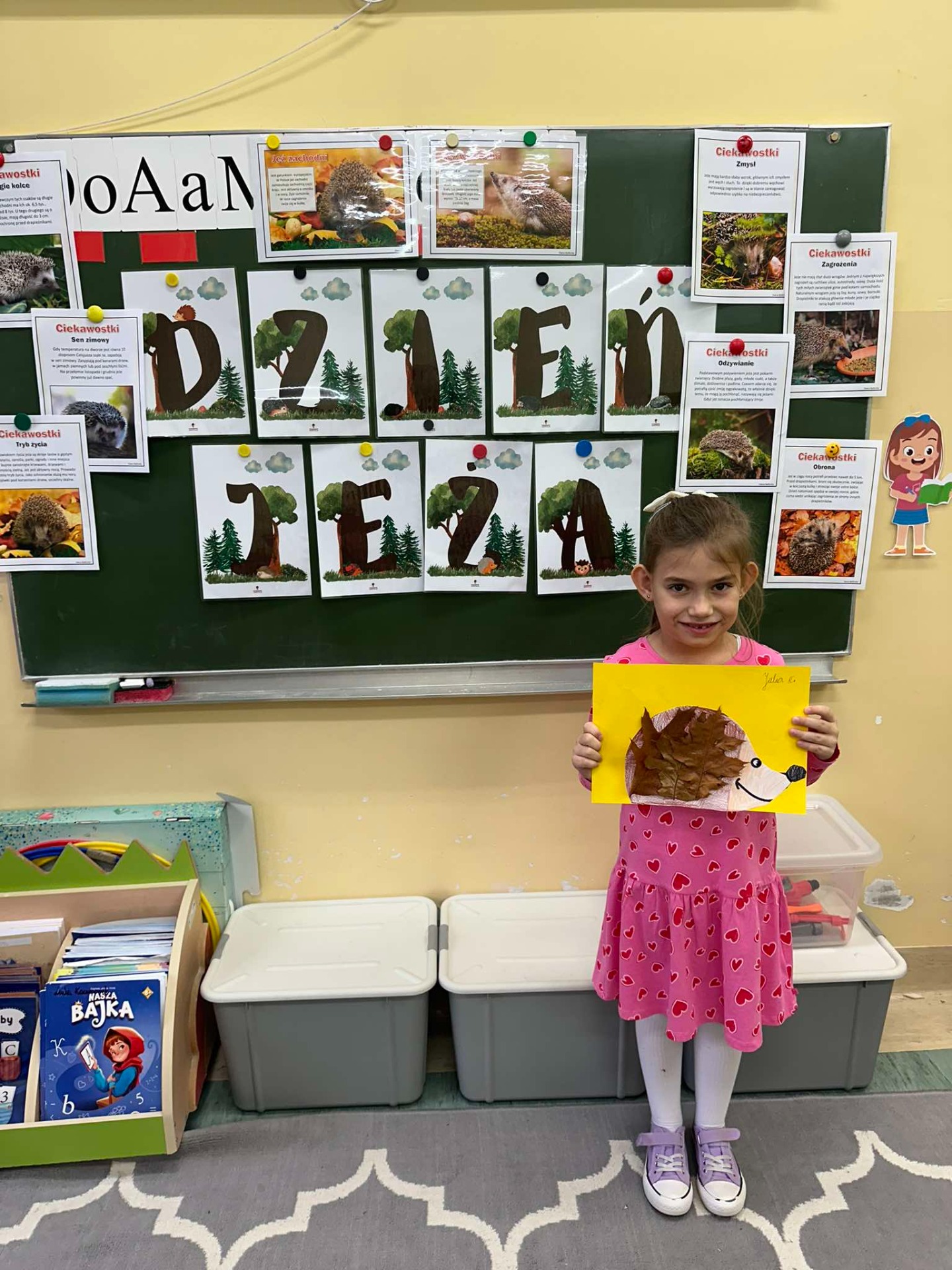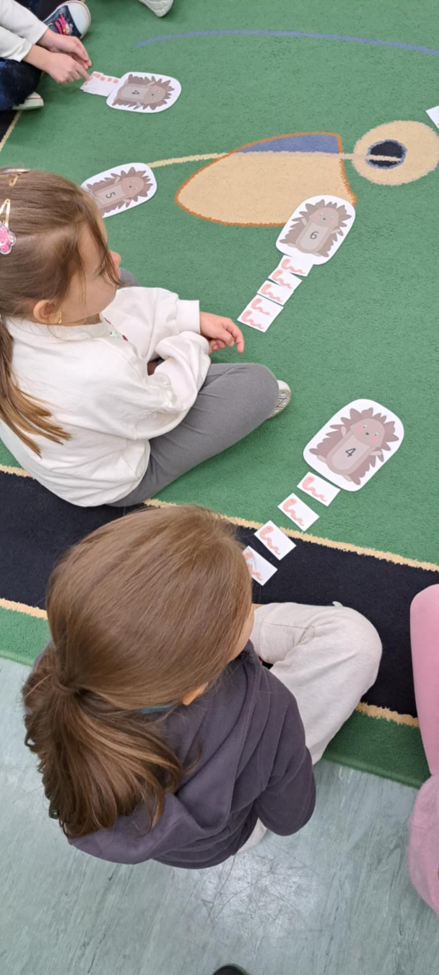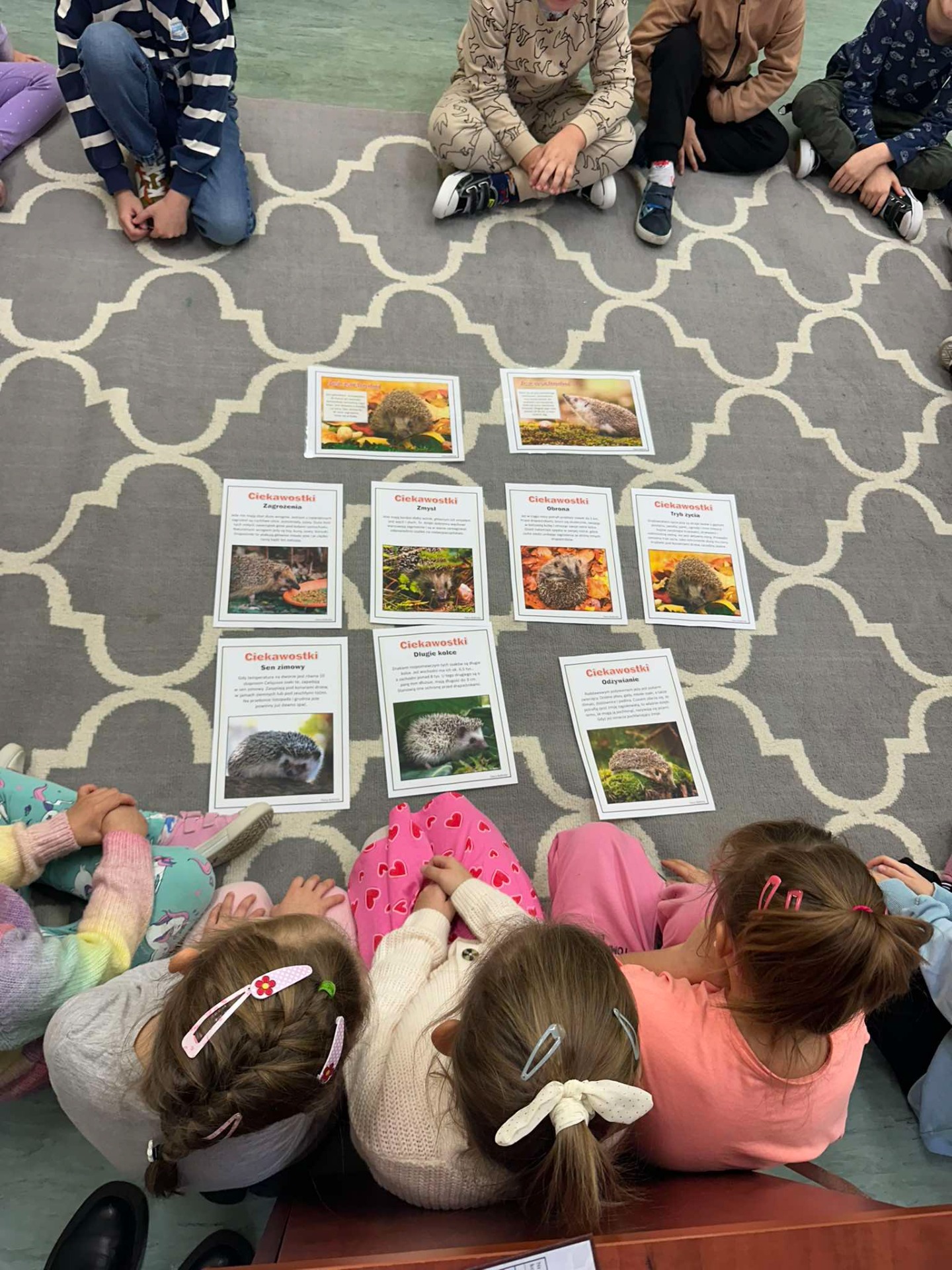 Tego dnia dzieci wysłuchały opowiadania o jeżach. Wzięły udział w pogadance na temat stylu życia jeży, budowie ich ciała oraz poznały ciekawostki z ich życia. Z radością wykonywały tematyczne prace plastyczne oraz doskonaliły umiejętność przeliczania. Świetnie bawiły się podczas zabaw muzyczno-ruchowych.