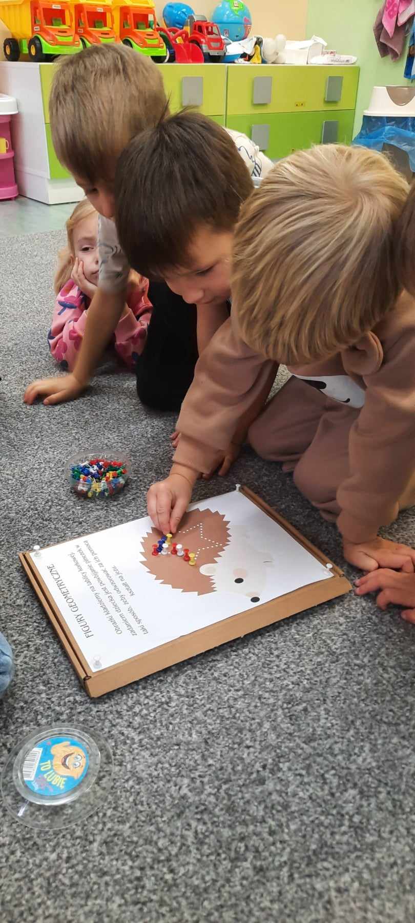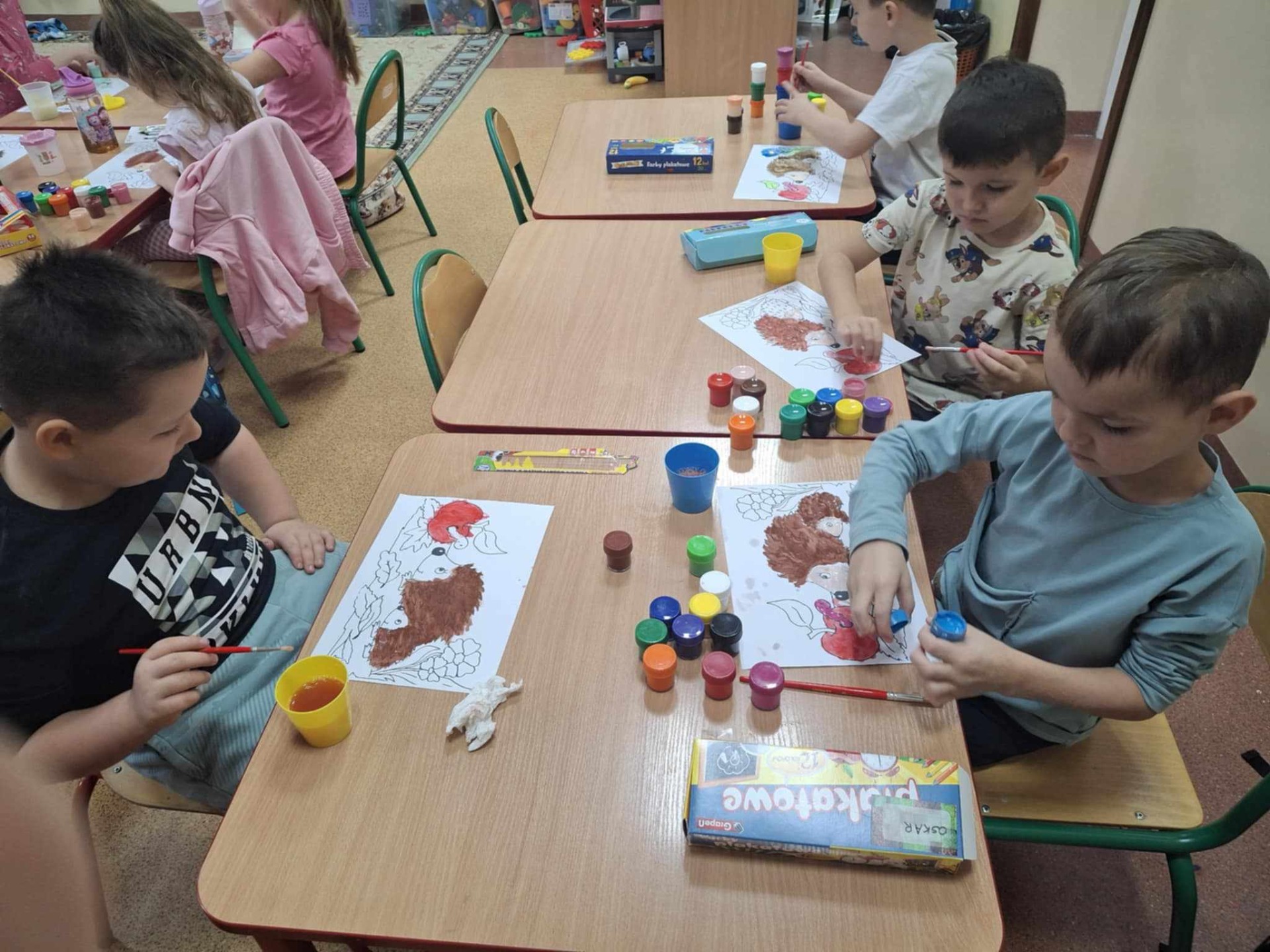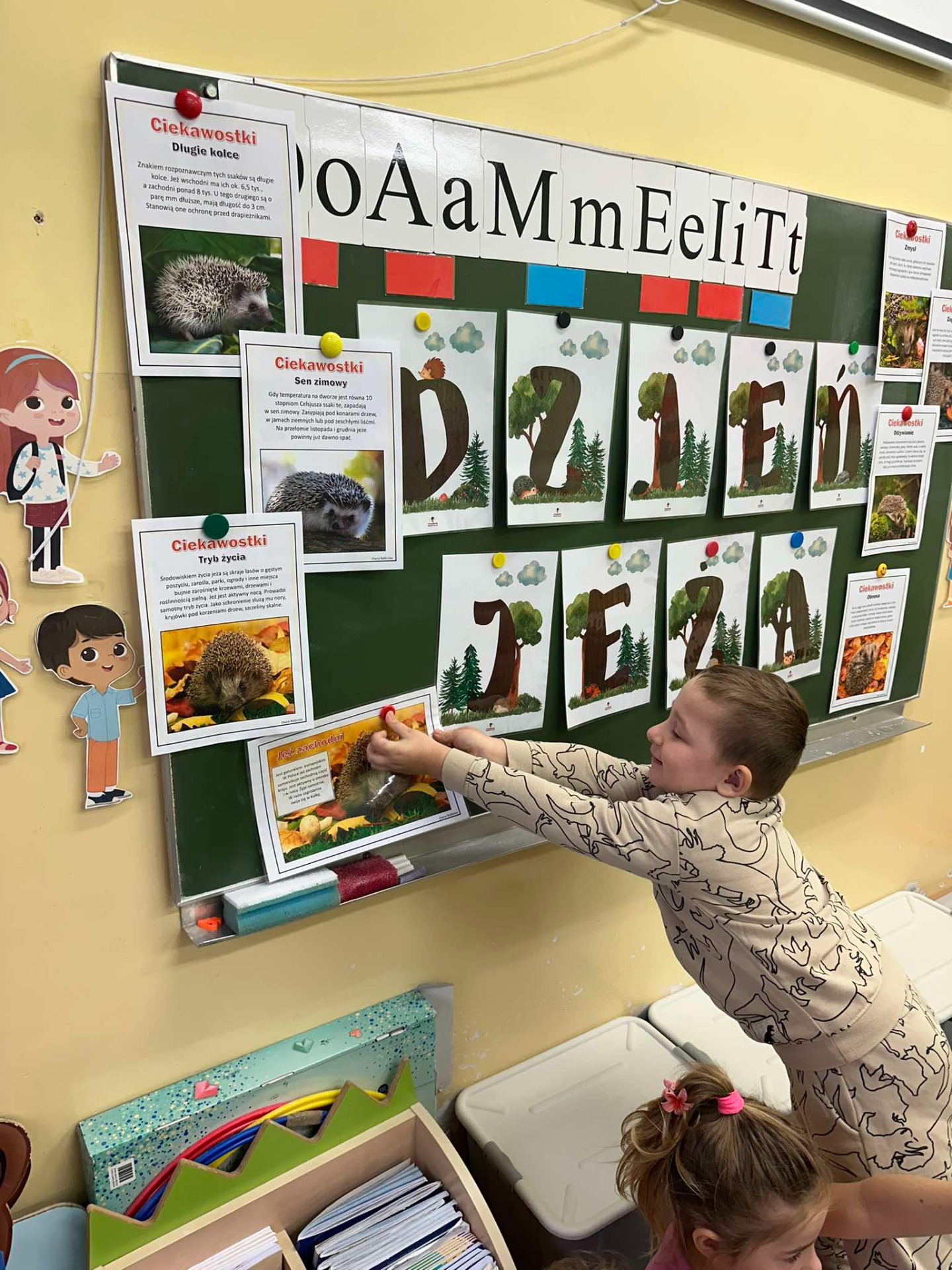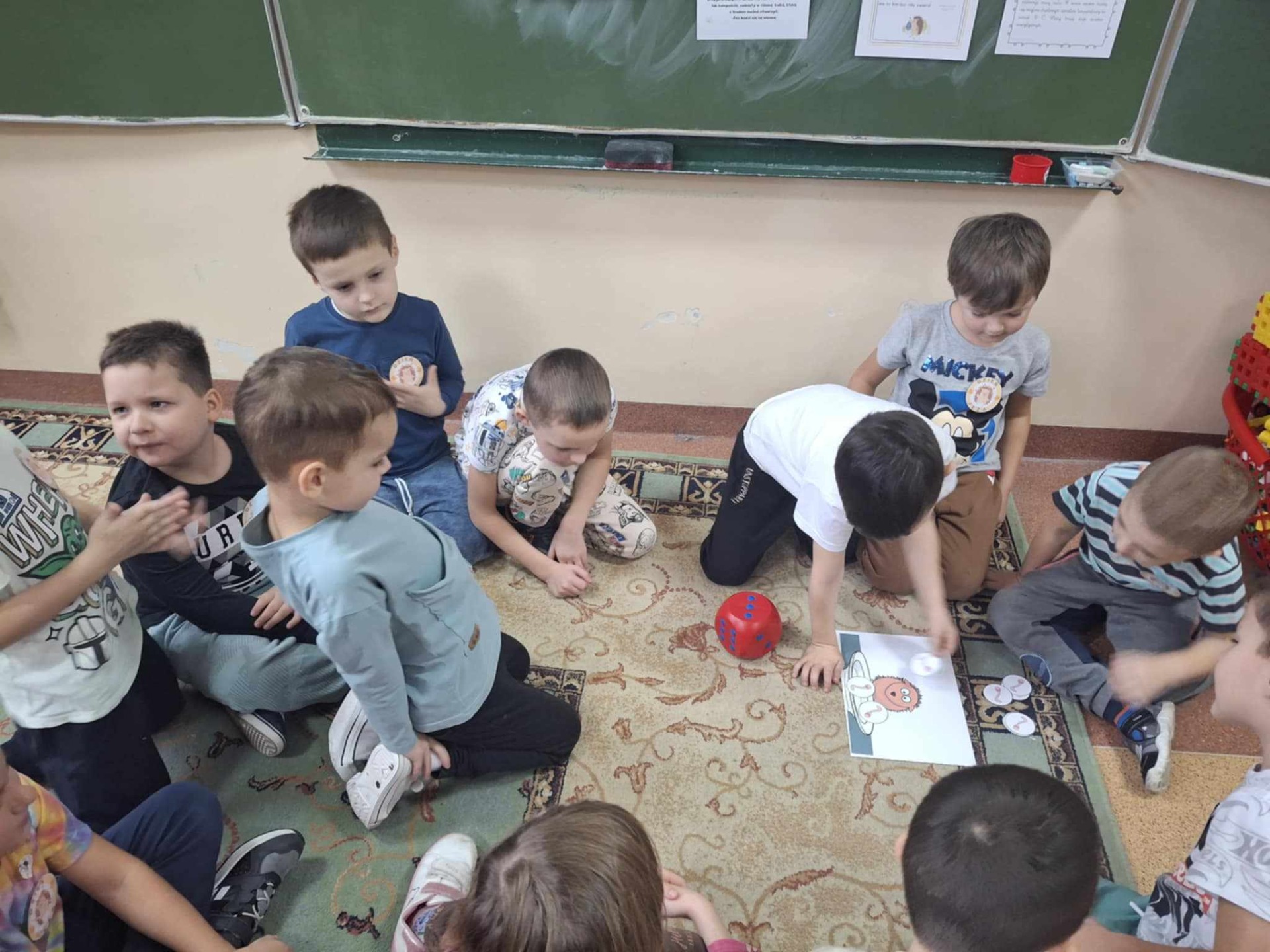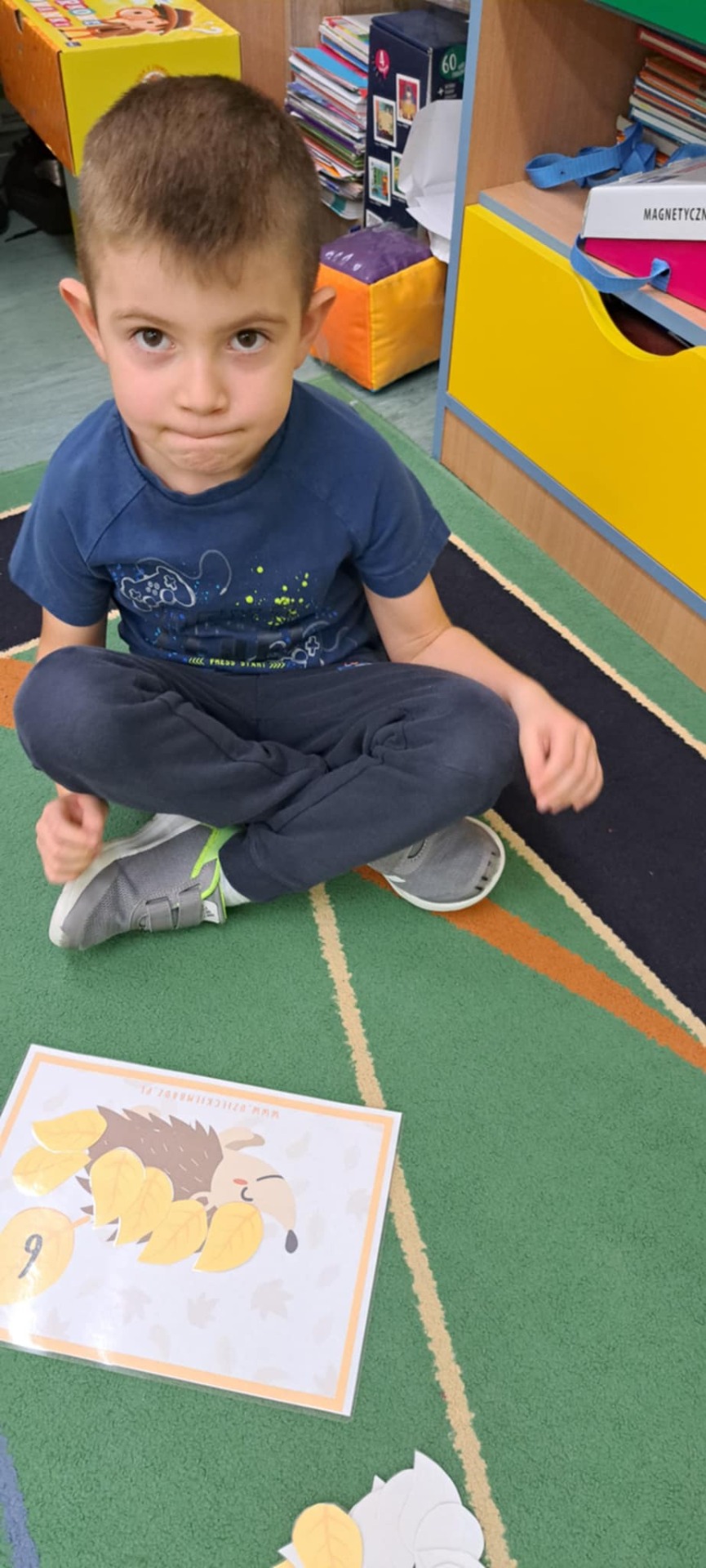 Tego dnia dzieci wysłuchały opowiadania o jeżach. Wzięły udział w pogadance na temat stylu życia jeży, budowie ich ciała oraz poznały ciekawostki z ich życia. Z radością wykonywały tematyczne prace plastyczne oraz doskonaliły umiejętność przeliczania. Świetnie bawiły się podczas zabaw muzyczno-ruchowych.