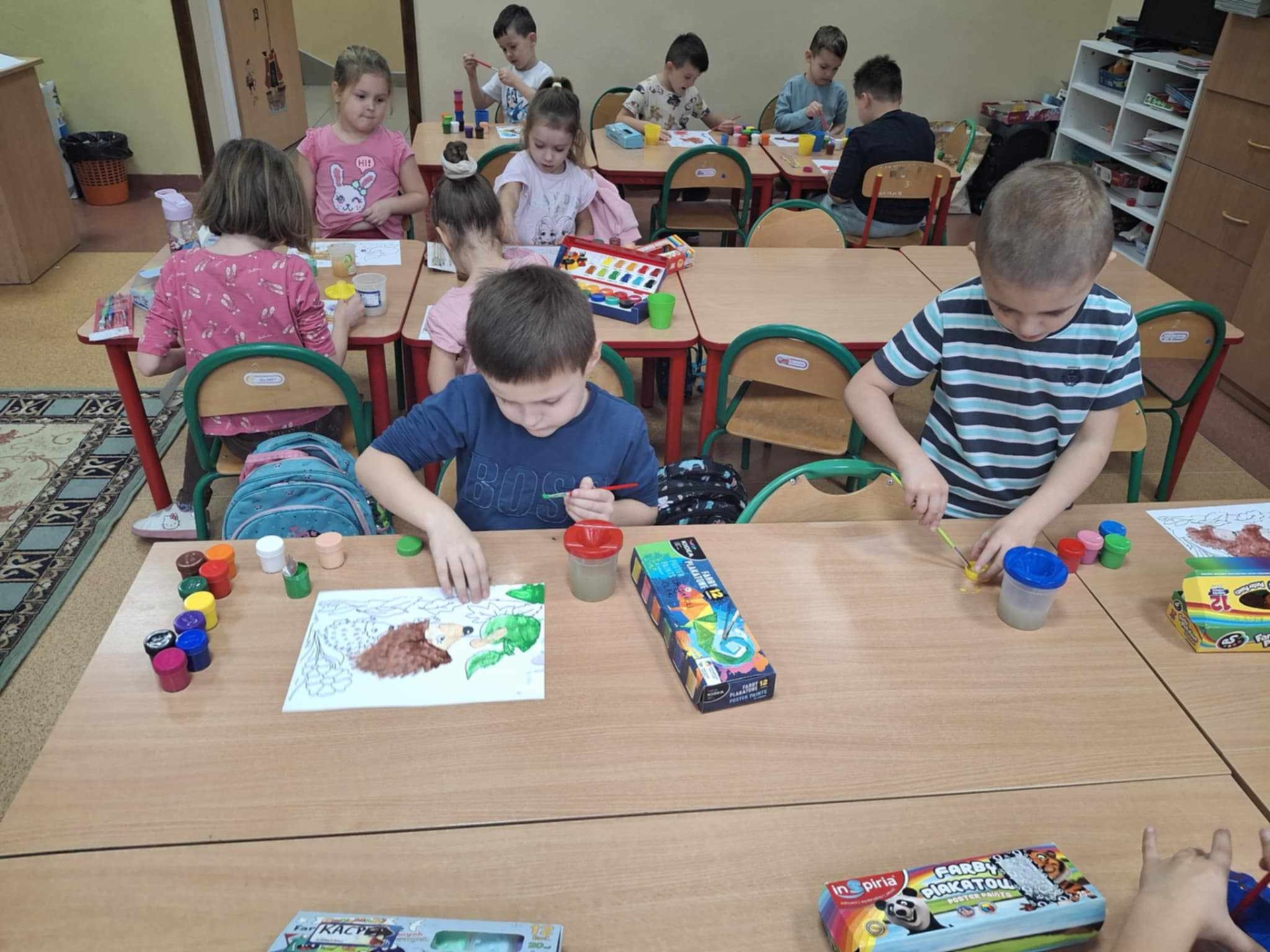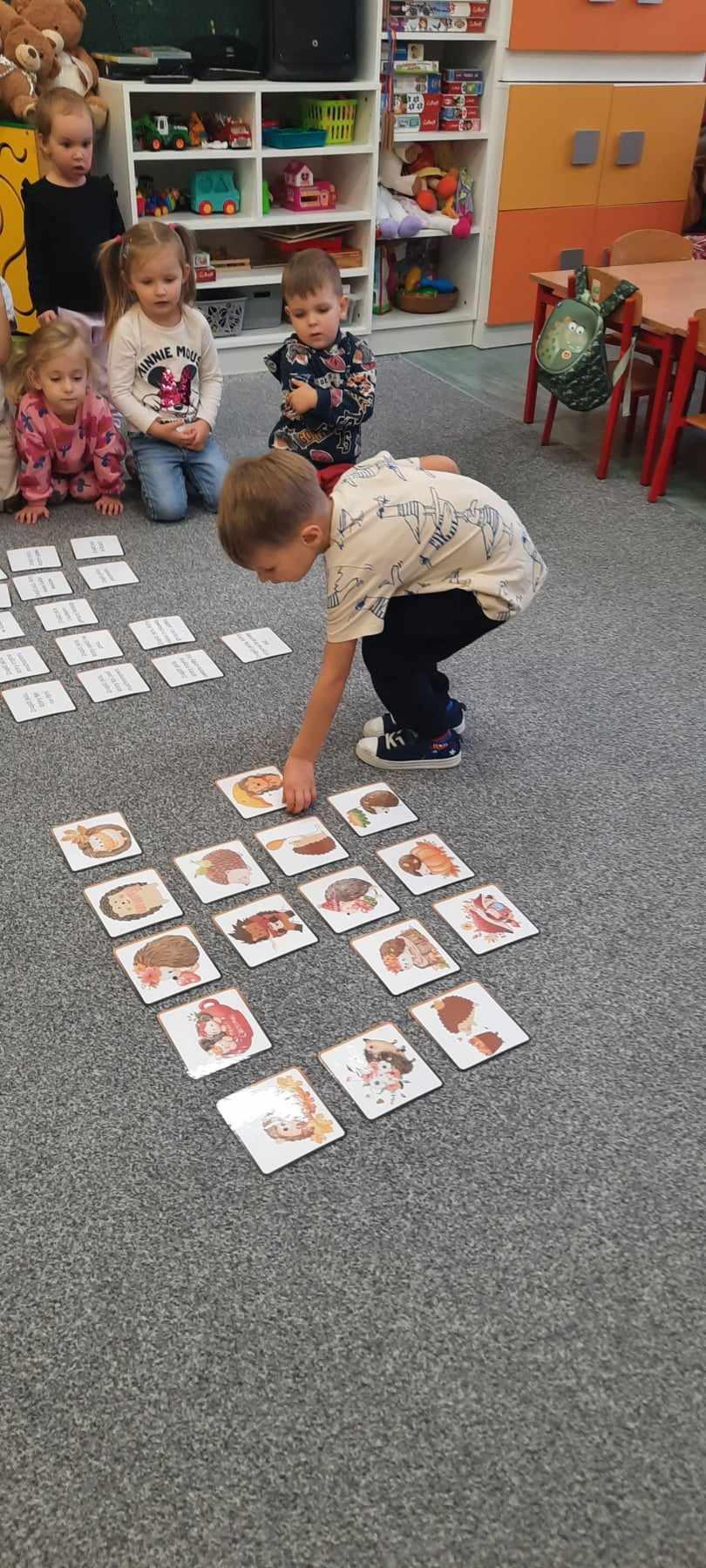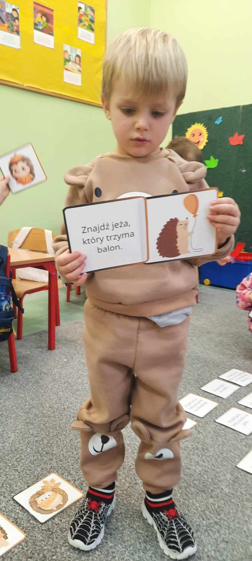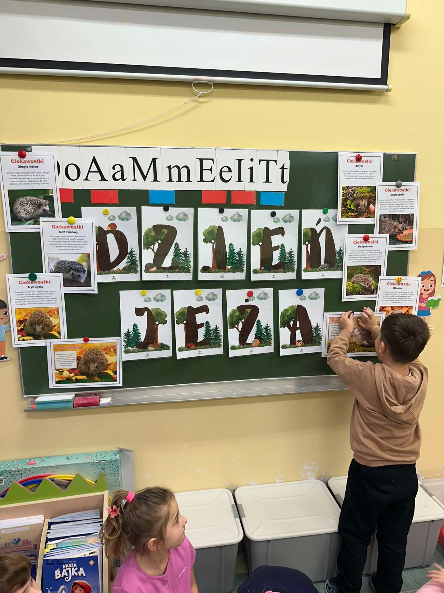 Tego dnia dzieci wysłuchały opowiadania o jeżach. Wzięły udział w pogadance na temat stylu życia jeży, budowie ich ciała oraz poznały ciekawostki z ich życia. Z radością wykonywały tematyczne prace plastyczne oraz doskonaliły umiejętność przeliczania. Świetnie bawiły się podczas zabaw muzyczno-ruchowych.