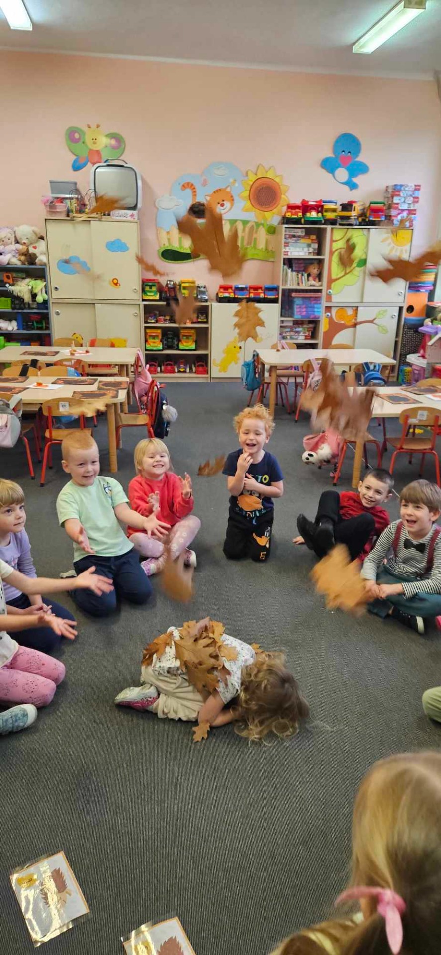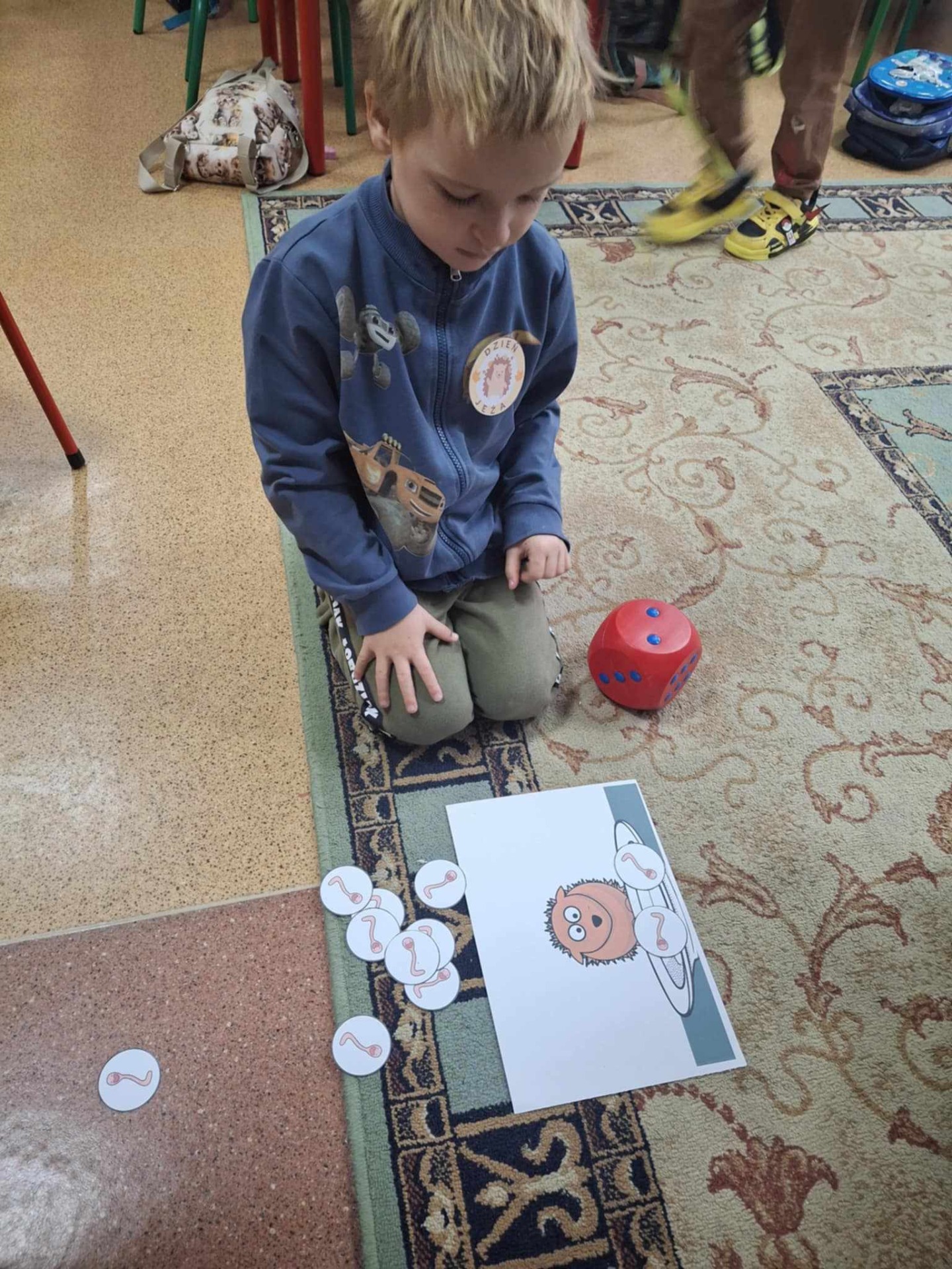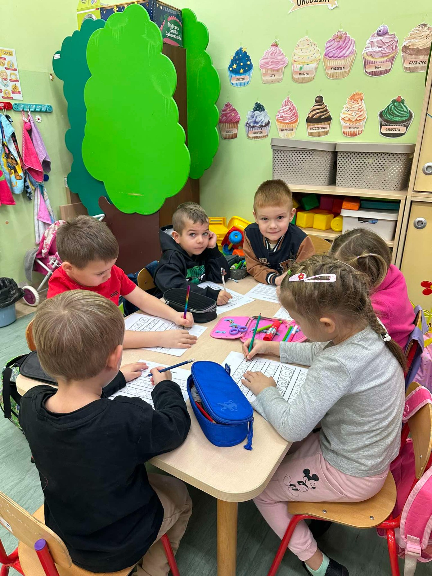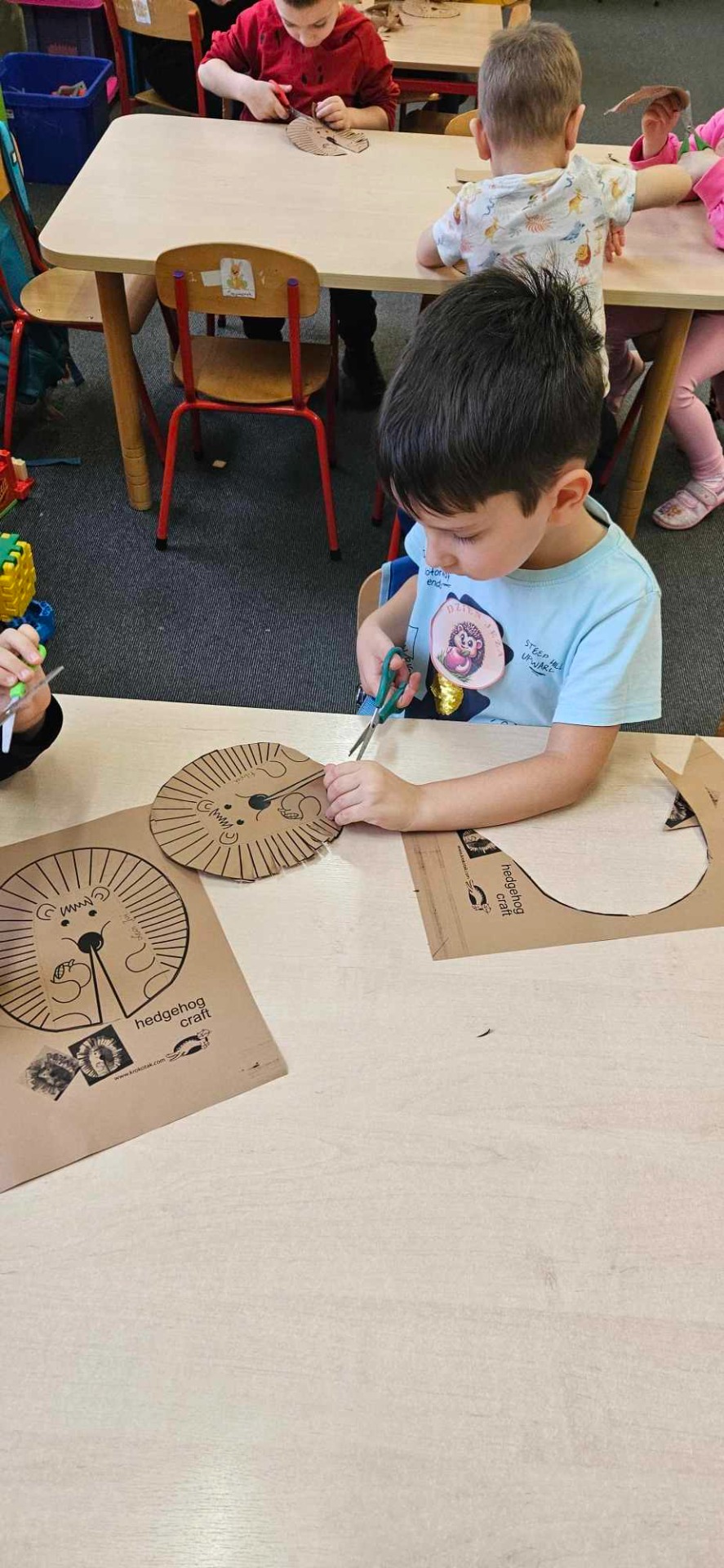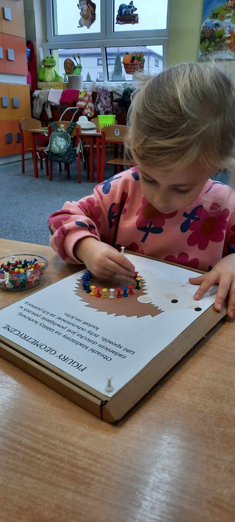 Tego dnia dzieci wysłuchały opowiadania o jeżach. Wzięły udział w pogadance na temat stylu życia jeży, budowie ich ciała oraz poznały ciekawostki z ich życia. Z radością wykonywały tematyczne prace plastyczne oraz doskonaliły umiejętność przeliczania. Świetnie bawiły się podczas zabaw muzyczno-ruchowych.