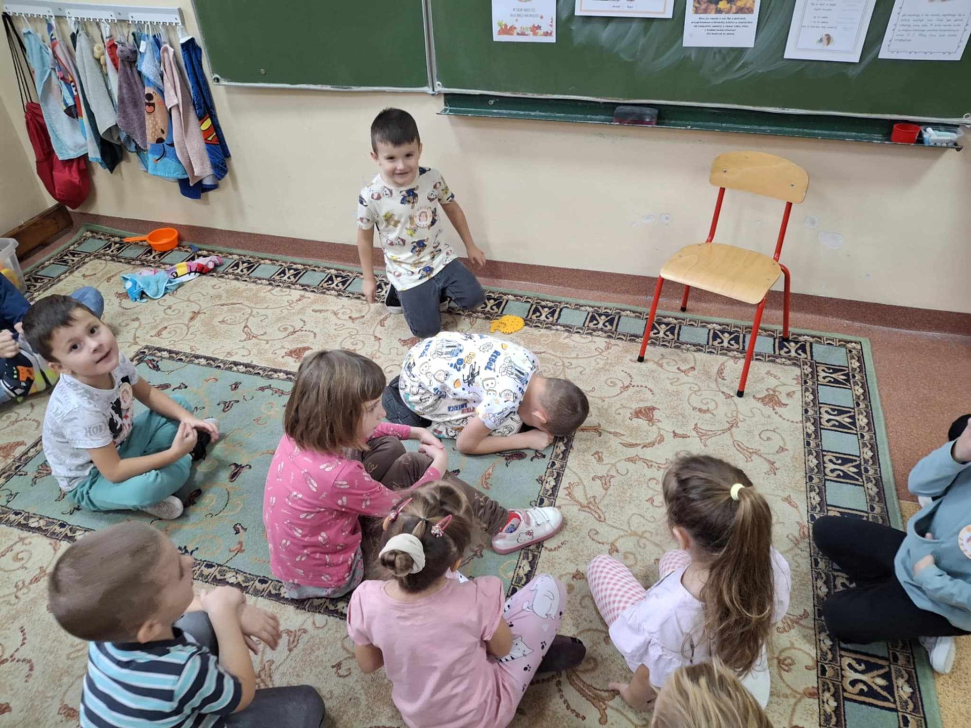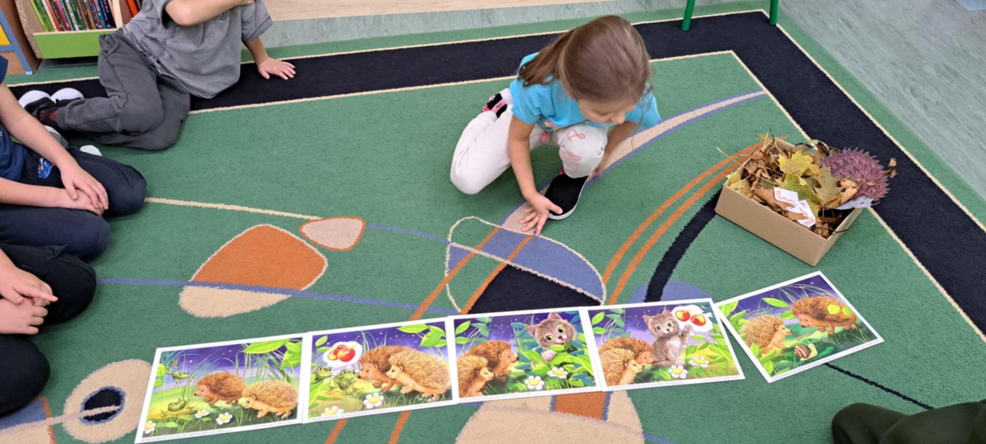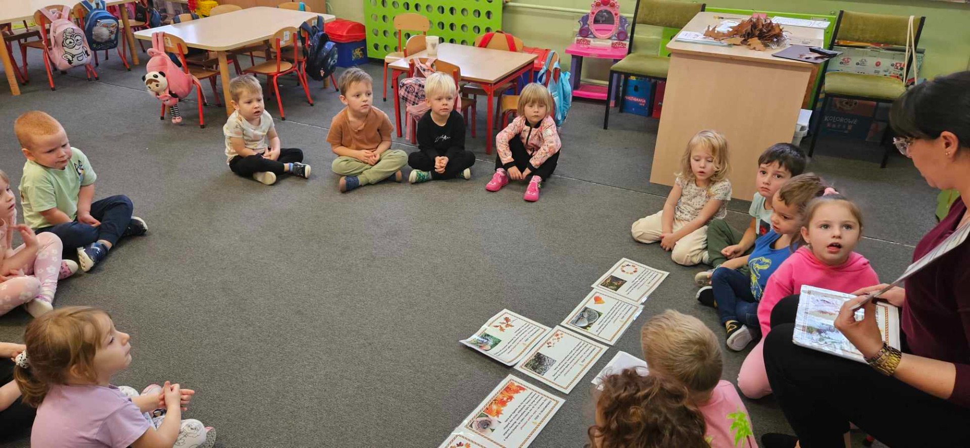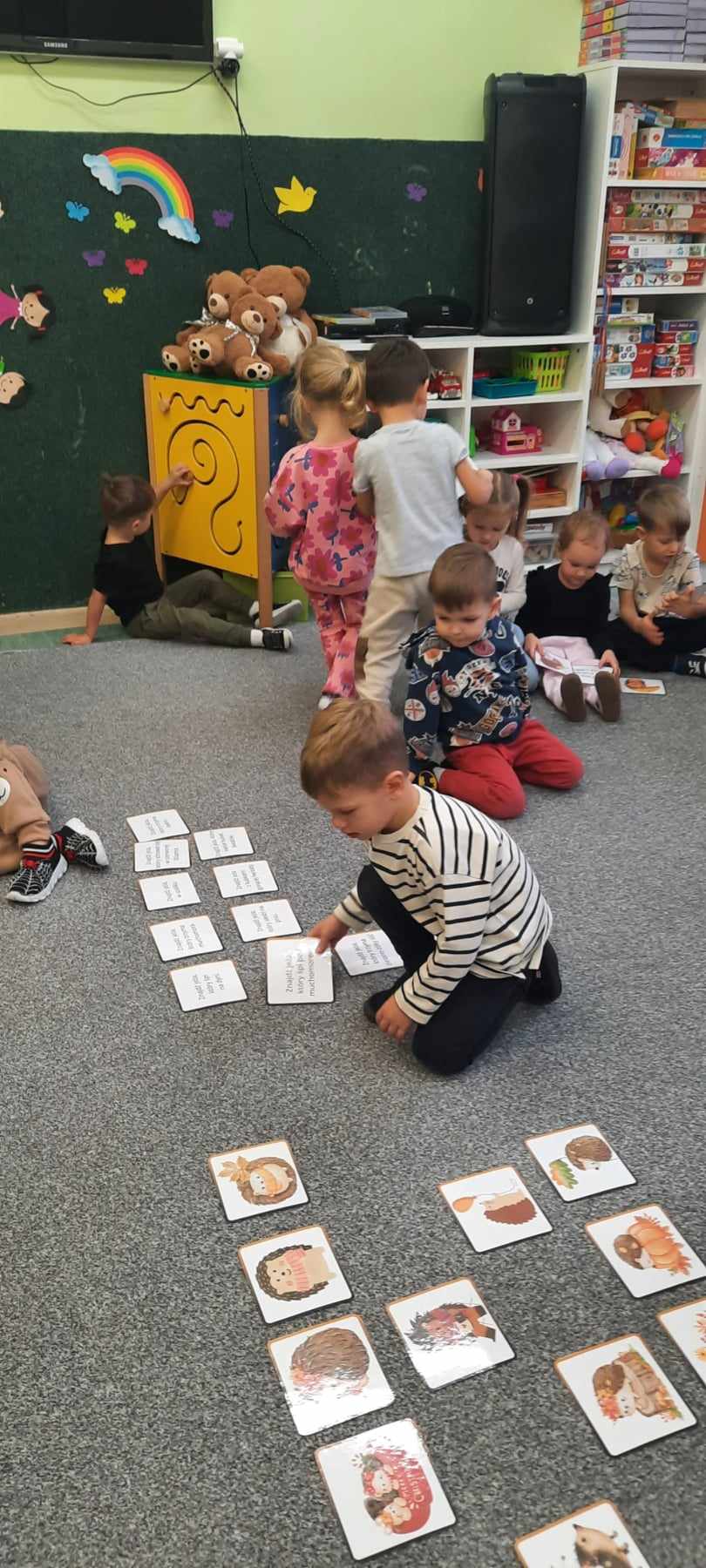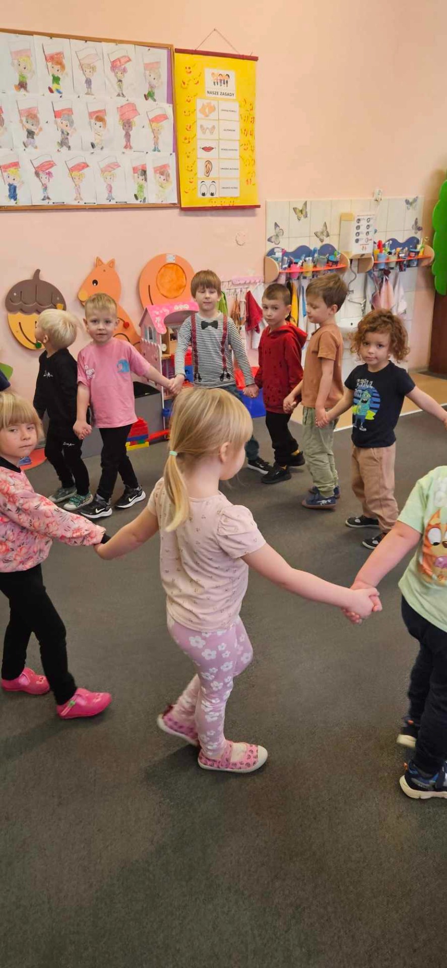 Tego dnia dzieci wysłuchały opowiadania o jeżach. Wzięły udział w pogadance na temat stylu życia jeży, budowie ich ciała oraz poznały ciekawostki z ich życia. Z radością wykonywały tematyczne prace plastyczne oraz doskonaliły umiejętność przeliczania. Świetnie bawiły się podczas zabaw muzyczno-ruchowych.
