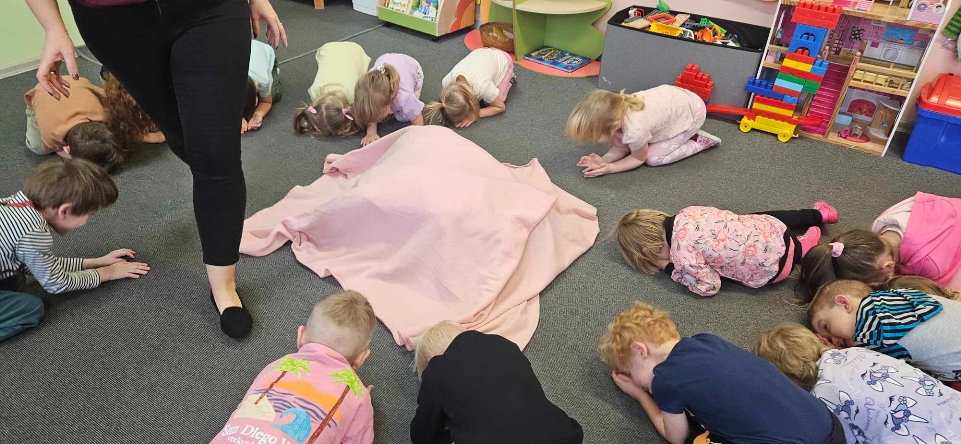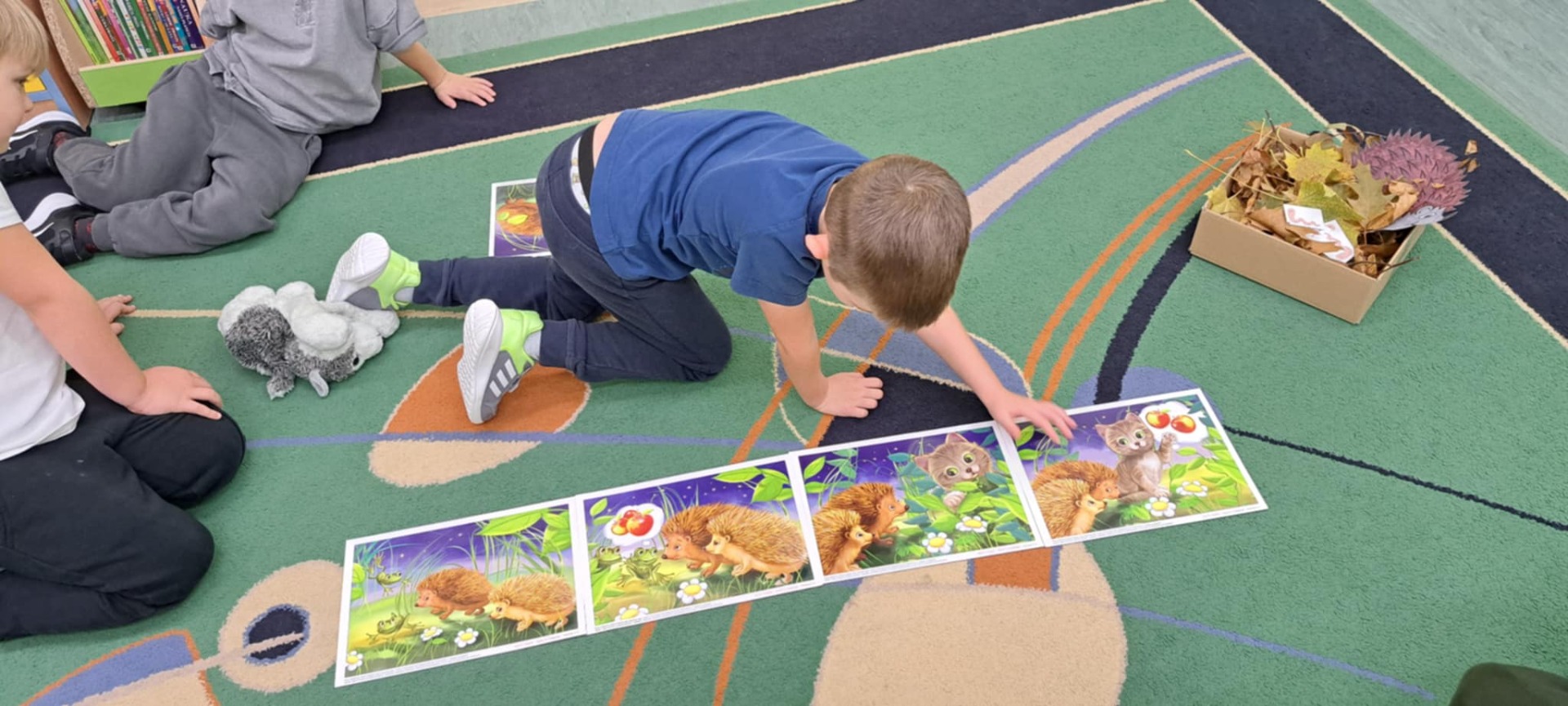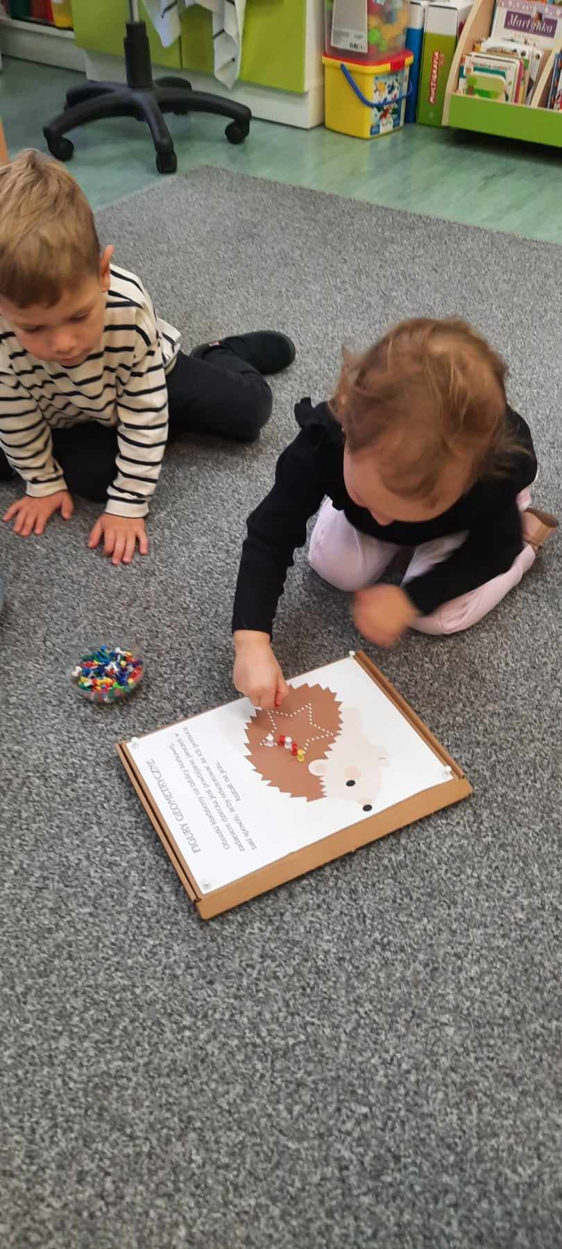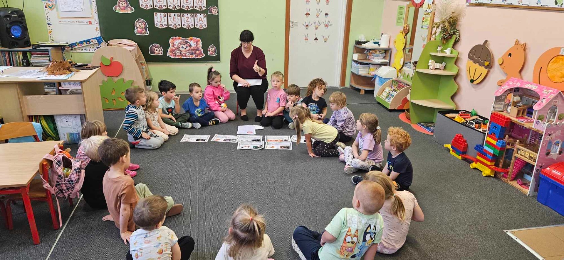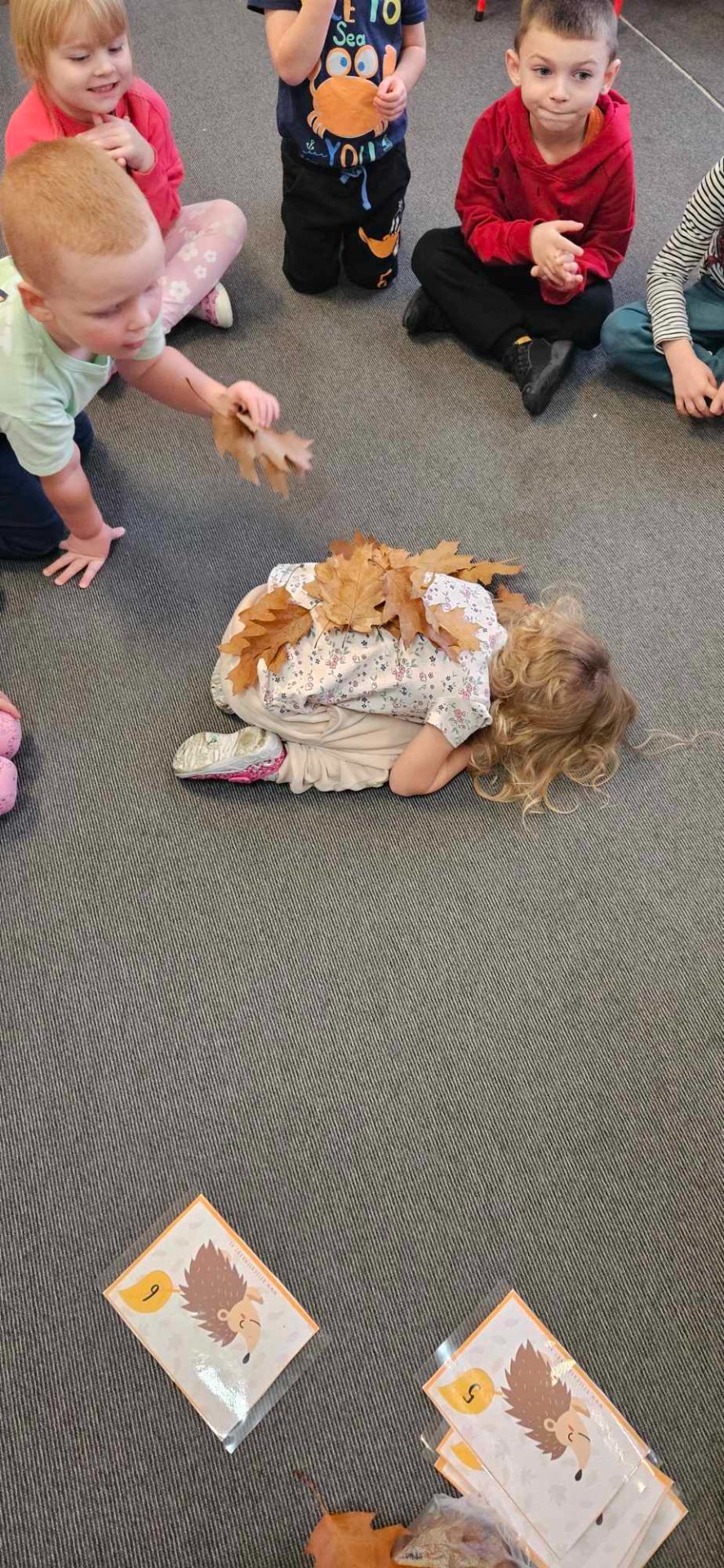 Tego dnia dzieci wysłuchały opowiadania o jeżach. Wzięły udział w pogadance na temat stylu życia jeży, budowie ich ciała oraz poznały ciekawostki z ich życia. Z radością wykonywały tematyczne prace plastyczne oraz doskonaliły umiejętność przeliczania. Świetnie bawiły się podczas zabaw muzyczno-ruchowych.