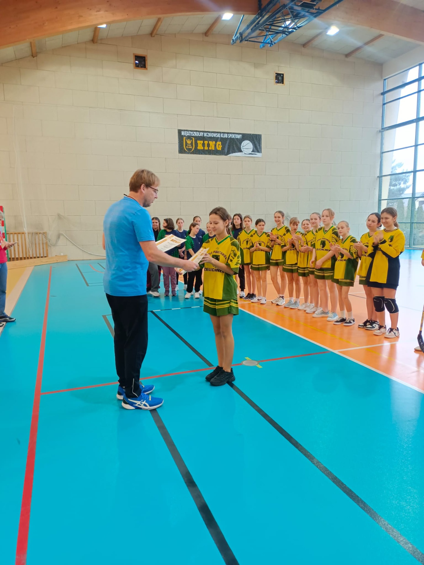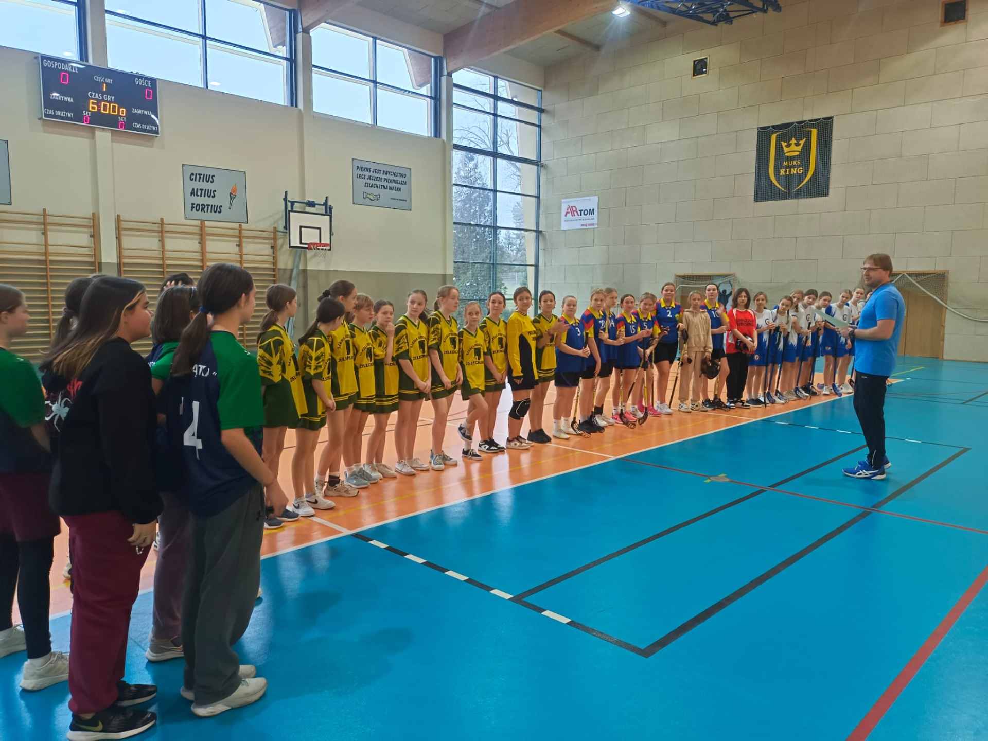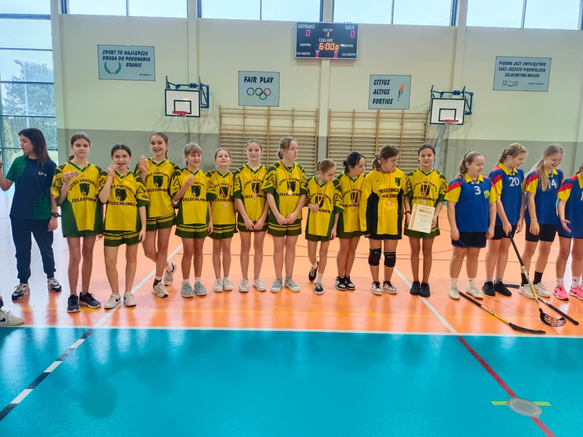 W dniu 20 listopada 2024r. reprezentacja dziewcząt naszej szkoły wzięła udział w Mistrzostwach Powiatu Tomaszowskiego w unihokeju dziewcząt. Igrzyska dzieci odbyły się w Szkole Podstawowej nr 7 w Tomaszowie Maz. Do zawodów przystąpiły cztery najlepsze reprezentacje powiatu tomaszowskiego wyłonione wcześniej w rozgrywkach międzygminnych. Uczennice naszej szkoły zajęły trzecie miejsce. Dziewczynki pokazały się z bardzo dobrej strony, przegrywając mecz o finał dopiero w rzutach karnych, i wygrywając spotkanie o trzecie miejsce 3:1. Do gry w finale zabrakło odrobiny szczęścia.