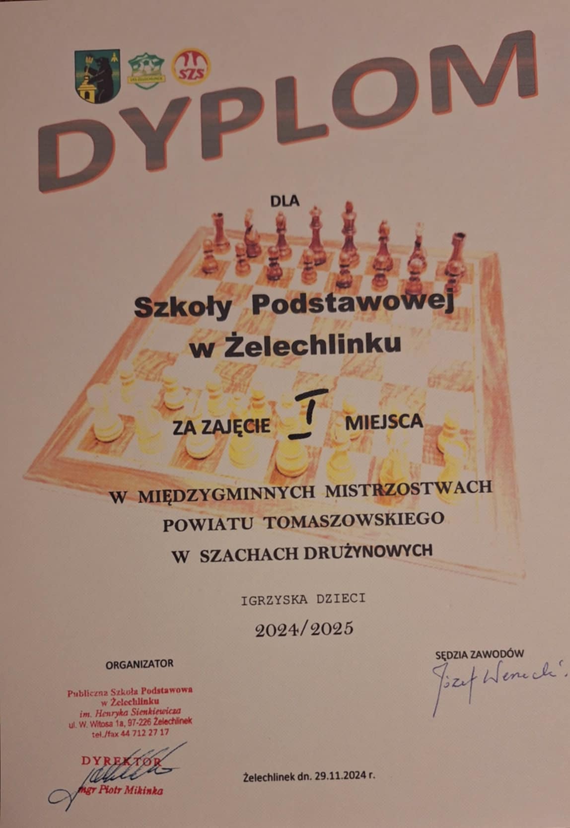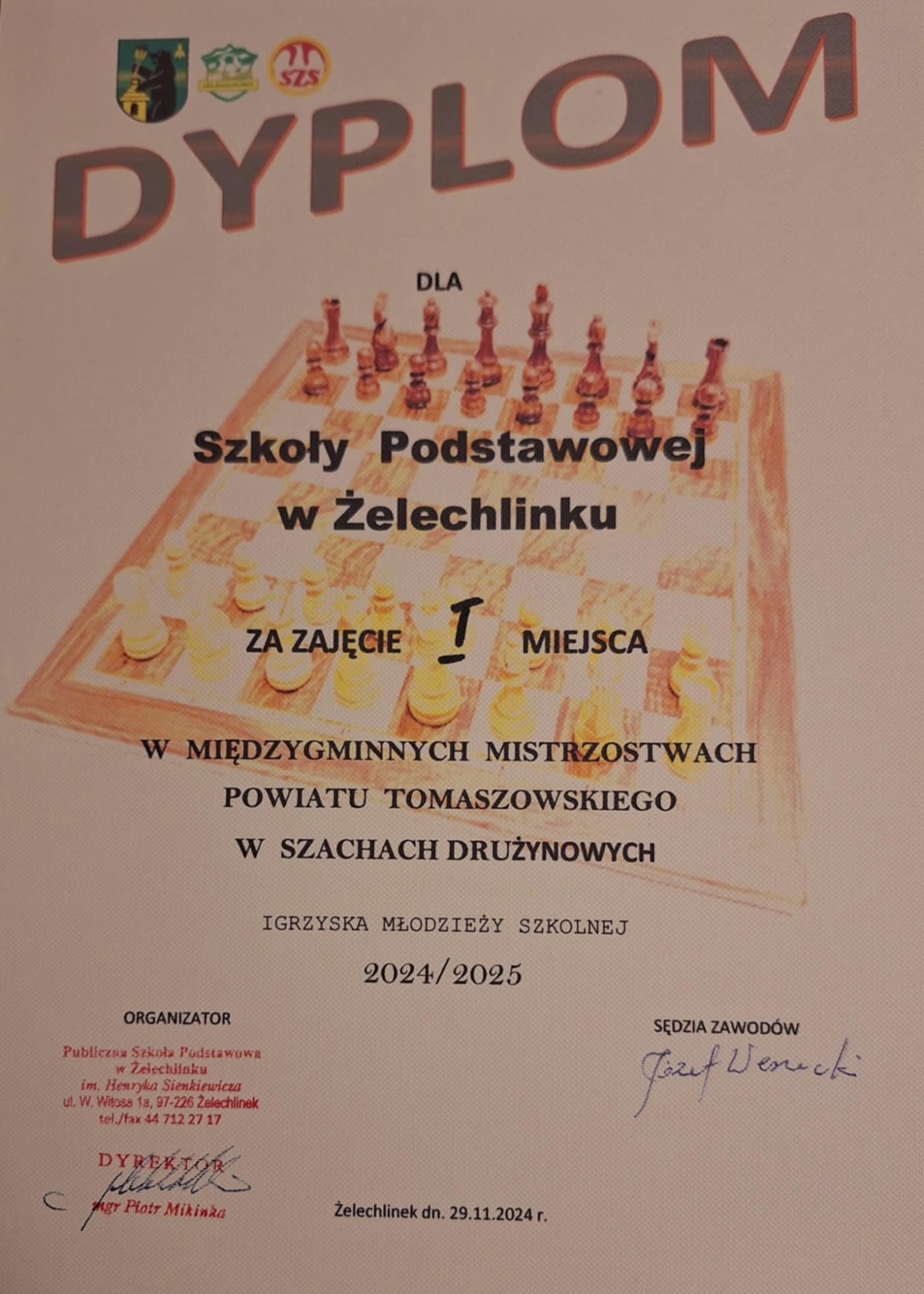 W piątek 29 listopada gościliśmy drużyny szachowe szkół podstawowych z Budziszewic oraz Lubochni. Naszą społeczność reprezentowali następujący szachiści: w kategorii IGRZYSK DZIECI (kl. 0-VI) 1. Kwiatkowski Jakub 2. Matysiak Michał 3. Michniewski Wojciech 4. Stańczyk Zofia 5. Kotynia Antonina 6. Szymański Kacper 7. Rochala Dominik; w kategorii IGRZYSK MŁODZIEŻY (kl. VII-VIII) 1. Kwiatkowska Jagoda 2. Kocięba Oliwier 3. Kuźba Lena 4. Gorzkiewicz Urszula 5. Rosińska Katarzyna 6. Czarnecki Dominik. Turniej rozegrano systemem rundowym, tempem 10+5 min. Zawodnicy wspaniale rywalizowali, ale i jednocześnie zawierali nowe przyjaźnie i znajomości.