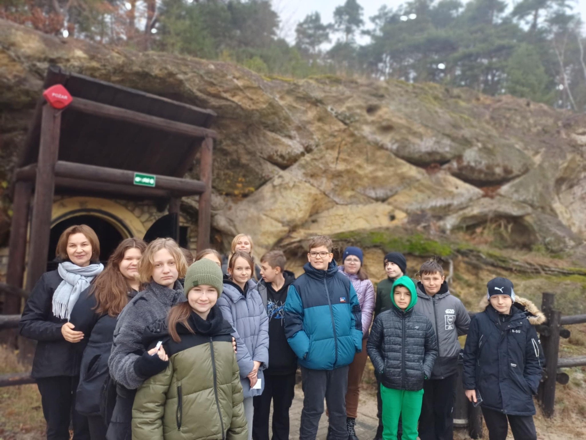 W środę 27 listopada 2024r. uczniowie klasy 5b wraz z wychowawcą Ewą Ambrozik i p. Pedagog Urszulą Starostą pojechali na wycieczkę do Tomaszowa Mazowieckiego. Poznawanie atrakcji turystycznych rozpoczęliśmy od zwiedzania Grot w Nagórzycach. Podziemna trasa turystyczna w grotach liczy 160m. Jest to labirynt podziemnych sal, korytarzy i wnęk, które są pozostałością po kopalni piasku kwarcowego. Podczas spaceru z przewodnikiem dowiedzieliśmy się, jak odbywało się pozyskiwanie piasku i do czego był on wykorzystywany. Poznaliśmy również jedną z legend o diable nagórzyckim.