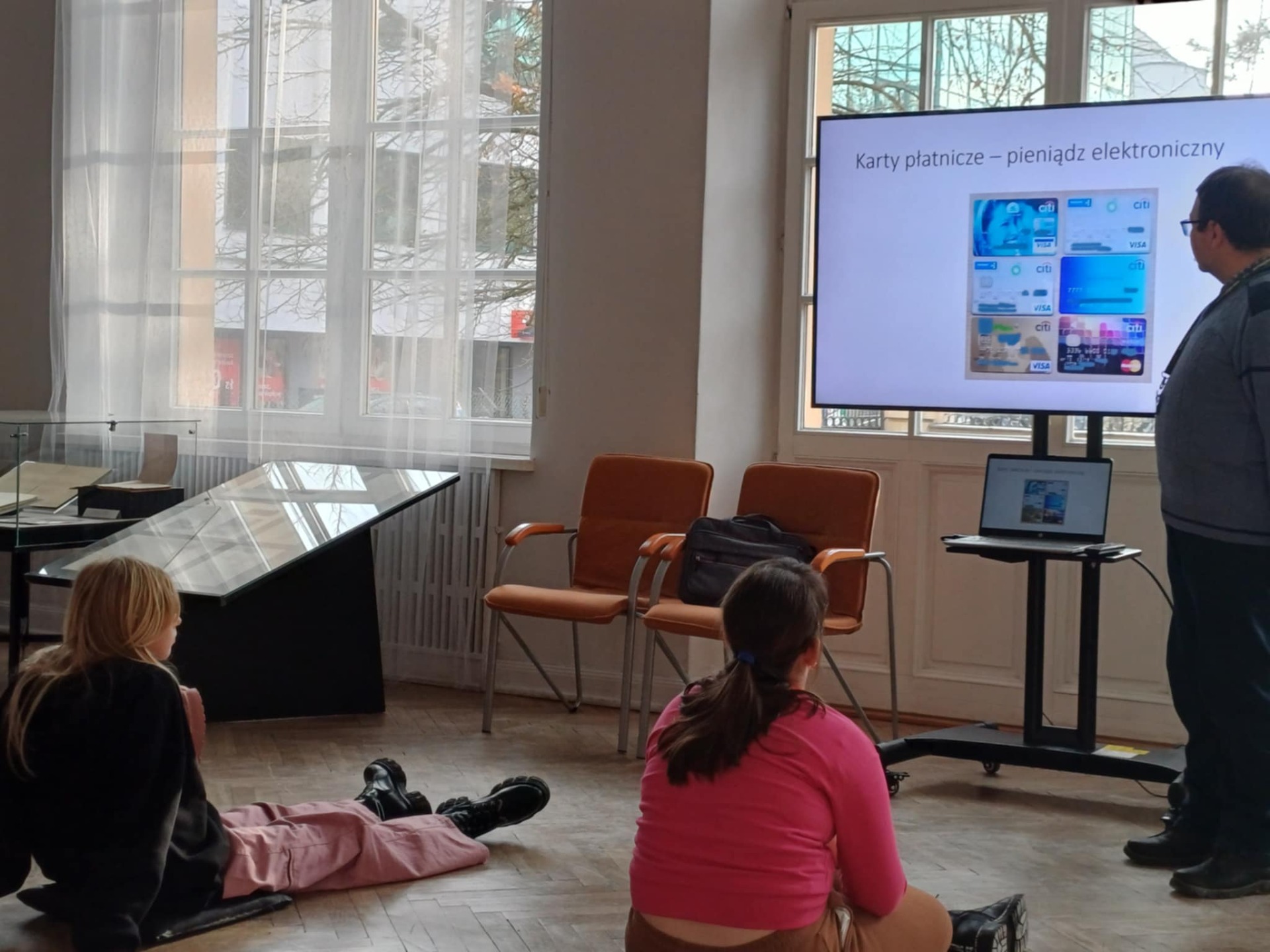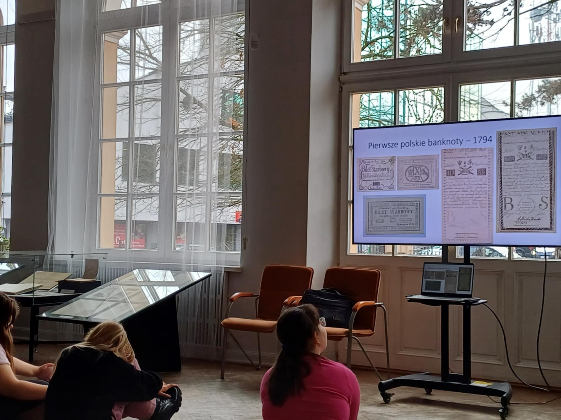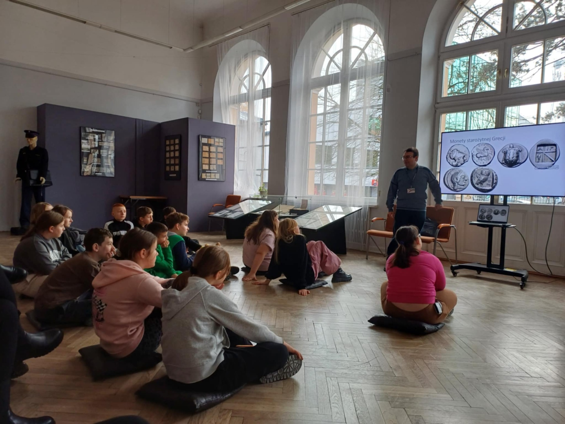 Następnym punktem naszej wycieczki było Muzeum w Tomaszowie Maz,. gdzie uczestniczyliśmy w lekcji muzealnej „Od wymiany towaru do karty płatniczej – historia pieniądza”. Podczas zajęć dowiedzieliśmy się, jak i czym płacono za towary, co to były płacidła, kiedy pojawiły się pierwsze monety i jak zmieniały się na przestrzeni wieków oraz od czego zależała ich wartość. Poznaliśmy historię pojawienia się banknotów i papierowych pieniędzy zastępczych. Pierwsze polskie banknoty pojawiły się w 1794 r. i nazywały się „biletami skarbowymi”. Poznawanie historii pieniądza zakończyliśmy na kartach płatniczych i kryptowalutach. Po zajęciach warsztatowych przyszedł czas na zwiedzanie stałych wystaw w muzeum.