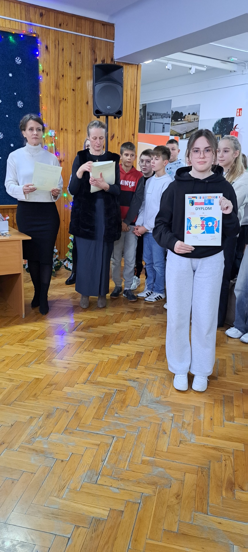 Nauka języków jest niezwykle ważna, wszyscy o tym doskonale wiedzą. „Fotobudki językowe” to jeden ze sposobów nauki poprzez zabawę. Dnia 11.12.2024 nastąpiło uroczyste podsumowanie konkursu na „Fotobudkę językową”. W apelu udział wzięli uczniowie klas 4-8. Poziom prac był wysoki, uczniowie włożyli w ich przygotowanie dużo wysiłku, wykazali się niezwykłą kreatywnością. Zwyciężyły jednogłośnie projekty klas 6b „Anglia” i 7b „Francja”, pozostałe zespoły otrzymały wyróżnienia. Zwycięzcy zostali nagrodzeni przez Dyrekcję Szkoły, natomiast wyróżnione klasy wzięły udział w loterii fantowej, w której mogły wylosować pamiątkowe drobiazgi ufundowane przez szkołę i Ambasadę Królestwa Niderlandów.