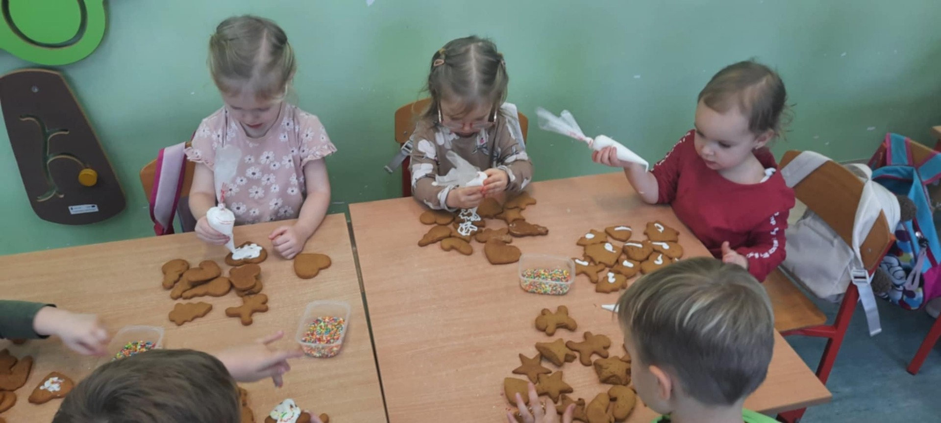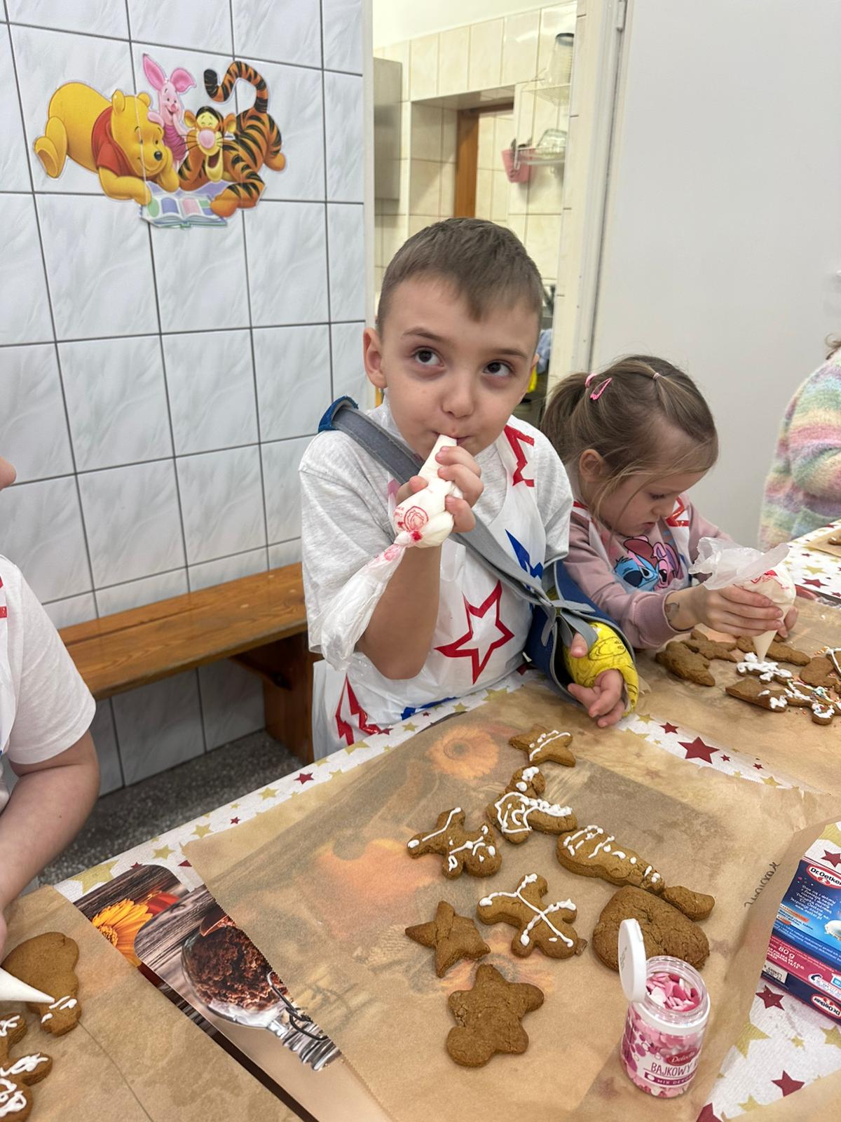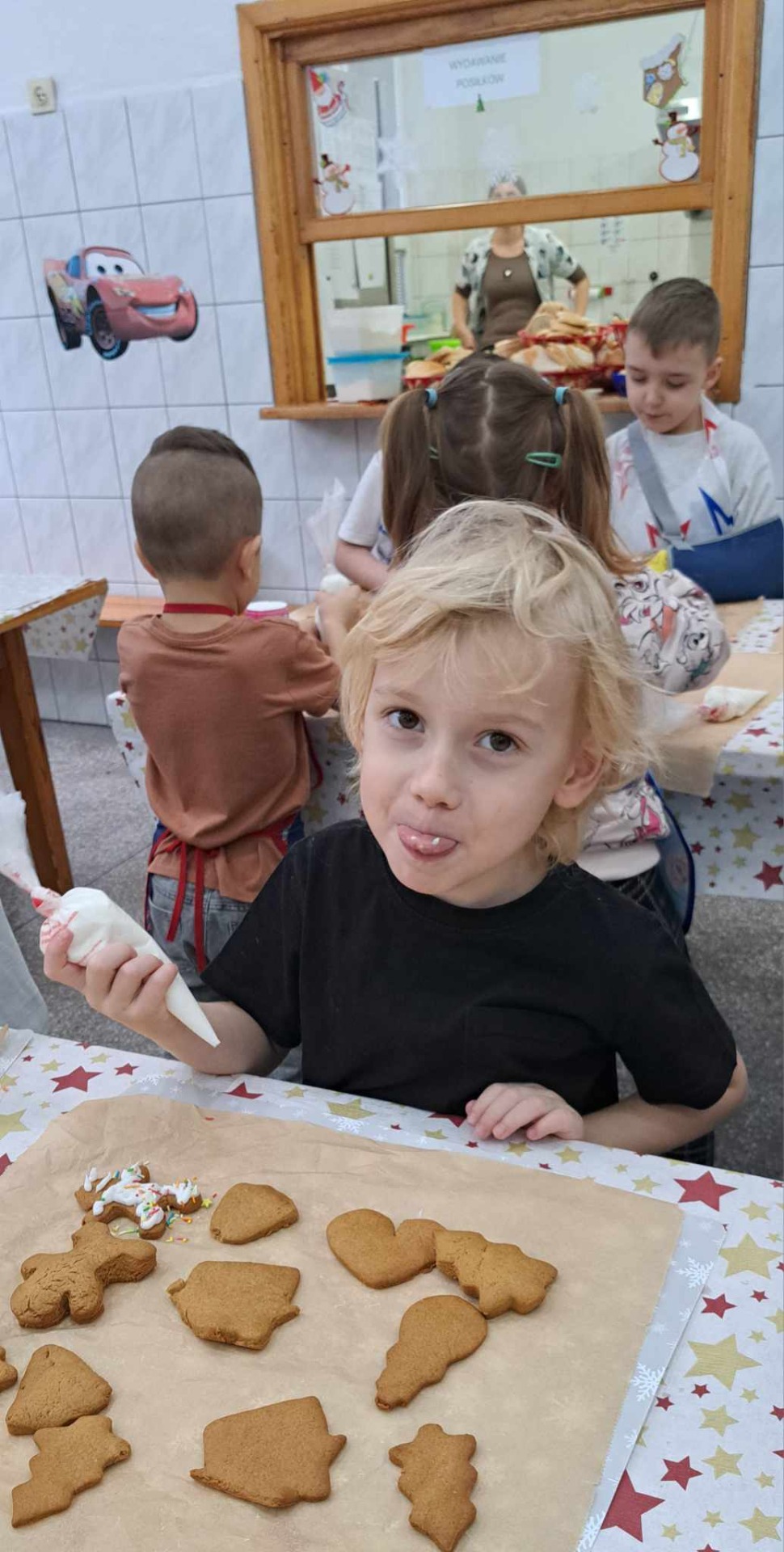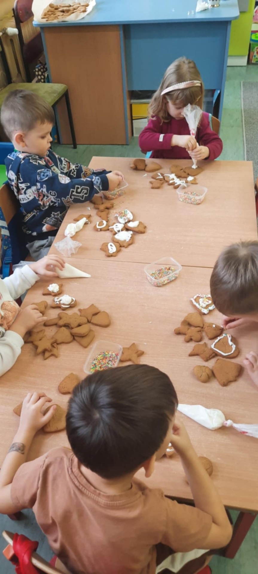 Najbardziej wyczekiwanym przez dzieci momentem było dekorowanie pierniczków za pomocą lukru i kolorowych posypek oraz oczywiście próbowanie własnych wypieków. Na twarzach wszystkich dzieci gościł uśmiech. To był bardzo miło spędzony czas.