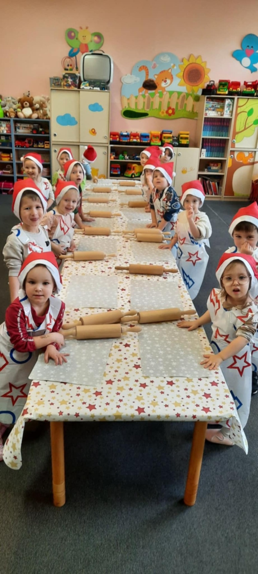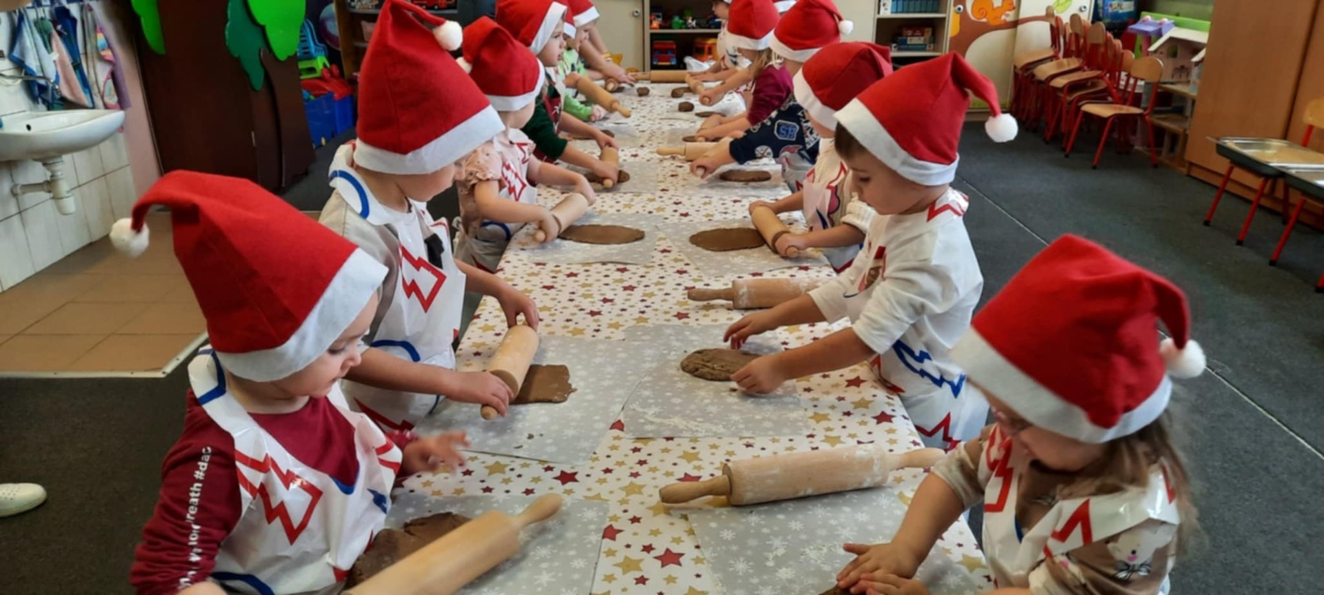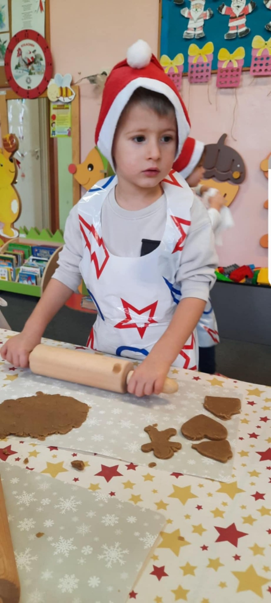 Kiedy wszystko było już gotowe przedszkolaki z dużym zapałem przystąpiły do pracy – ugniatały ciasto, wałkowały je oraz wykrawały ciasteczka w najróżniejszych kształtach.