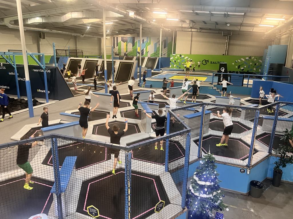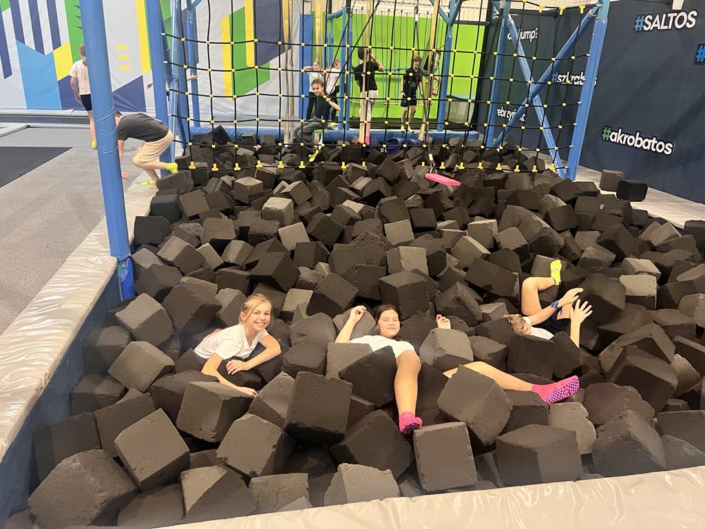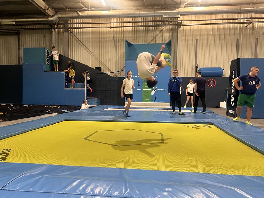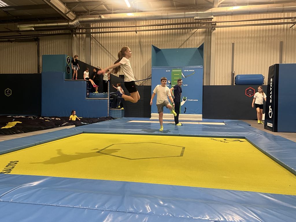 Po wyjściu z EC1 zjedliśmy posiłek w KFC i MC Donald w Manufakturze. W dalszej części programu wycieczki uczniowie byli w parku trampolin SALTOS z matami gimnastycznymi i basenem z gąbkami, gdzie między innymi przeszli szkolenie z zakresu bezpieczeństwa i techniki skoków. Ponadto mieli możliwość spędzenia czasu w sposób aktywny i bardzo atrakcyjny.
