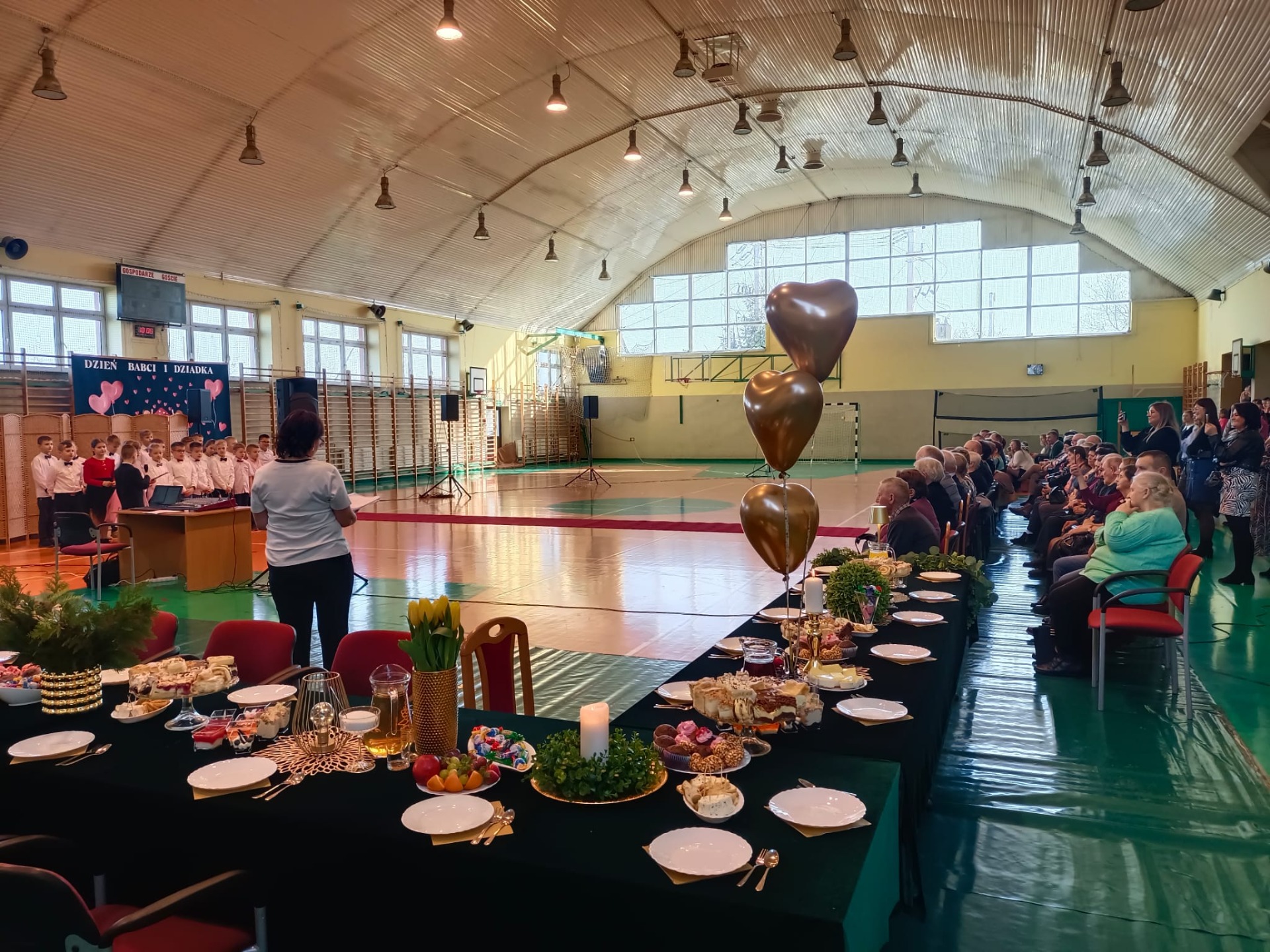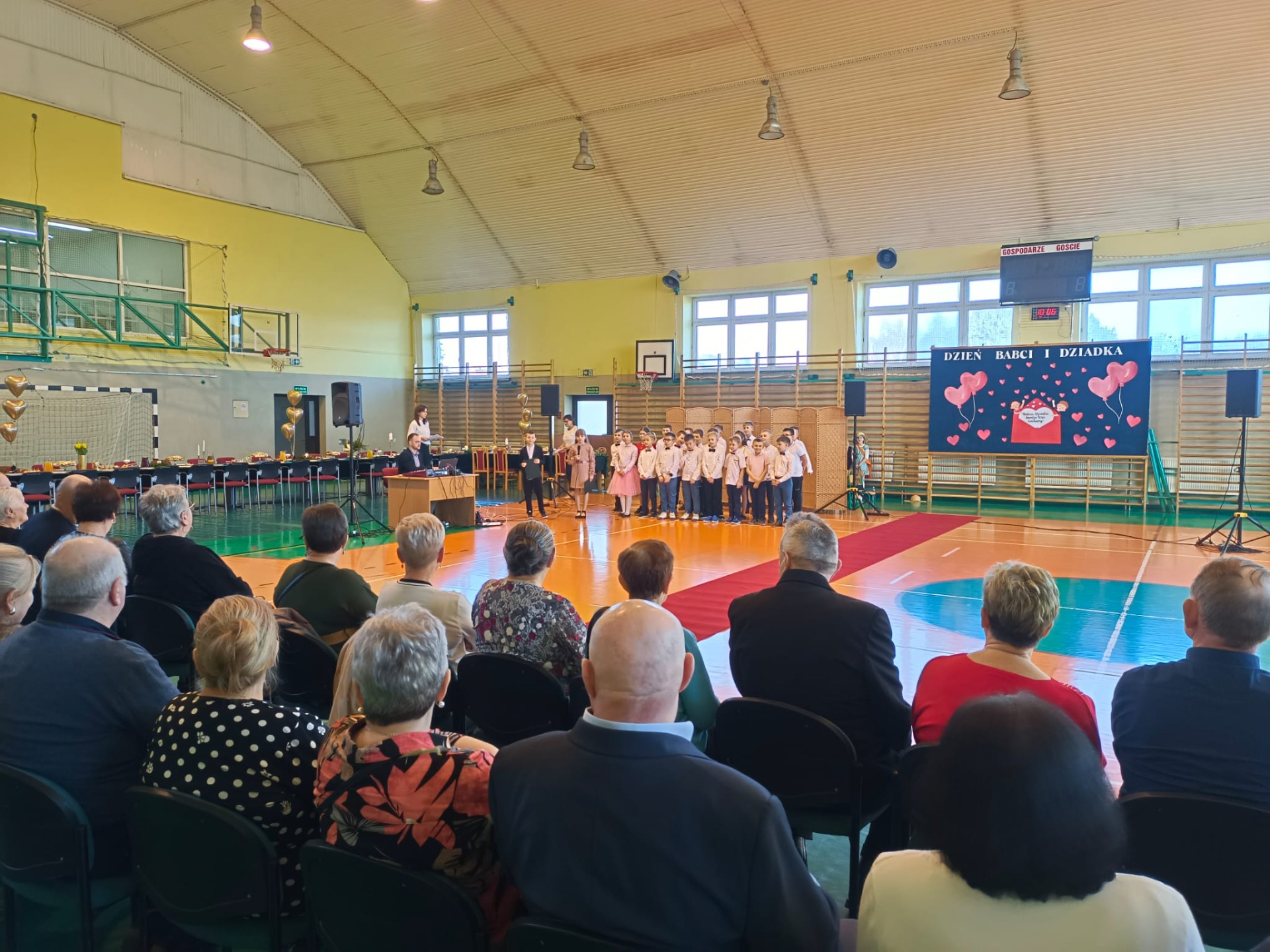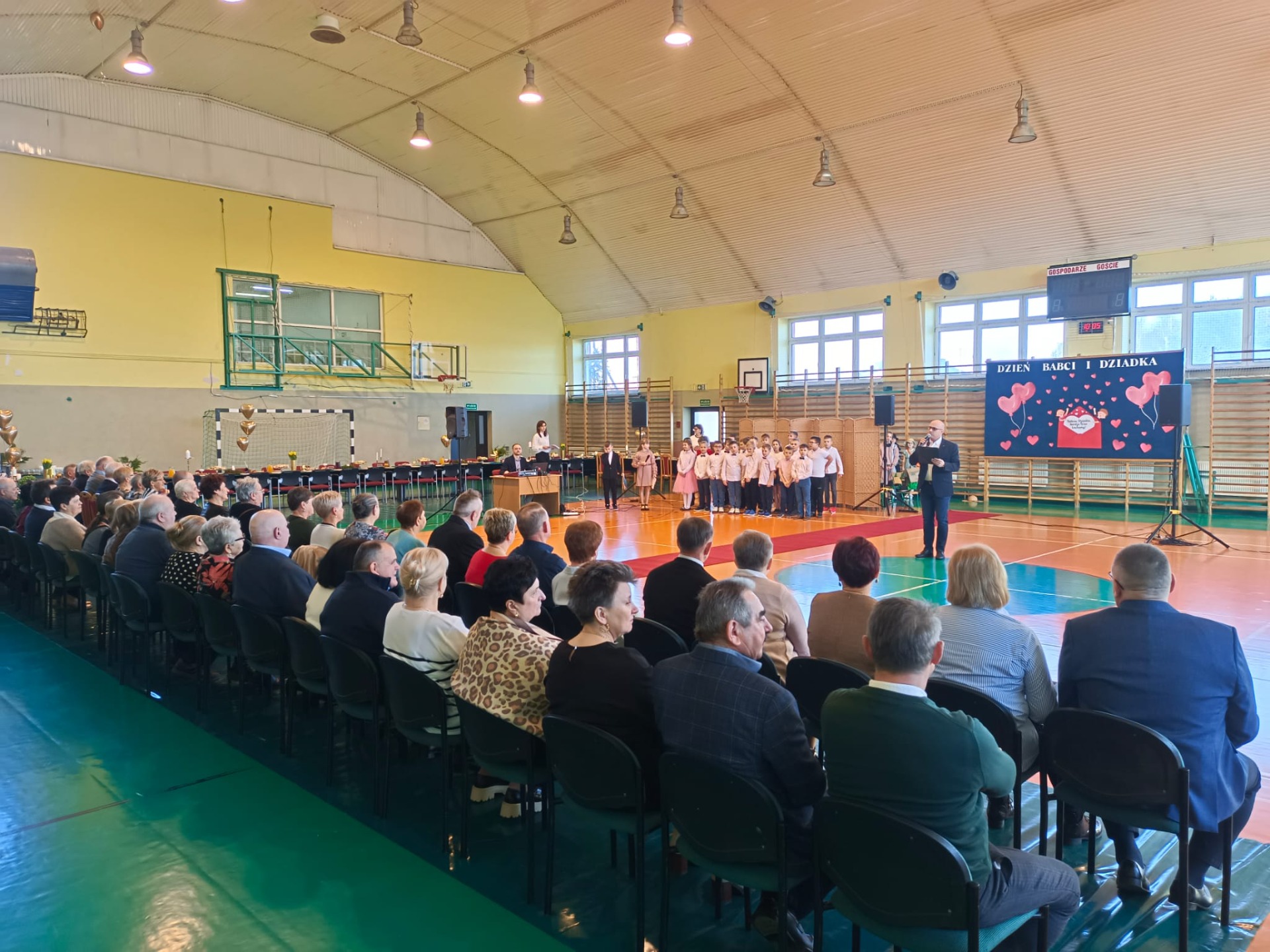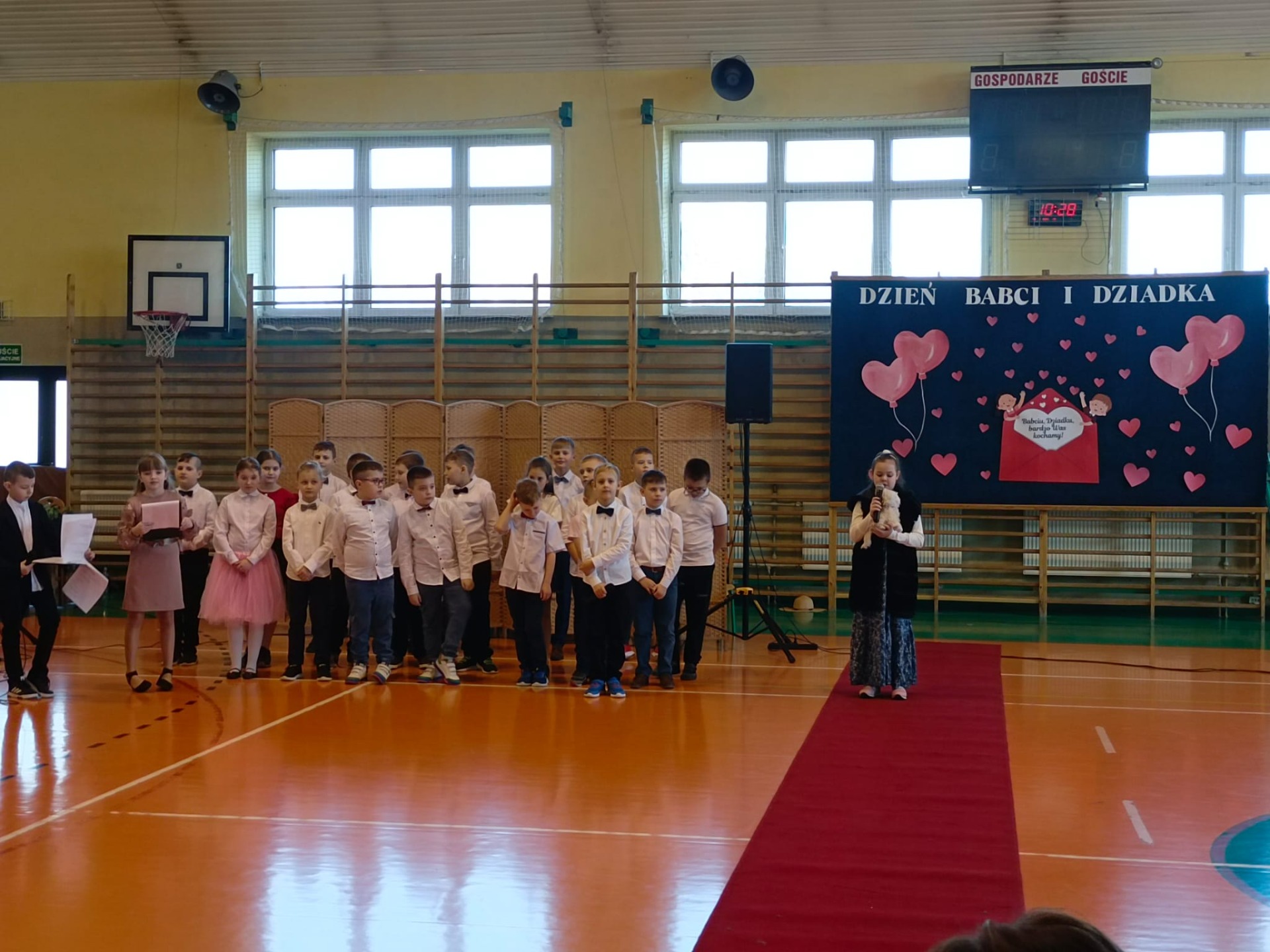 30 stycznia 2025 r. odbyła się w naszej szkole wspaniała uroczystość z okazji Dnia Babci i Dziadka. Świętowanie rozpoczął pan dyrektor Piotr Mikinka, który serdecznie przywitał dostojnych gości, złożył im życzenia, a następnie zaprosił wszystkich na występ. W pięknie udekorowanej sali gimnastycznej dzieci z klas trzecich przedstawiły program artystyczny pt. „Babciowy i dziadkowy (zupełnie odlotowy) pokaz mody”, w którym zaprezentowały 12 „typów” babć i dziadków, przedstawiły zalety „rodzajów” babci i dziadka, co wywołało szeroki uśmiech na twarzach widzów. Dodatkową atrakcją były pokazy taneczne w wykonaniu chłopców, a następnie dziewczynek. Nie zabrakło też życzeń i gromkiego „Sto lat” oraz upominków, które zostały własnoręcznie przygotowane i wręczone przez dzieci. Dziadkowie ze wzruszeniem i uśmiechem oglądali przedstawienie. Z dumą patrzyli na swoje wnuczęta, które włożyły wiele wysiłku w to, aby jak najlepiej wyrazić swoją miłość i szacunek. Gościom towarzyszyły radość, uśmiech oraz łzy wzruszenia. Po części artystycznej Babcie i Dziadkowie zostali zaproszeni na herbatkę i słodki poczęstunek przygotowany przez rodziców. To był naprawdę wyjątkowy dzień, pełen uśmiechu, radości i dumy. Dzień, który ukazał nam, jak ważne są takie spotkania i wspólnie spędzone chwile.