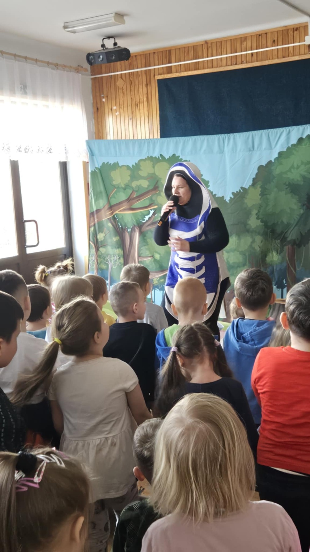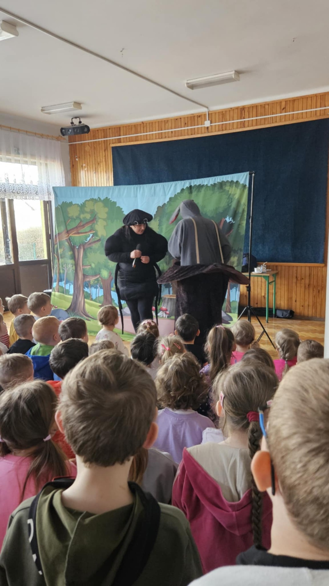 Uczniowie klas III-V obejrzeli przedstawienie profilaktyczne pt. ”Ściema 2.0, czyli pułapki internetowe”. Bohaterowie spektaklu ukazali przede wszystkim fejk i deepfake w Internecie oraz uzależnienie behawioralne od smartfonów.