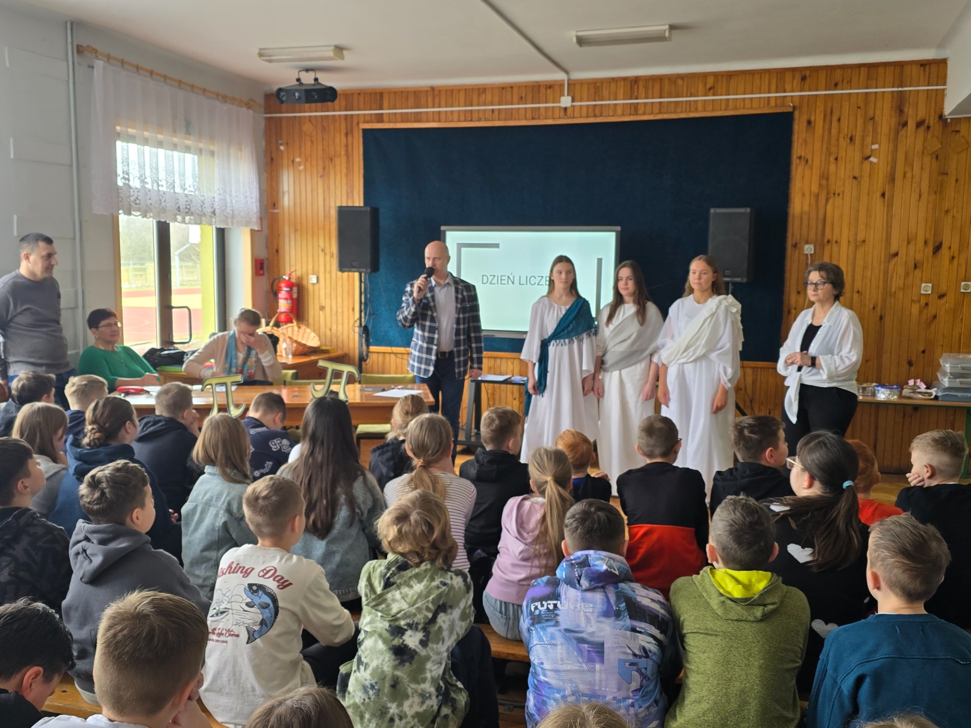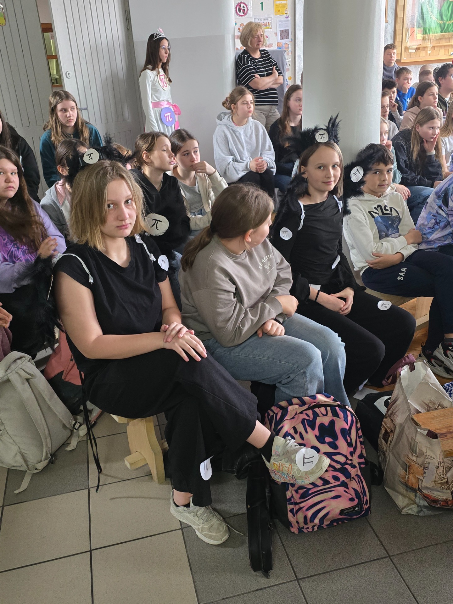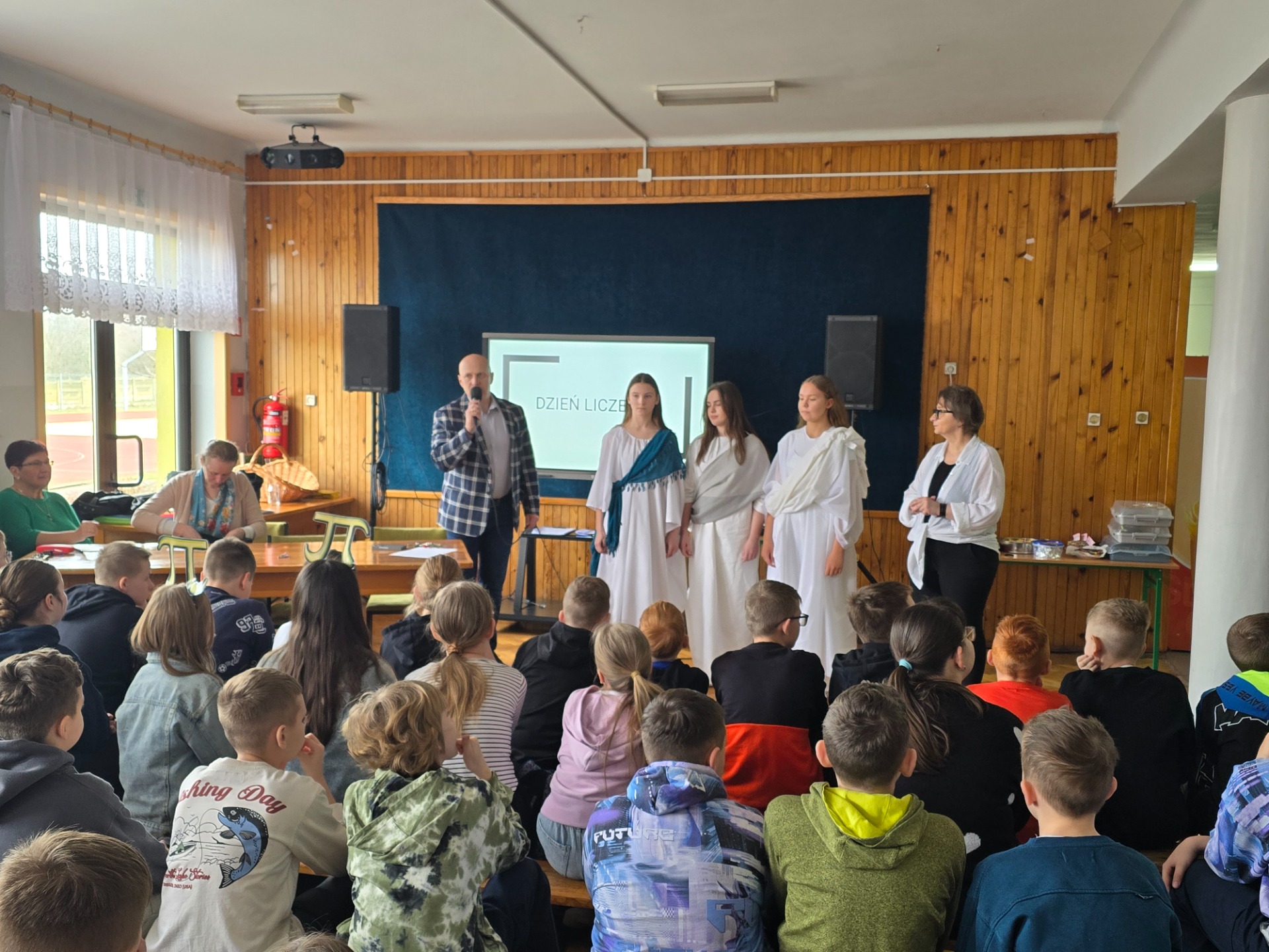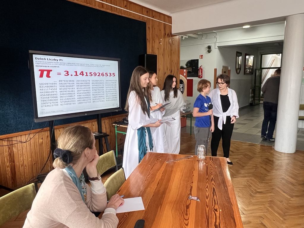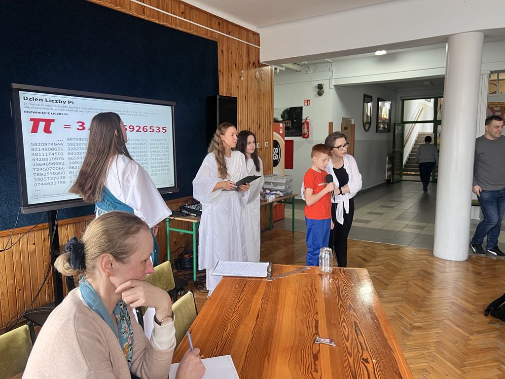 Uczennice klasy VIIIa wykonały prezentację, przeprowadziły doświadczenie i dowód Archimedesa. Pozostali uczniowie aktywnie uczestniczyli w konkursach. Ogromne emocje towarzyszyły „Maratonowi Liczby Π”. Uczniowie wymieniali z pamięci cyfry po przecinku liczby Π. W grupie klas IV-VI wygrał Wojciech Michniewski, uczeń klasy VIa, który wyrecytował 125 cyfr, a w zespole klas starszych zwyciężczynią została uczennica klasy VIIa – Urszula Gorzkiewicz z wynikiem 204. To nie był koniec emocji w tym dniu. Uczniowie wzięli również udział w konkursie „Π w sztuce – biżuteria”. Konkurs polegał na ułożeniu koralików zgodnie z kolorami przyporządkowanymi danym cyfrom. Wśród uczniów klas IV-VI zwyciężyła klasa Va, a wśród klas VII-VIII – klasa VIIa.