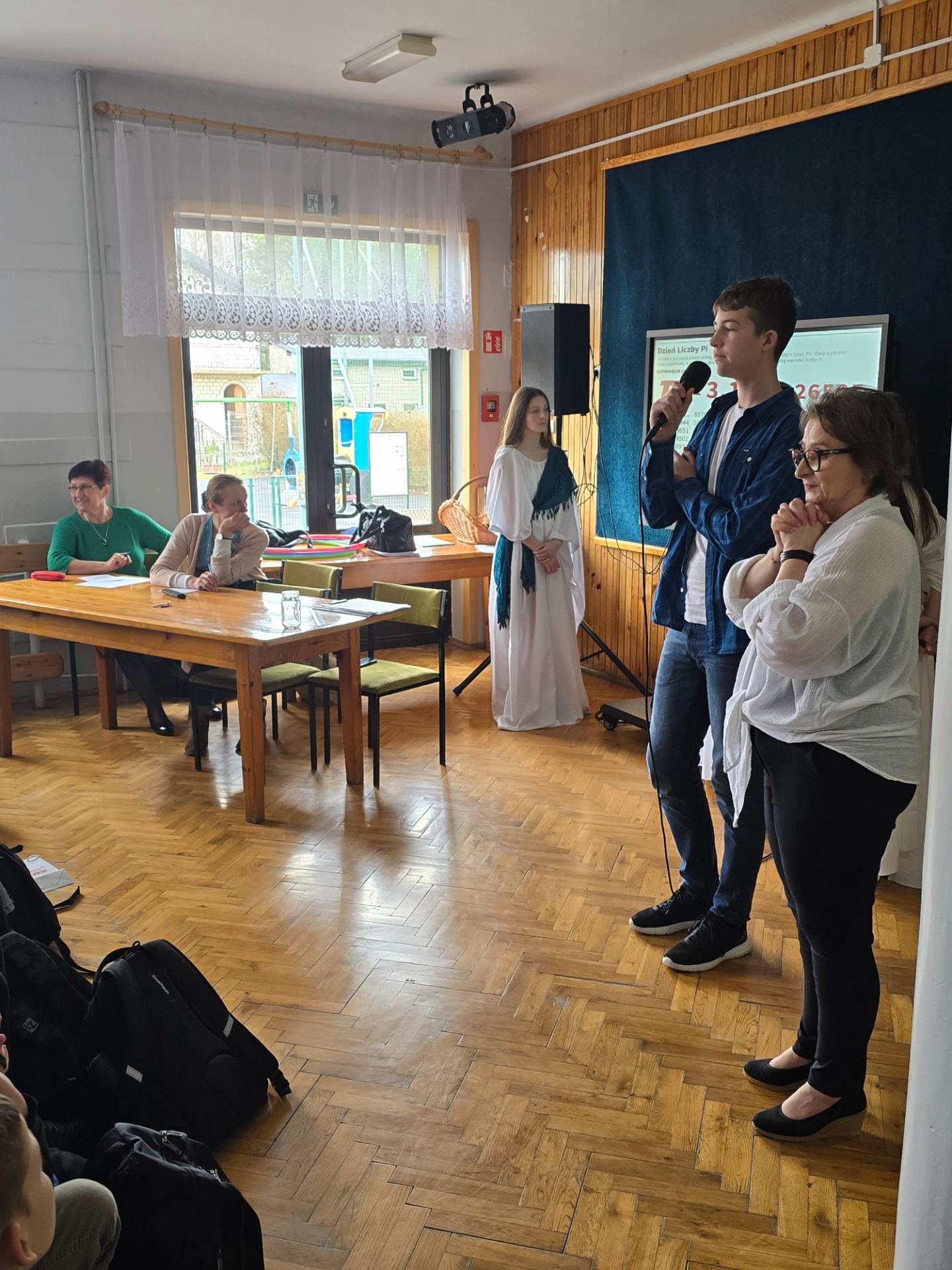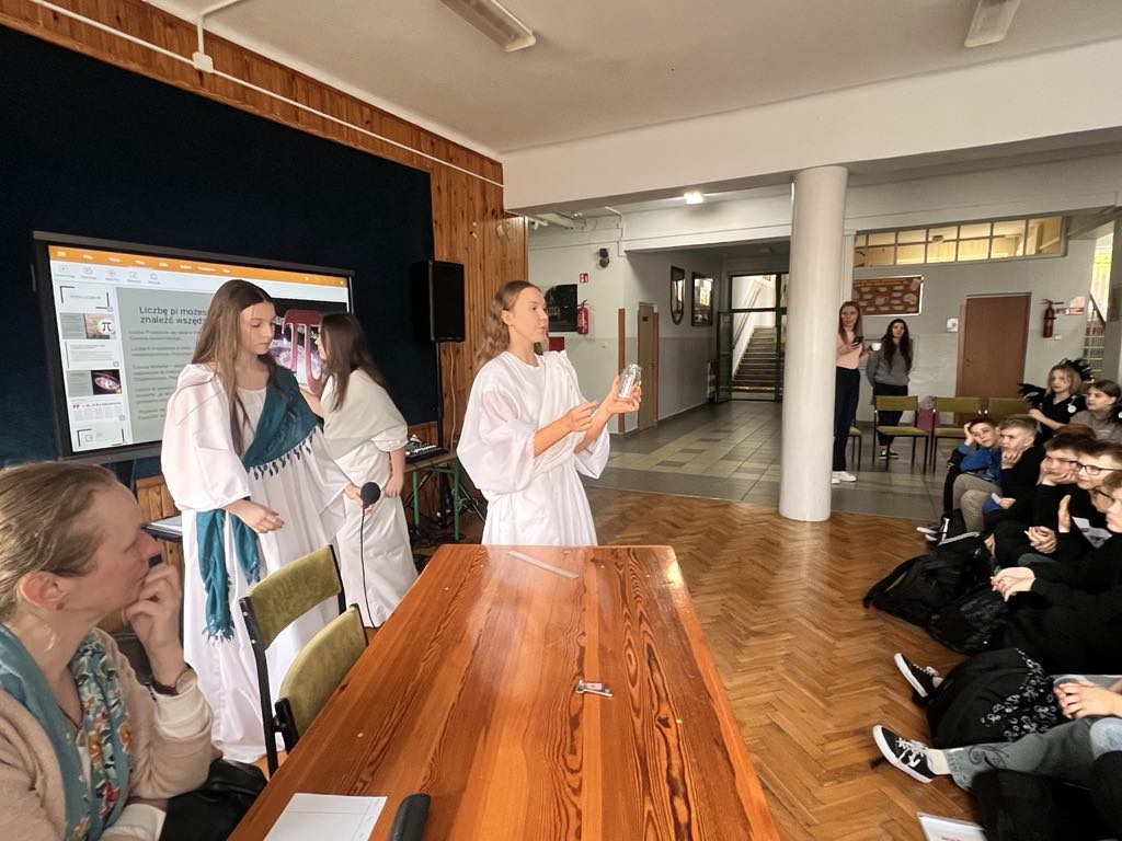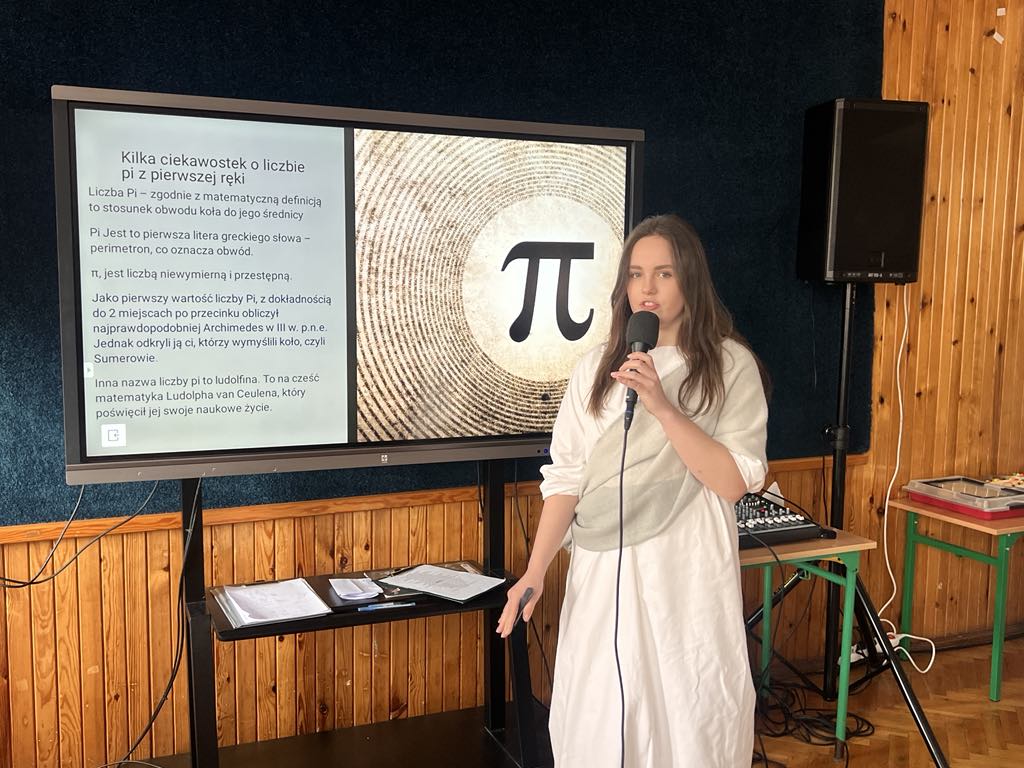 Obchody „Dnia Liczby Π” zakończyła uczennica klasy VIIIa wierszem Wisławy Szymborskiej „Liczba Pi”.