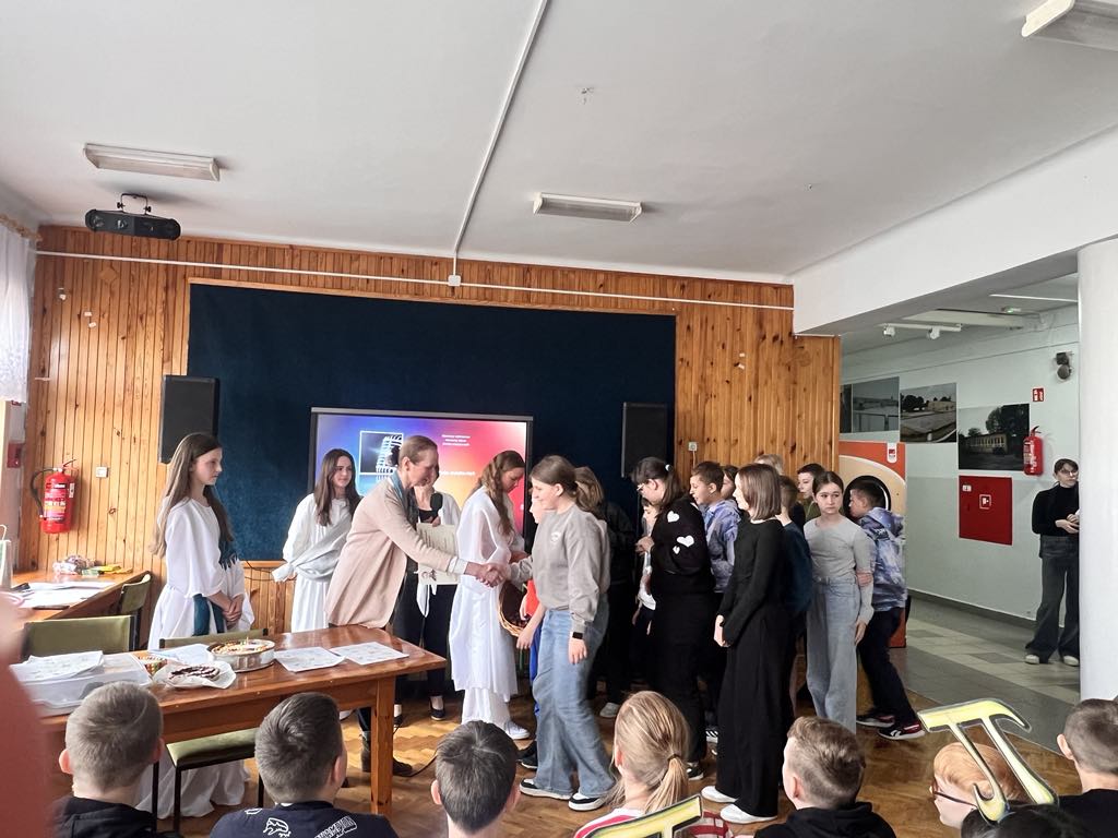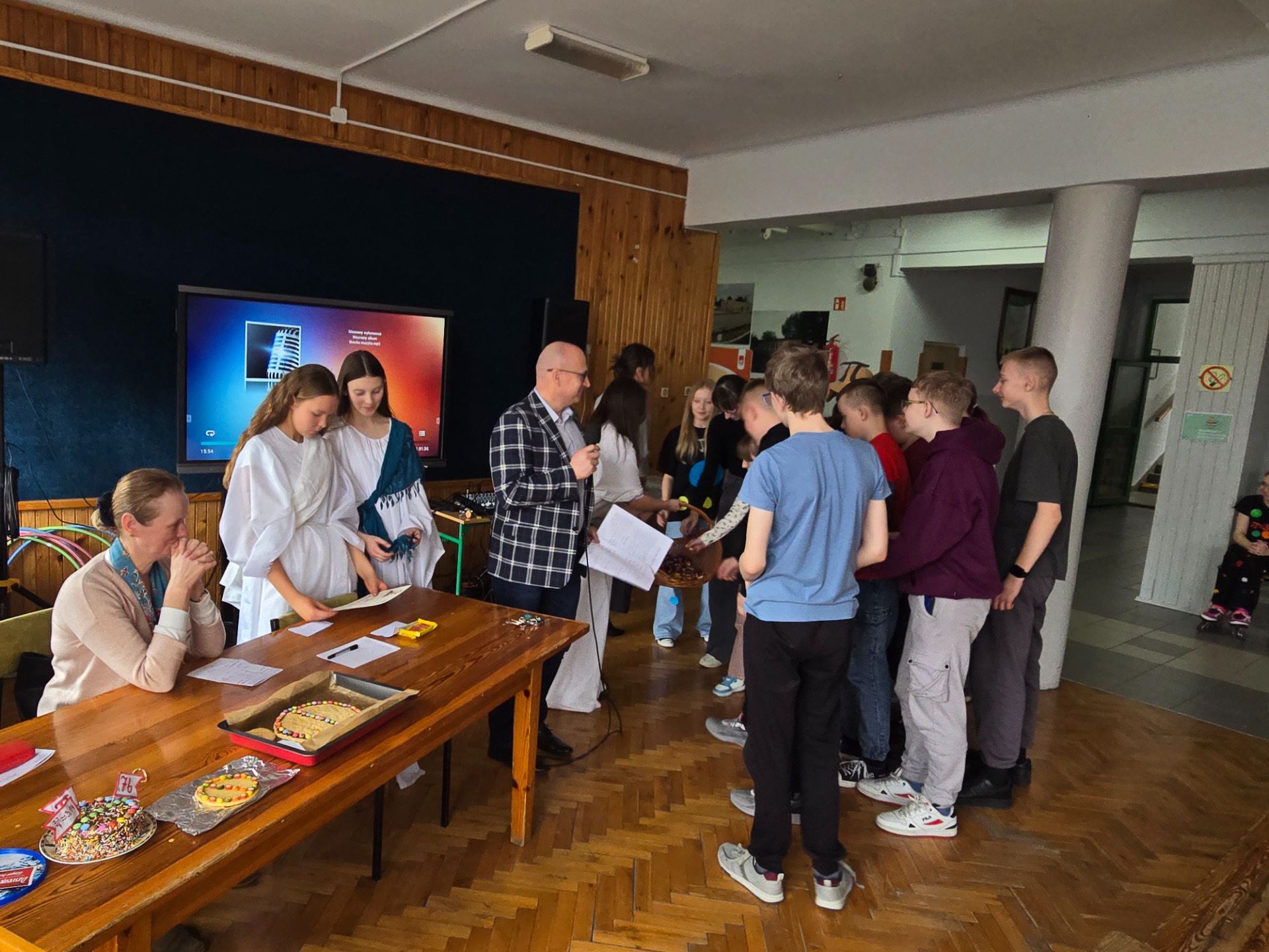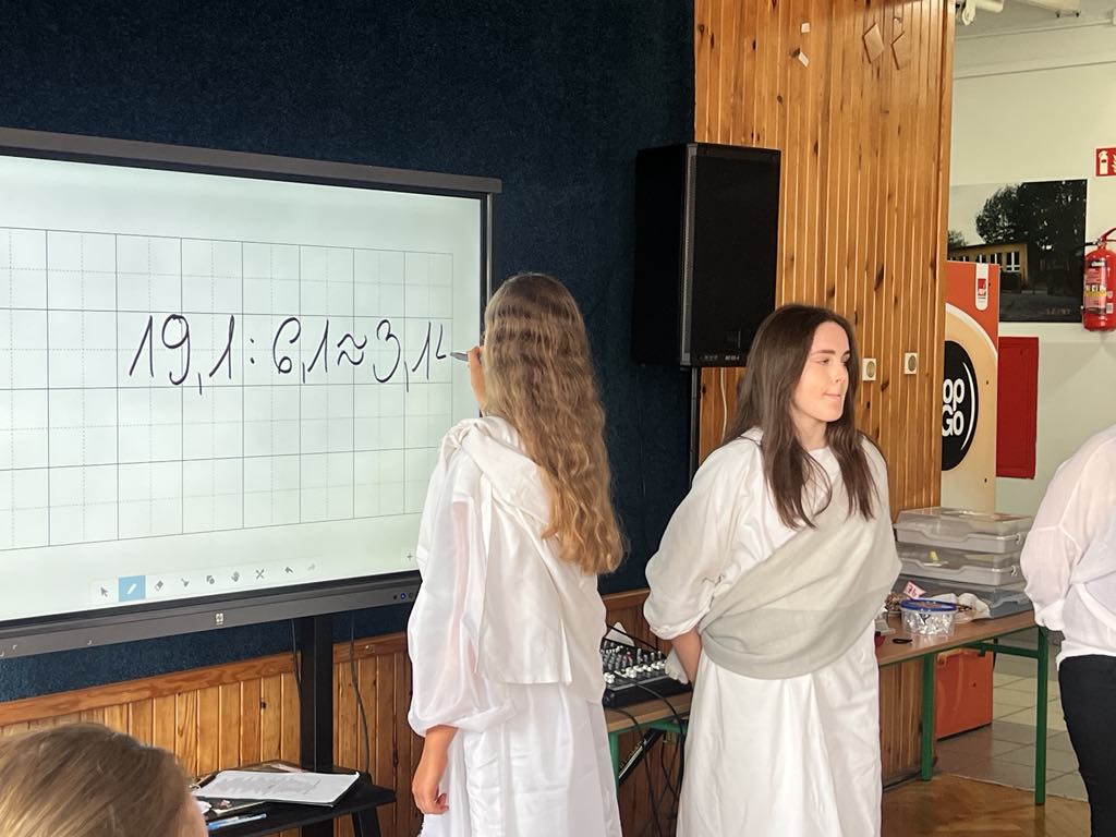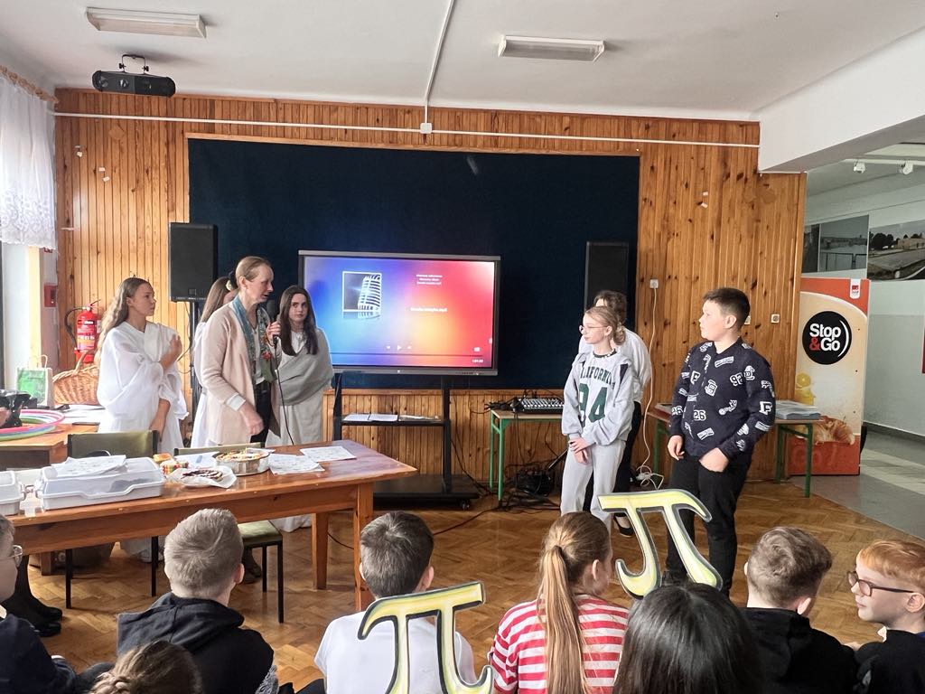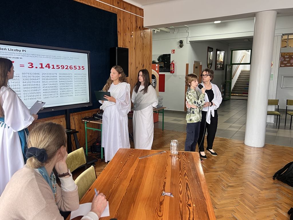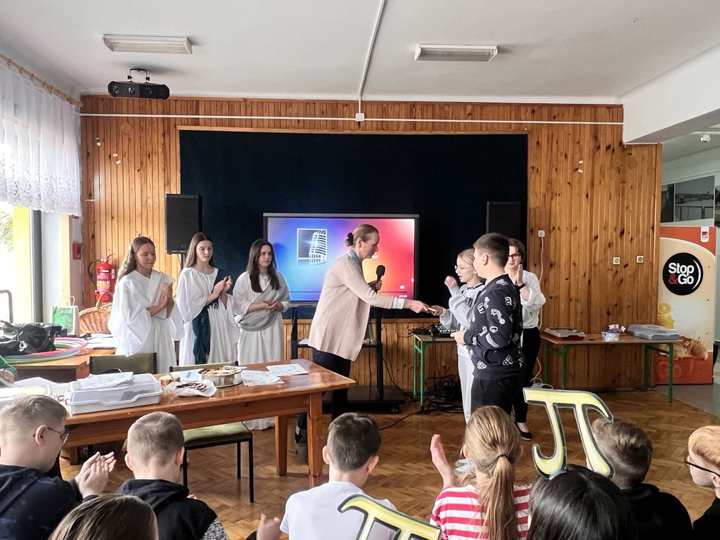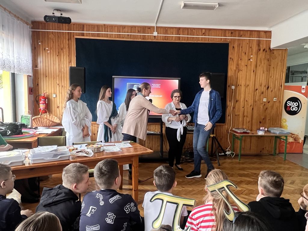 W konkursie „Warsztaty kulinarne – smak Π” zwyciężyły klasy Va i VIIb. Młodzież również aktywnie uczestniczyła w konkursie „Geometryczne inspiracje – pokaz mody”. Jury oceniło poprawność i pomysłowość wykonanego zadania. W zespole klas IV-VI zwyciężyła klasa IVb, a w VII-VIII dziewczynki z klasy VIIIb.