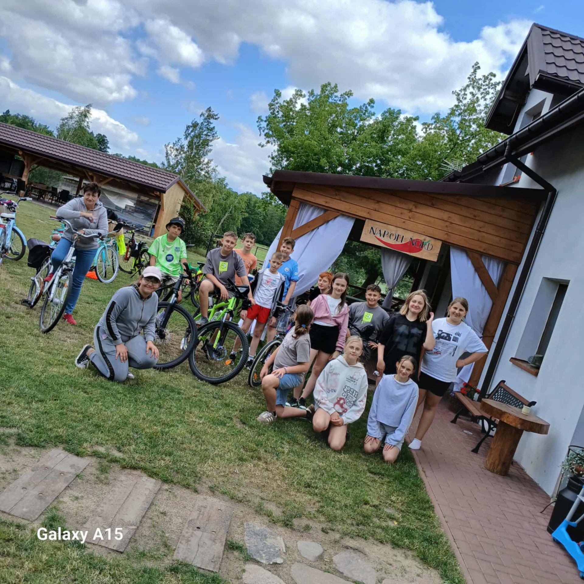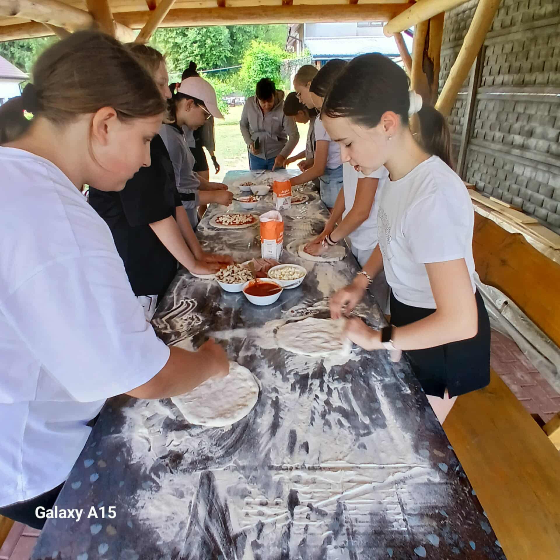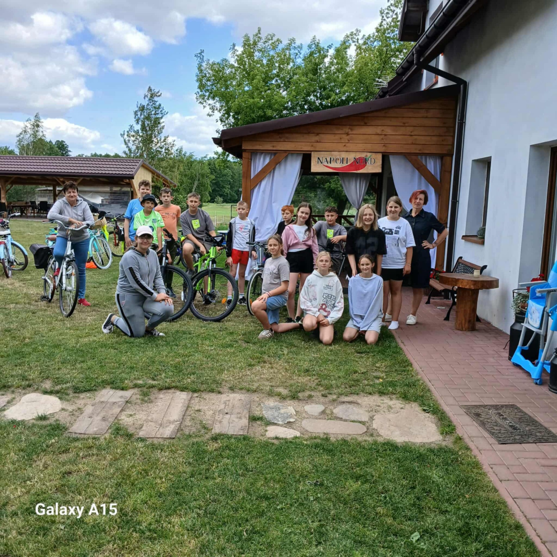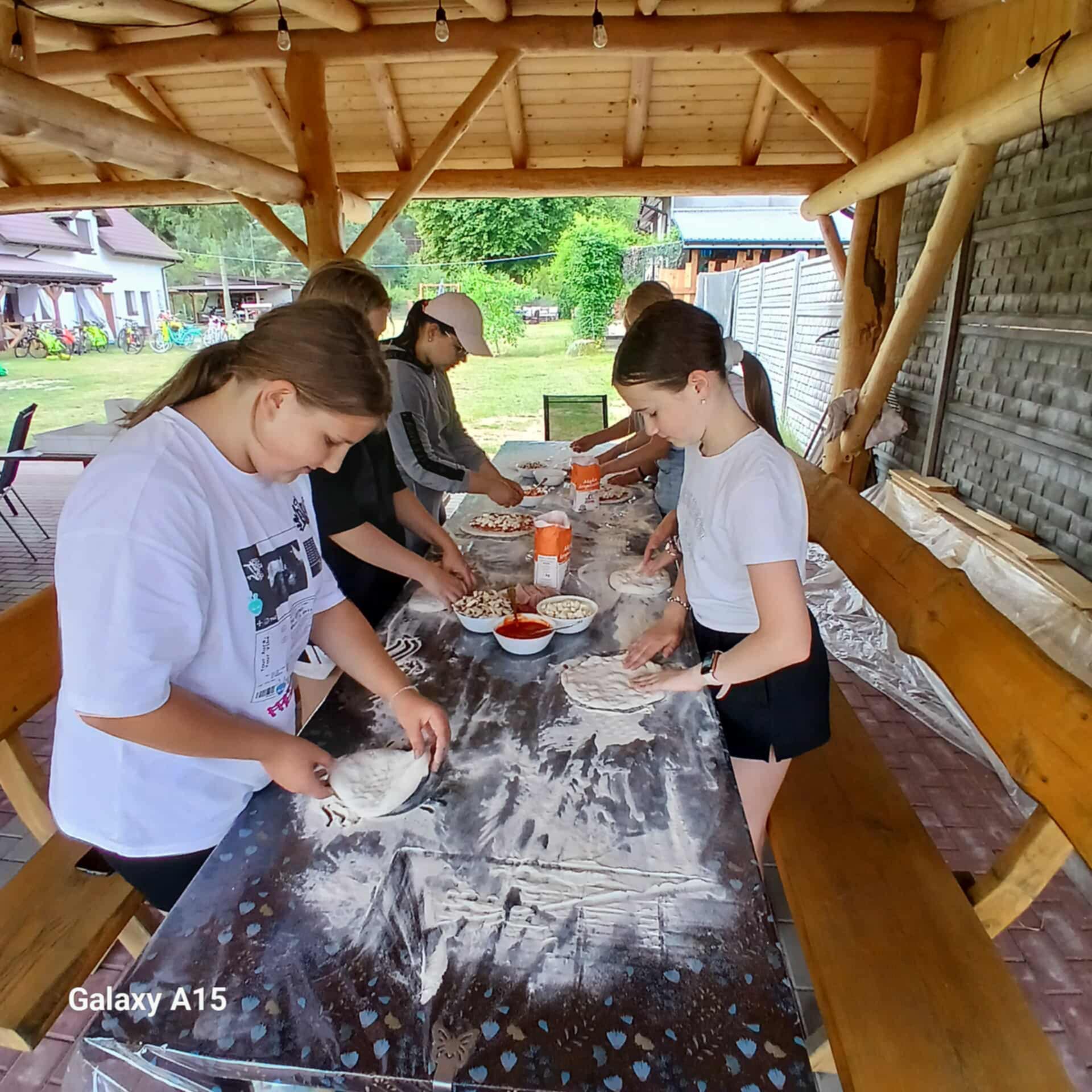 We wtorek, 24 czerwca 2025 r., uczniowie klasy 5b wraz z opiekunami wyruszyli na wycieczkę rowerową do pizzerii Napoli Nord w Józefinie. Po dotarciu na miejsce i krótkim odpoczynku rozpoczęły się warsztaty robienia i wypiekania pizzy. Każdy z uczestników otrzymał ciasto i po krótkiej instrukcji robił swoją pizzę, dodając wybrane przez siebie dodatki. Następnie z pomocą pana Toniego wkładał pizzę do pieca. Po upieczeniu mogliśmy delektować się smakiem prawdziwej włoskiej pizzy. Najedzeni i wypoczęci wyruszyliśmy w drogę powrotną do szkoły, która wiodła przez następujące miejscowości: Józefin – Władysławów- Gutkowice Nowiny- Górniak – Kopiec – Czechowice- Żelechlinek. Na zakończenie wycieczki zjedliśmy pyszne włoskie lody. Wycieczka była okazją do integracji zespołu klasowego, poznania terenu naszej gminy i tak ważnej dla zdrowia aktywności fizycznej, a warsztaty wypieku pizzy przybliżyły uczniom pracę pizzermana. Wszyscy zgodnie stwierdzili, że była to nasza pierwsza, ale nie ostatnia wycieczka rowerowa.