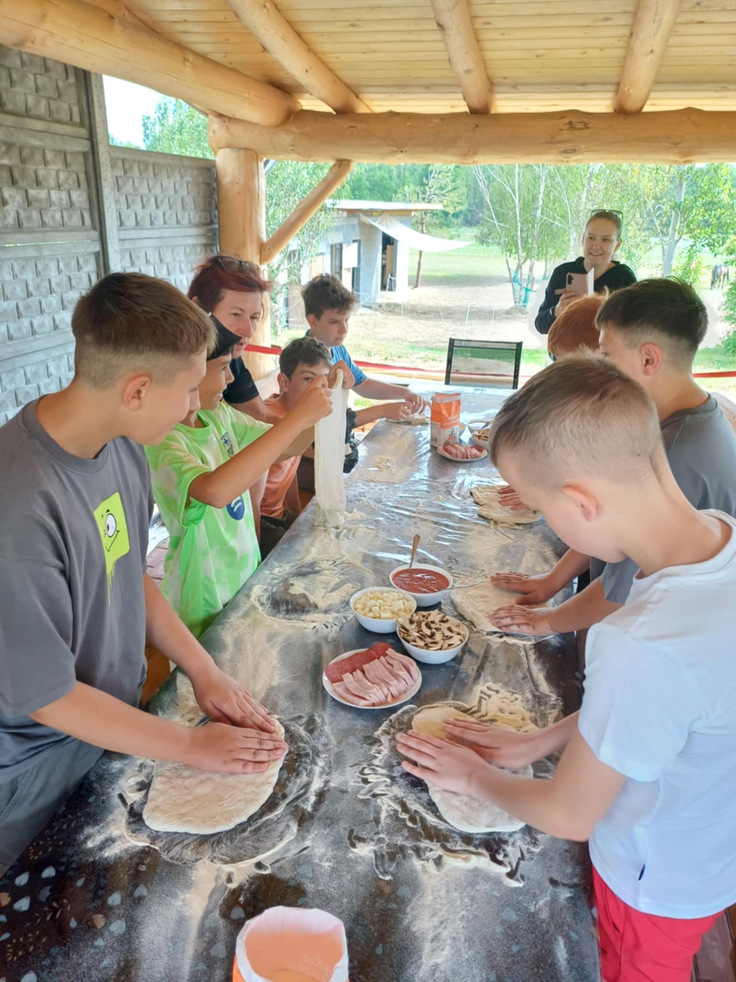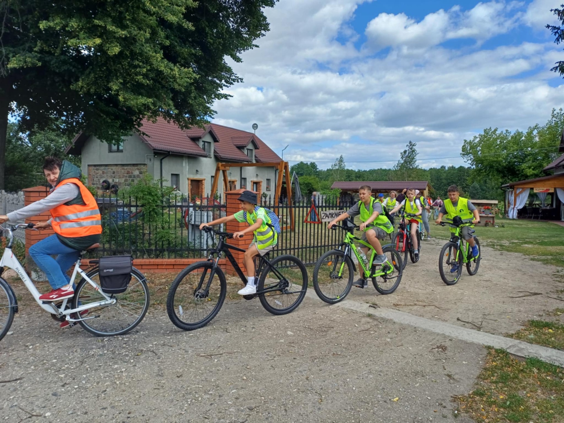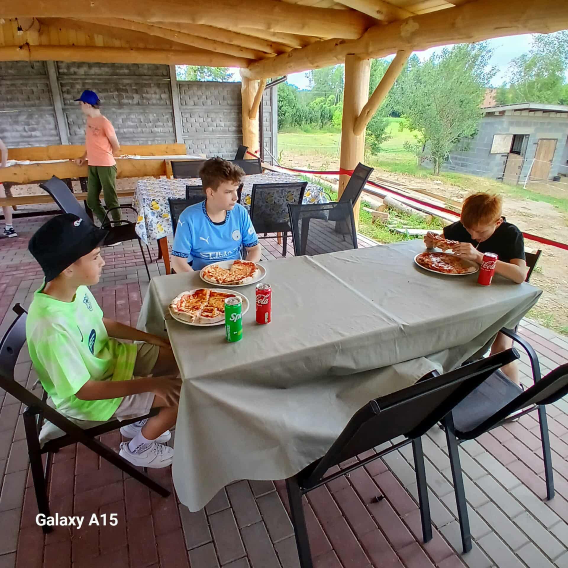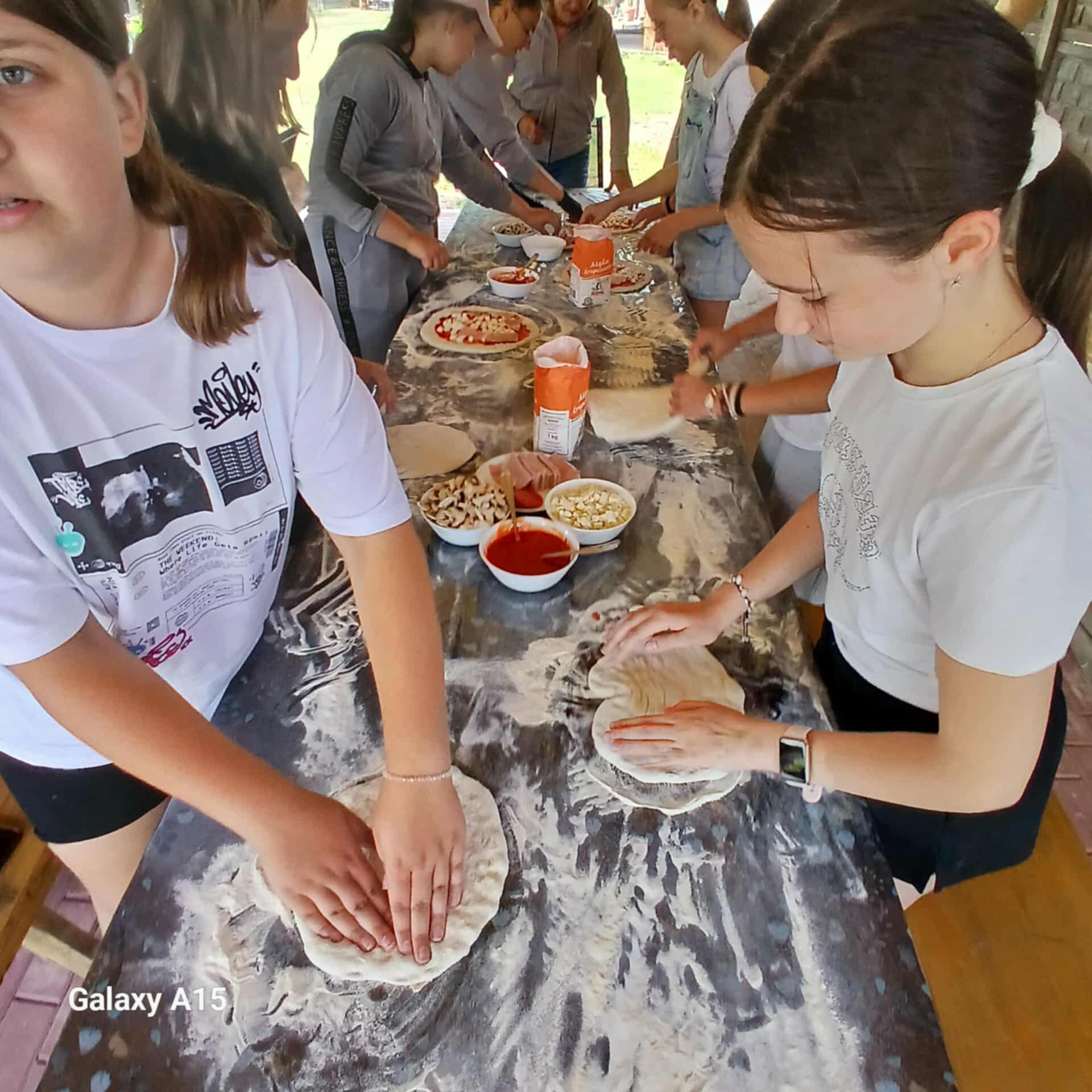 We wtorek, 24 czerwca 2025 r., uczniowie klasy 5b wraz z opiekunami wyruszyli na wycieczkę rowerową do pizzerii Napoli Nord w Józefinie. Po dotarciu na miejsce i krótkim odpoczynku rozpoczęły się warsztaty robienia i wypiekania pizzy. Każdy z uczestników otrzymał ciasto i po krótkiej instrukcji robił swoją pizzę, dodając wybrane przez siebie dodatki. Następnie z pomocą pana Toniego wkładał pizzę do pieca. Po upieczeniu mogliśmy delektować się smakiem prawdziwej włoskiej pizzy. Najedzeni i wypoczęci wyruszyliśmy w drogę powrotną do szkoły, która wiodła przez następujące miejscowości: Józefin – Władysławów- Gutkowice Nowiny- Górniak – Kopiec – Czechowice- Żelechlinek. Na zakończenie wycieczki zjedliśmy pyszne włoskie lody. Wycieczka była okazją do integracji zespołu klasowego, poznania terenu naszej gminy i tak ważnej dla zdrowia aktywności fizycznej, a warsztaty wypieku pizzy przybliżyły uczniom pracę pizzermana. Wszyscy zgodnie stwierdzili, że była to nasza pierwsza, ale nie ostatnia wycieczka rowerowa.
