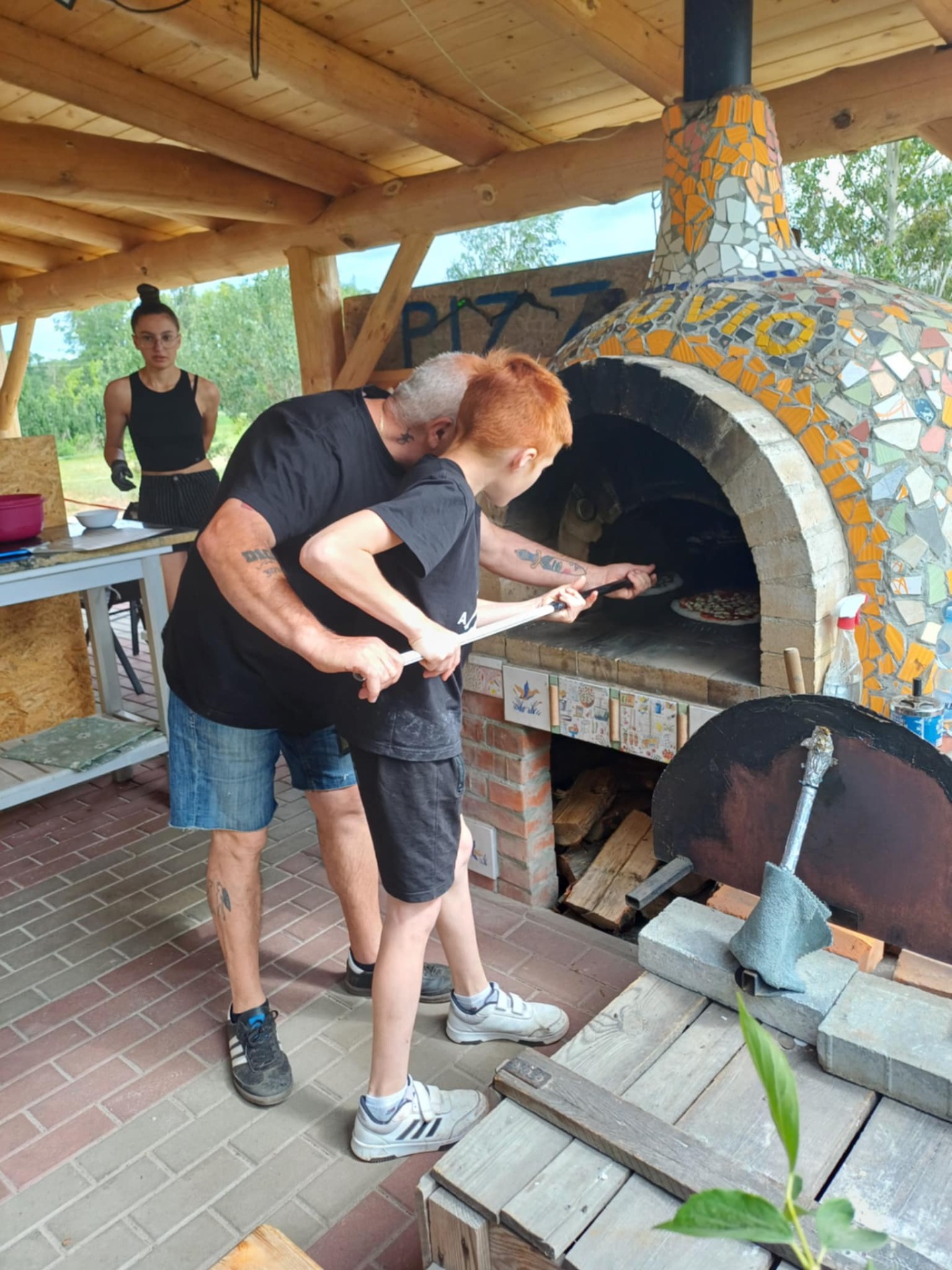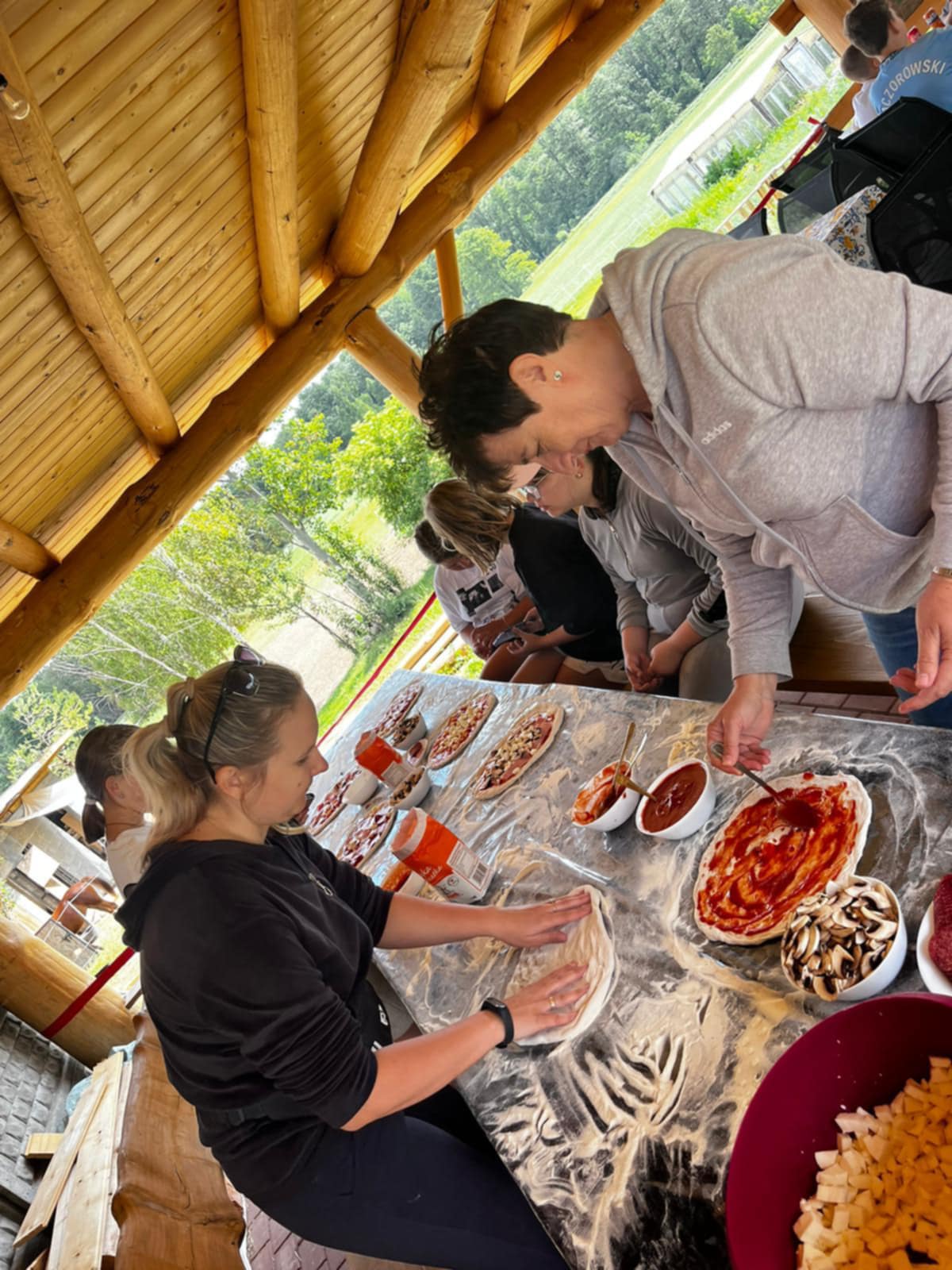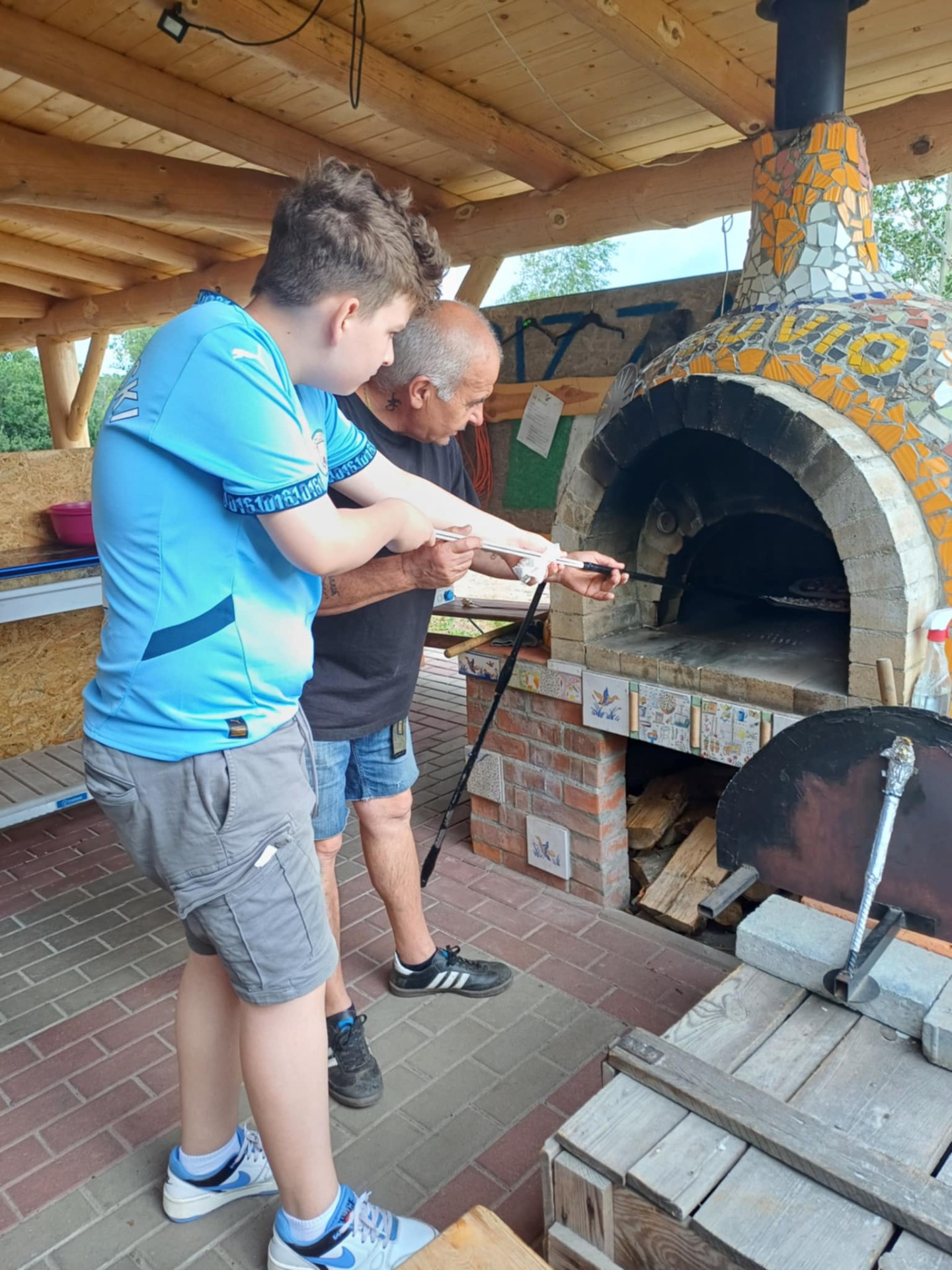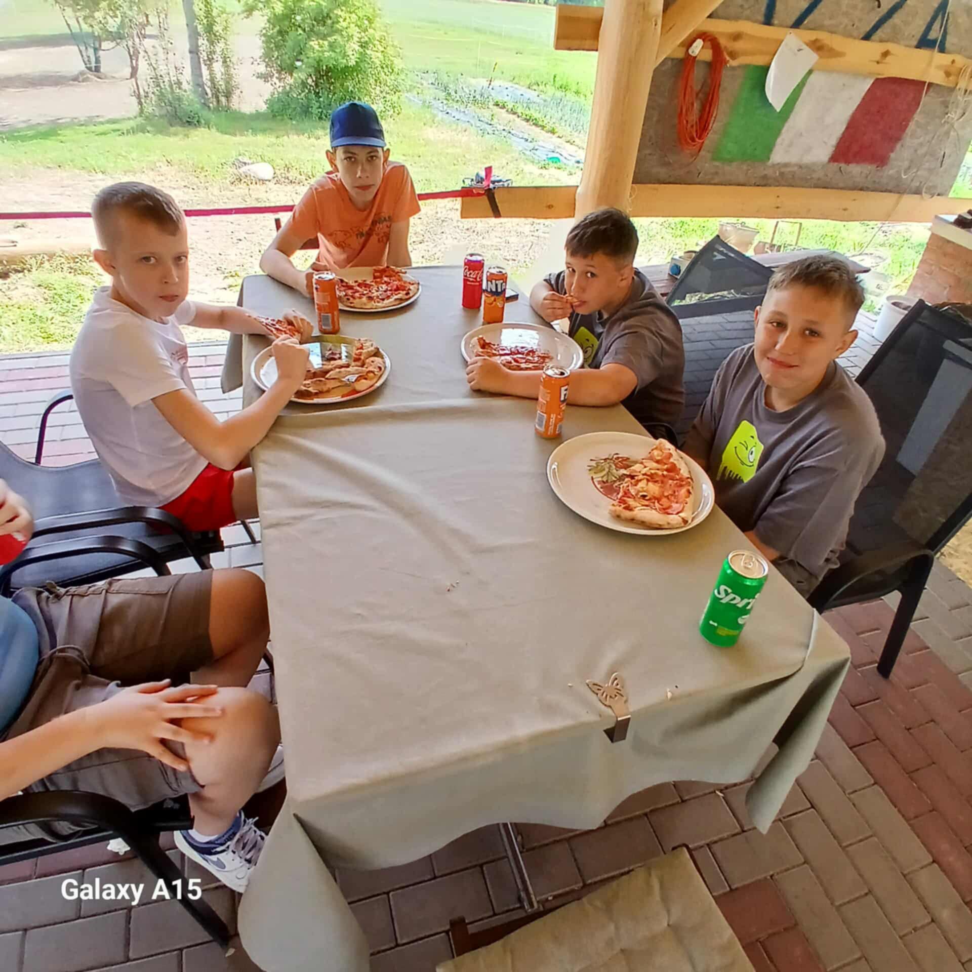 We wtorek, 24 czerwca 2025 r., uczniowie klasy 5b wraz z opiekunami wyruszyli na wycieczkę rowerową do pizzerii Napoli Nord w Józefinie. Po dotarciu na miejsce i krótkim odpoczynku rozpoczęły się warsztaty robienia i wypiekania pizzy. Każdy z uczestników otrzymał ciasto i po krótkiej instrukcji robił swoją pizzę, dodając wybrane przez siebie dodatki. Następnie z pomocą pana Toniego wkładał pizzę do pieca. Po upieczeniu mogliśmy delektować się smakiem prawdziwej włoskiej pizzy. Najedzeni i wypoczęci wyruszyliśmy w drogę powrotną do szkoły, która wiodła przez następujące miejscowości: Józefin – Władysławów- Gutkowice Nowiny- Górniak – Kopiec – Czechowice- Żelechlinek. Na zakończenie wycieczki zjedliśmy pyszne włoskie lody. Wycieczka była okazją do integracji zespołu klasowego, poznania terenu naszej gminy i tak ważnej dla zdrowia aktywności fizycznej, a warsztaty wypieku pizzy przybliżyły uczniom pracę pizzermana. Wszyscy zgodnie stwierdzili, że była to nasza pierwsza, ale nie ostatnia wycieczka rowerowa.