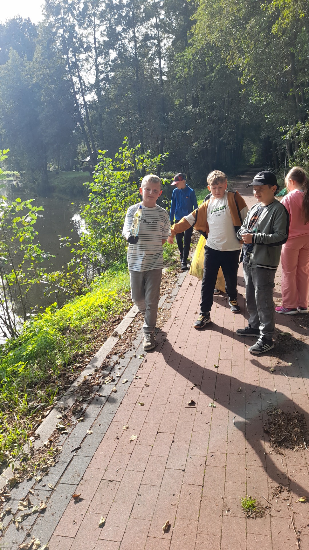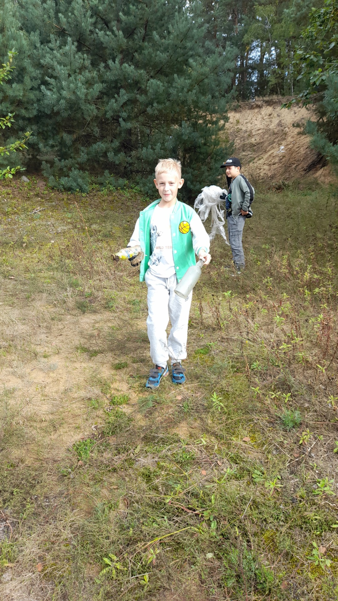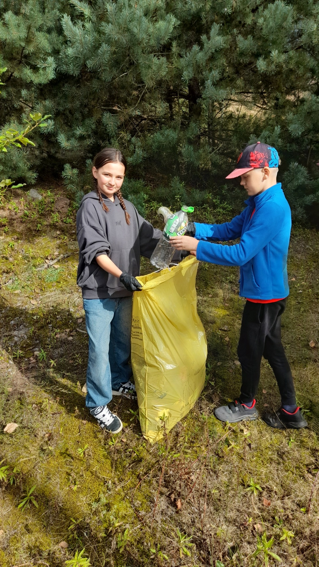 Klasa IVb wspólnie z wychowawcą sptrzątała teren wokół zbiornika retencyjnego w Żelechlinku, przyległy las i pobocza dróg.