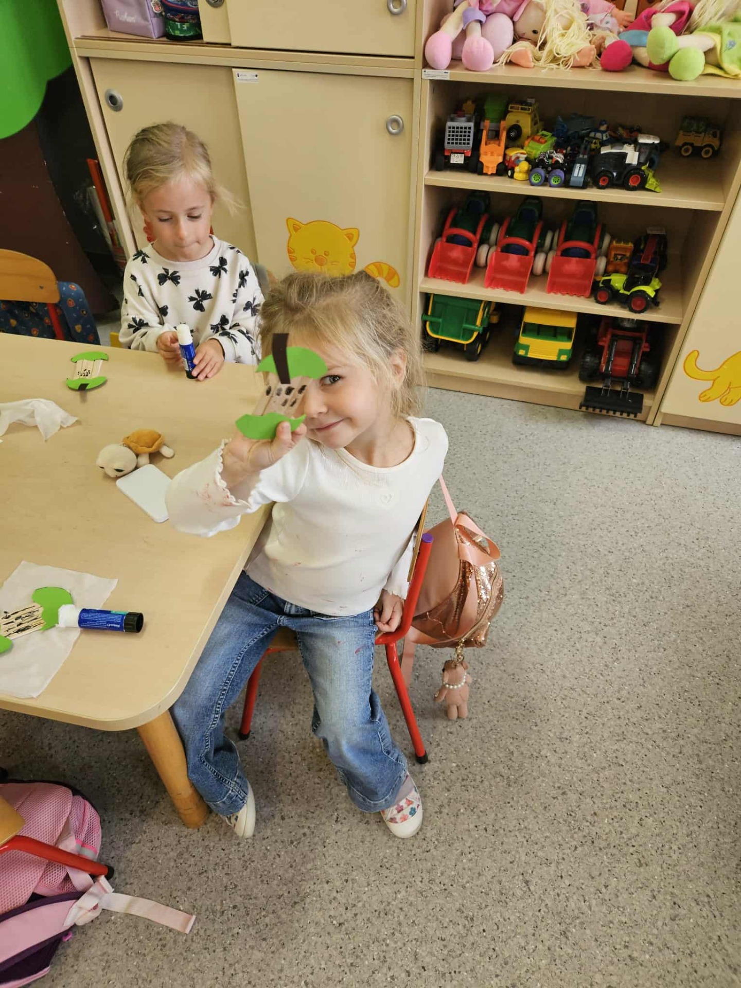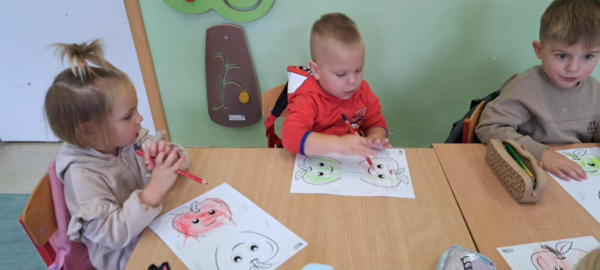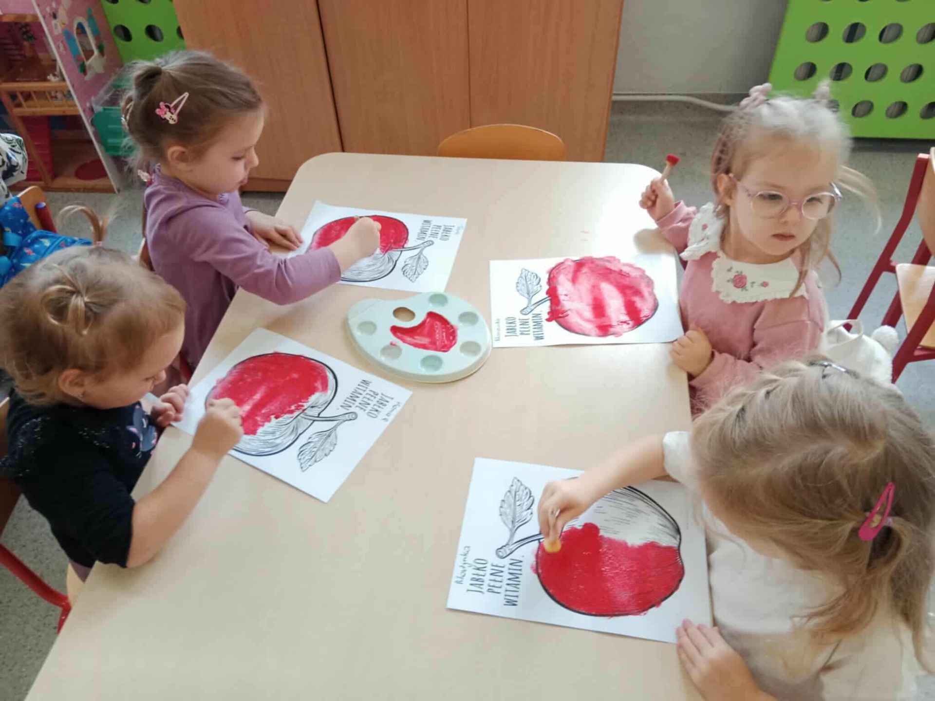 Ogromnym zainteresowaniem cieszyły się także prace plastyczne z motywem jabłka – dzieci malowały, wyklejały i tworzyły własne „jabłkowe dzieła sztuki”, które ozdobiły sale przedszkolne.